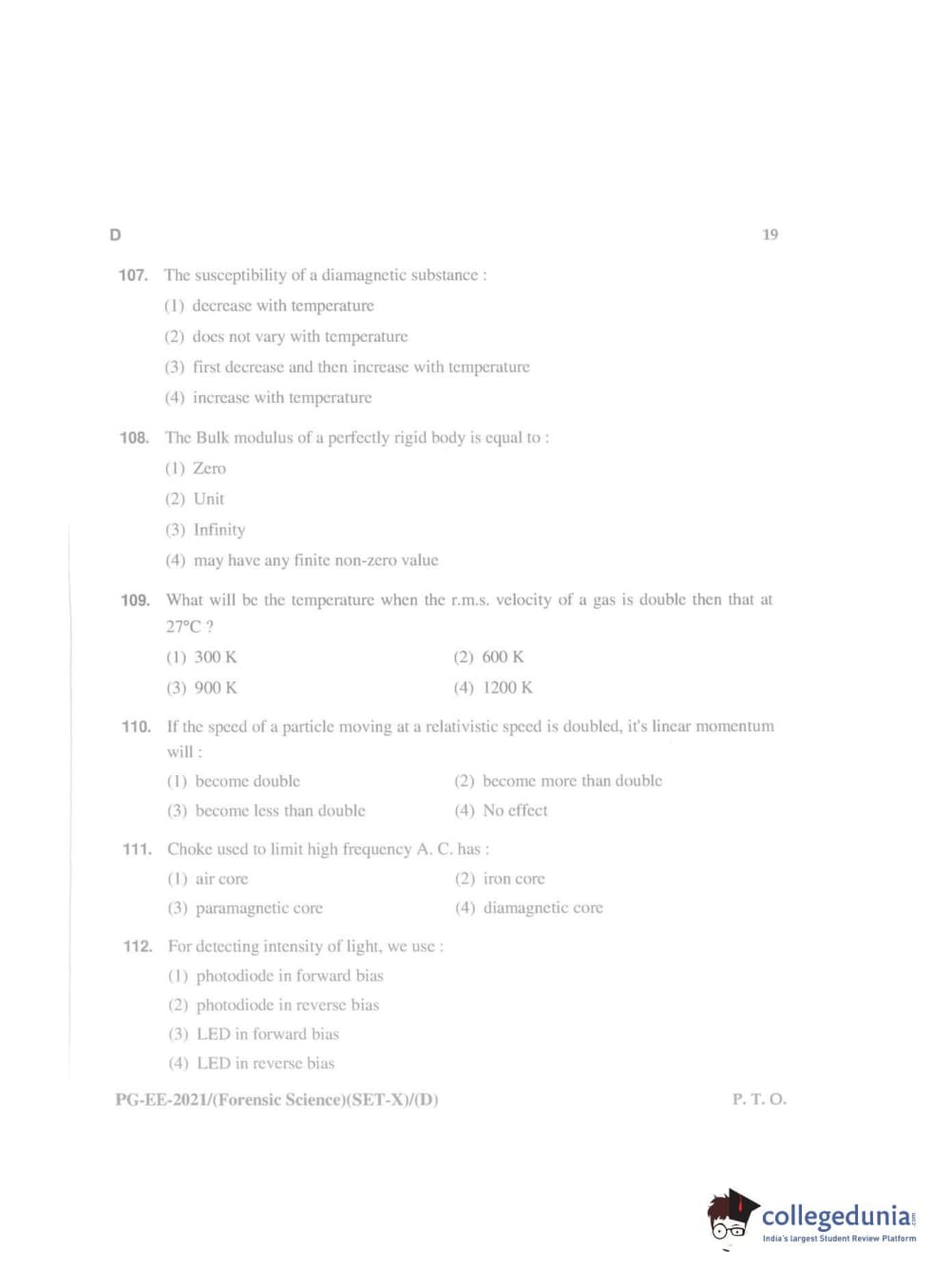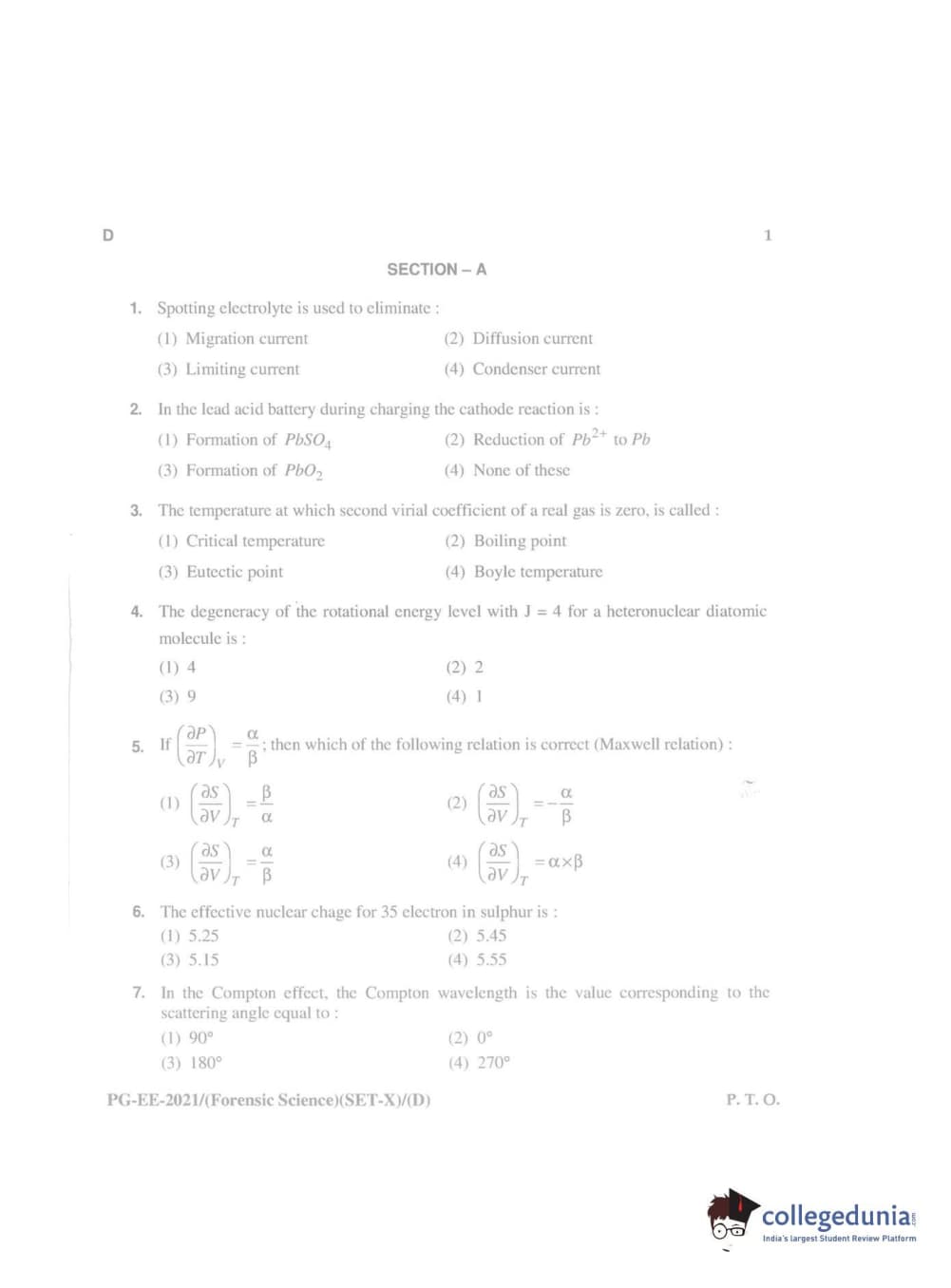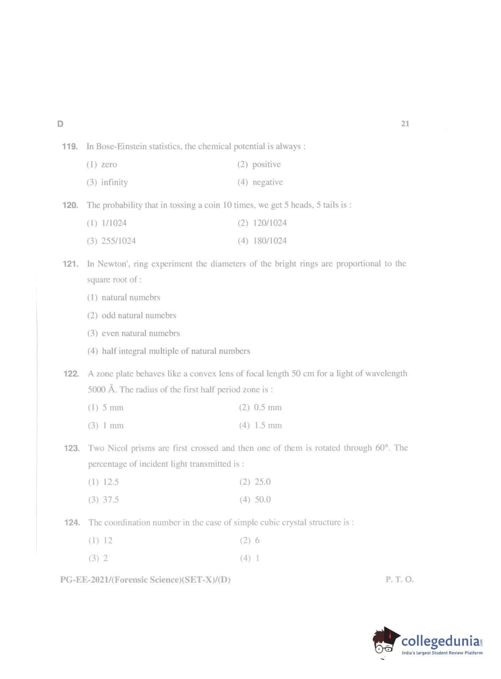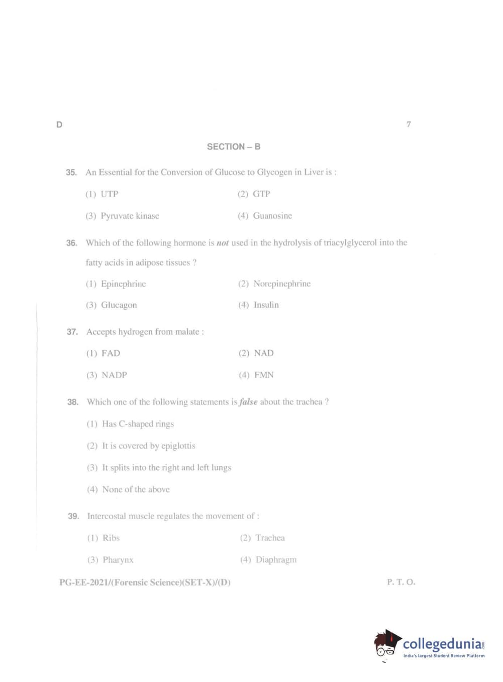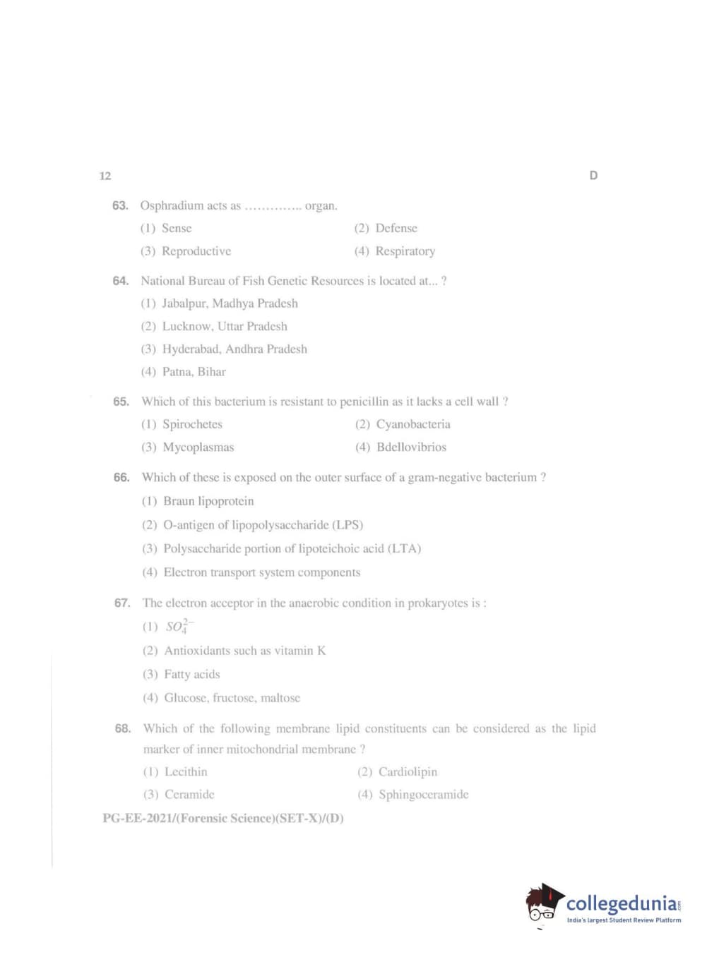 MDUCEE 2021 M.Sc. (Forensic Science) Set D Question Paper with Answer Key PDFs