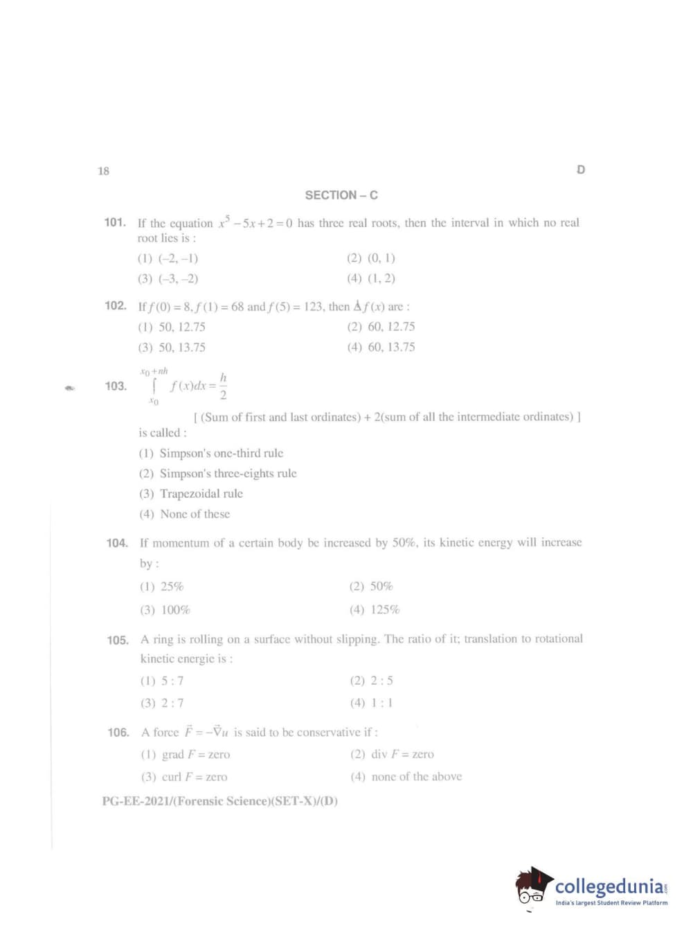MDUCEE 2021 M.Sc. (Forensic Science) Set D Question paper with answer key pdf conducted on September 21, 2021 is available for download. The exam was successfully organized by Maharishi Dayanand University. The question paper comprised a total of 100 questions.