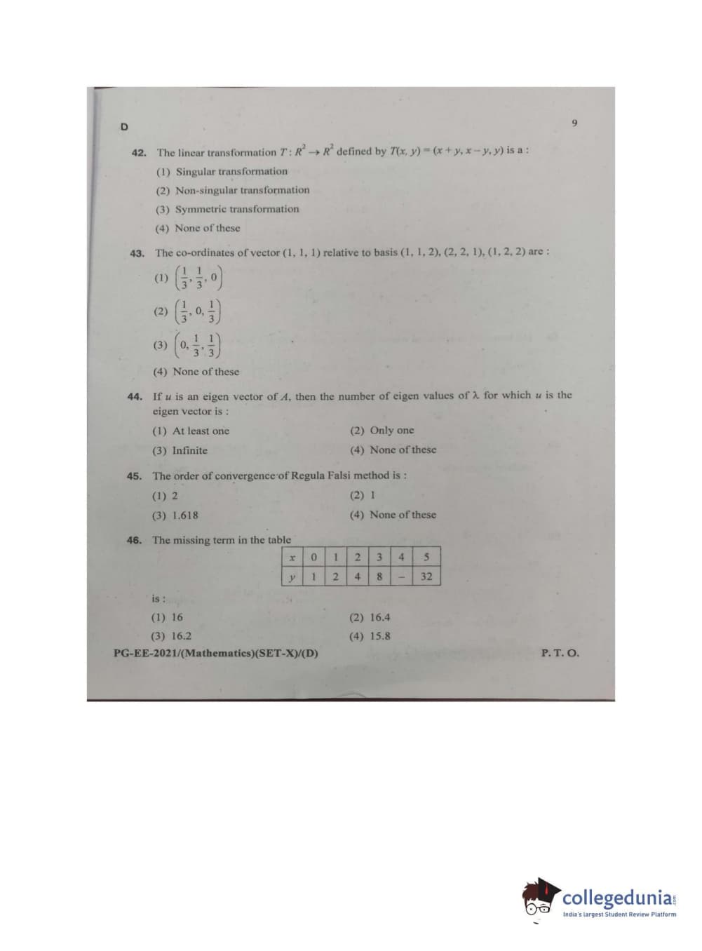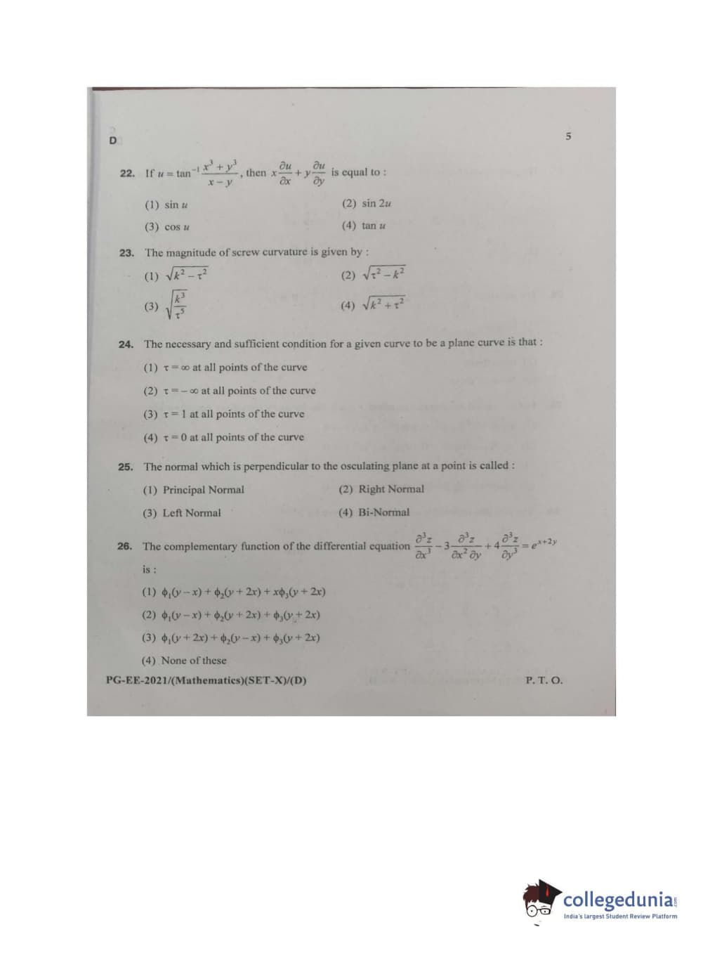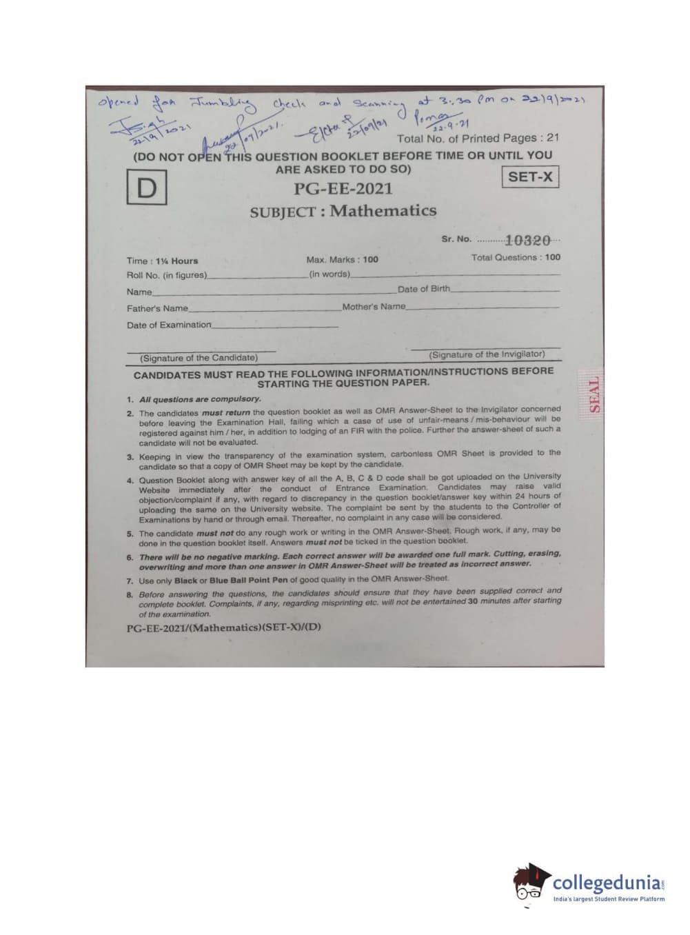 MDUCEE 2021 M.Sc. Mathematics Set D Question paper with answer key pdf conducted on September 22, 2021 is available for download. The exam was successfully organized by Maharishi Dayanand University. The question paper comprised a total of 100 questions.