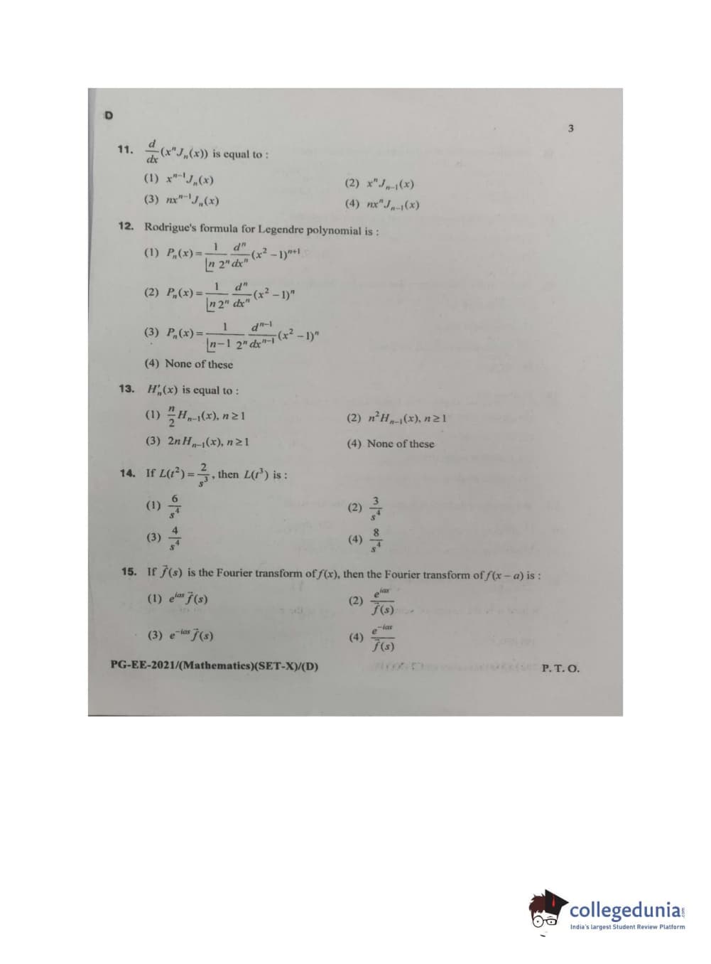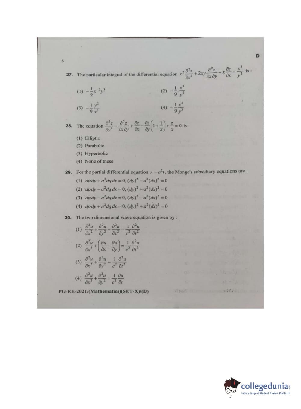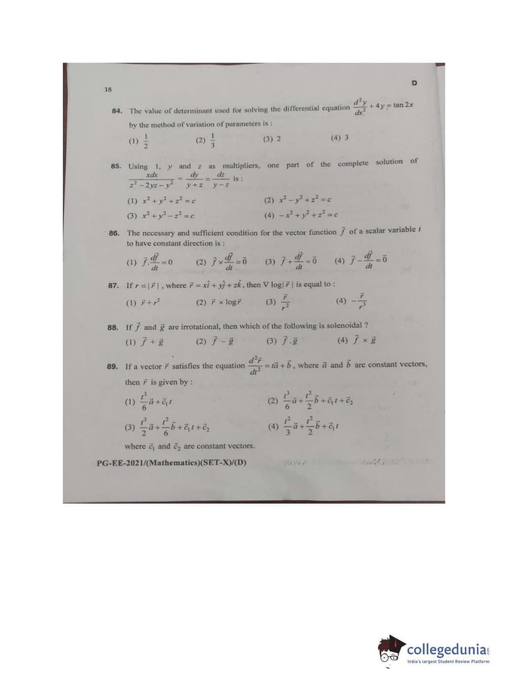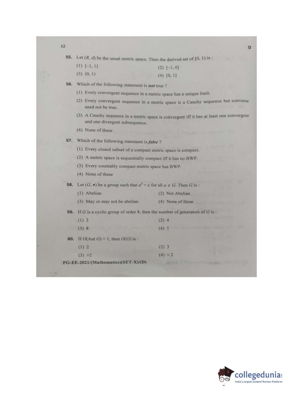 MDUCEE 2021 M.Sc. Mathematics Set D Question Paper with Answer Key PDFs