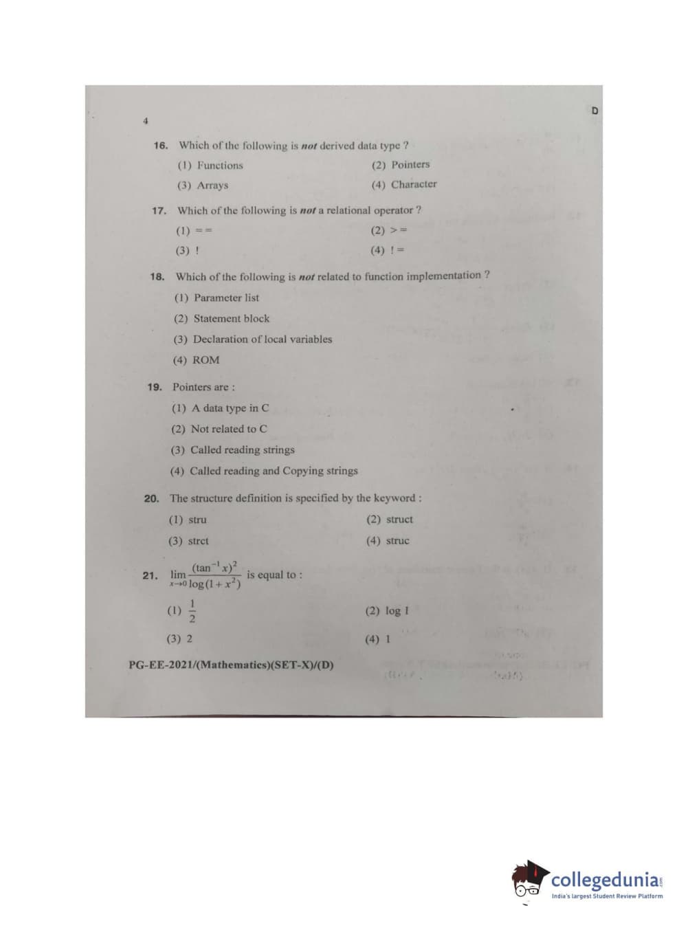 | MDUCEE 2021 M.Sc. Mathematics Set D Question Paper PDF | MDUCEE 2021 M.Sc. Mathematics Set D Answer Key PDF |