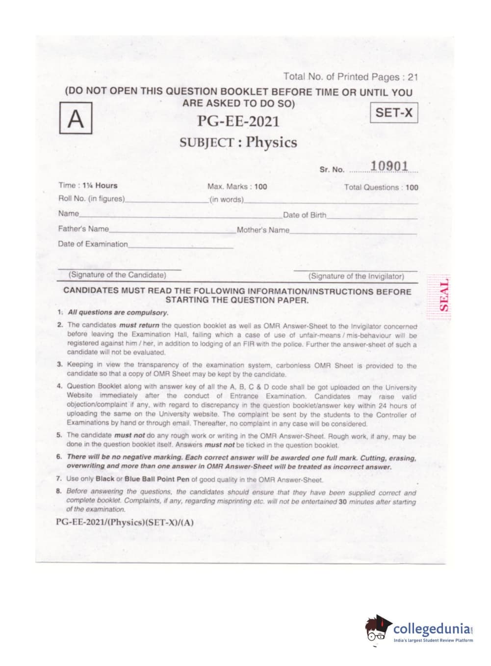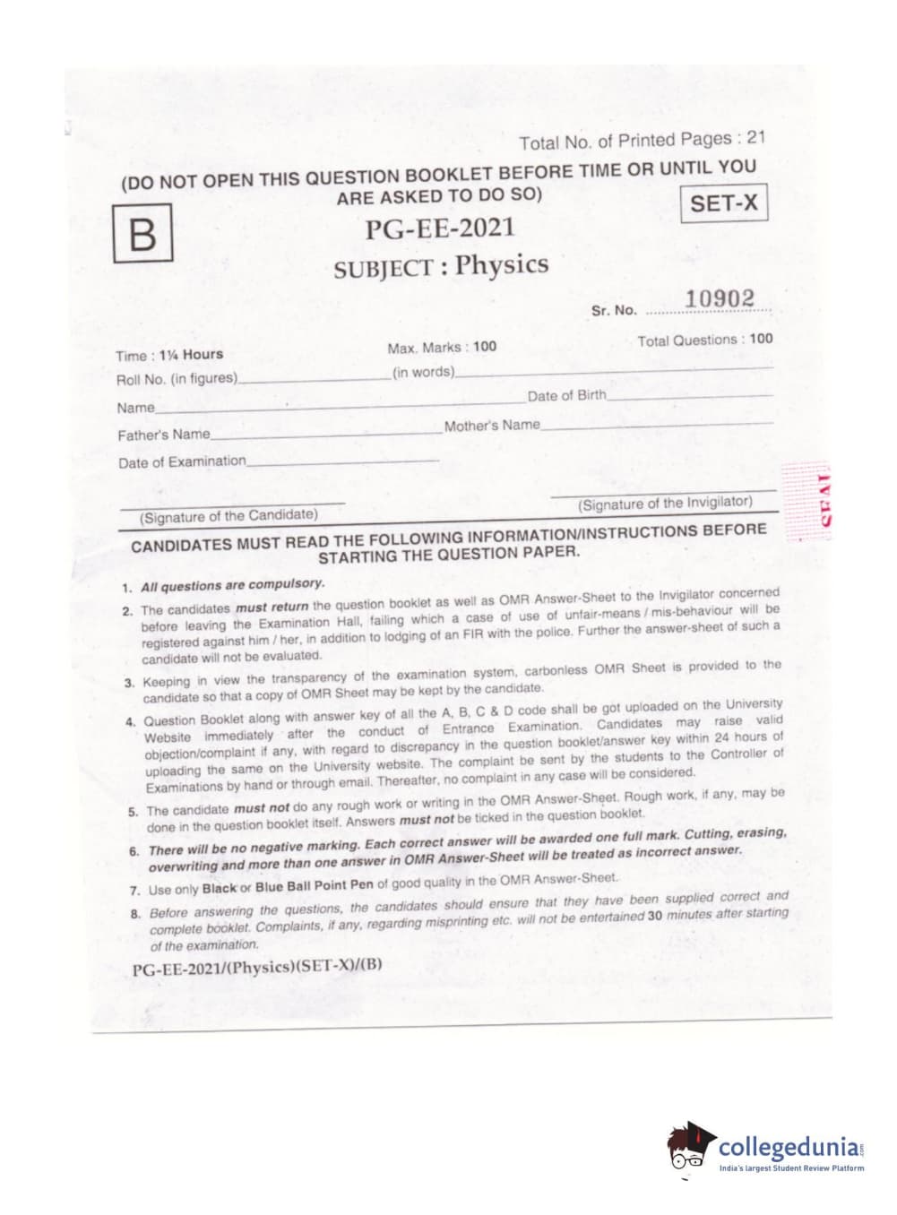 | MDUCEE 2021 M.Sc. Physics Question Paper PDF | MDUCEE 2021 M.Sc. Physics Answer Key PDF |