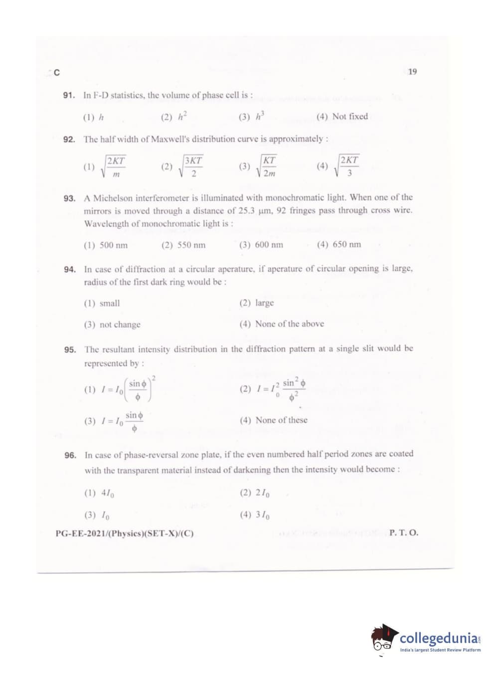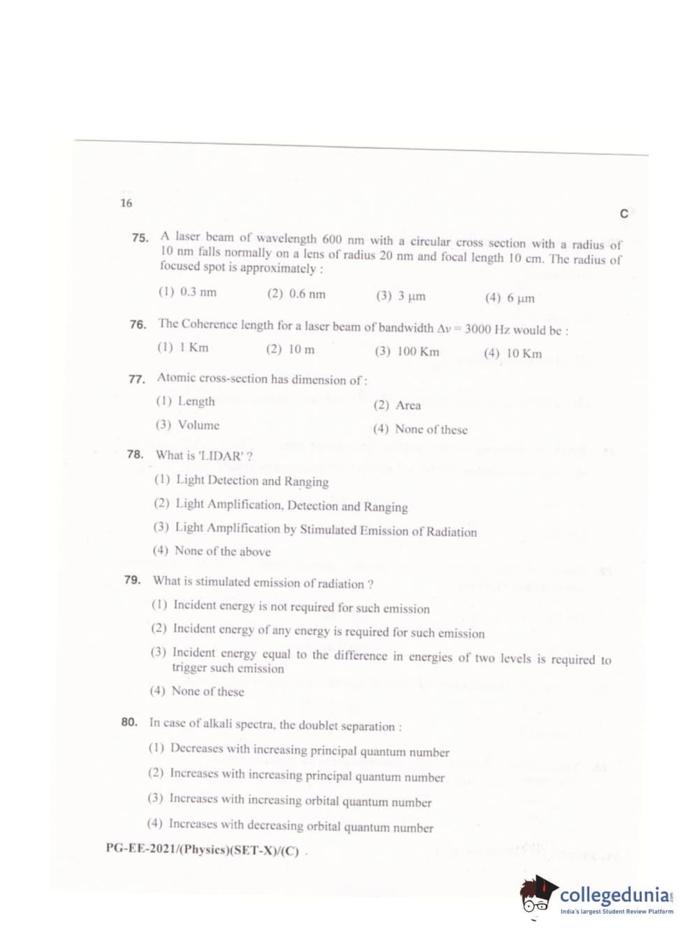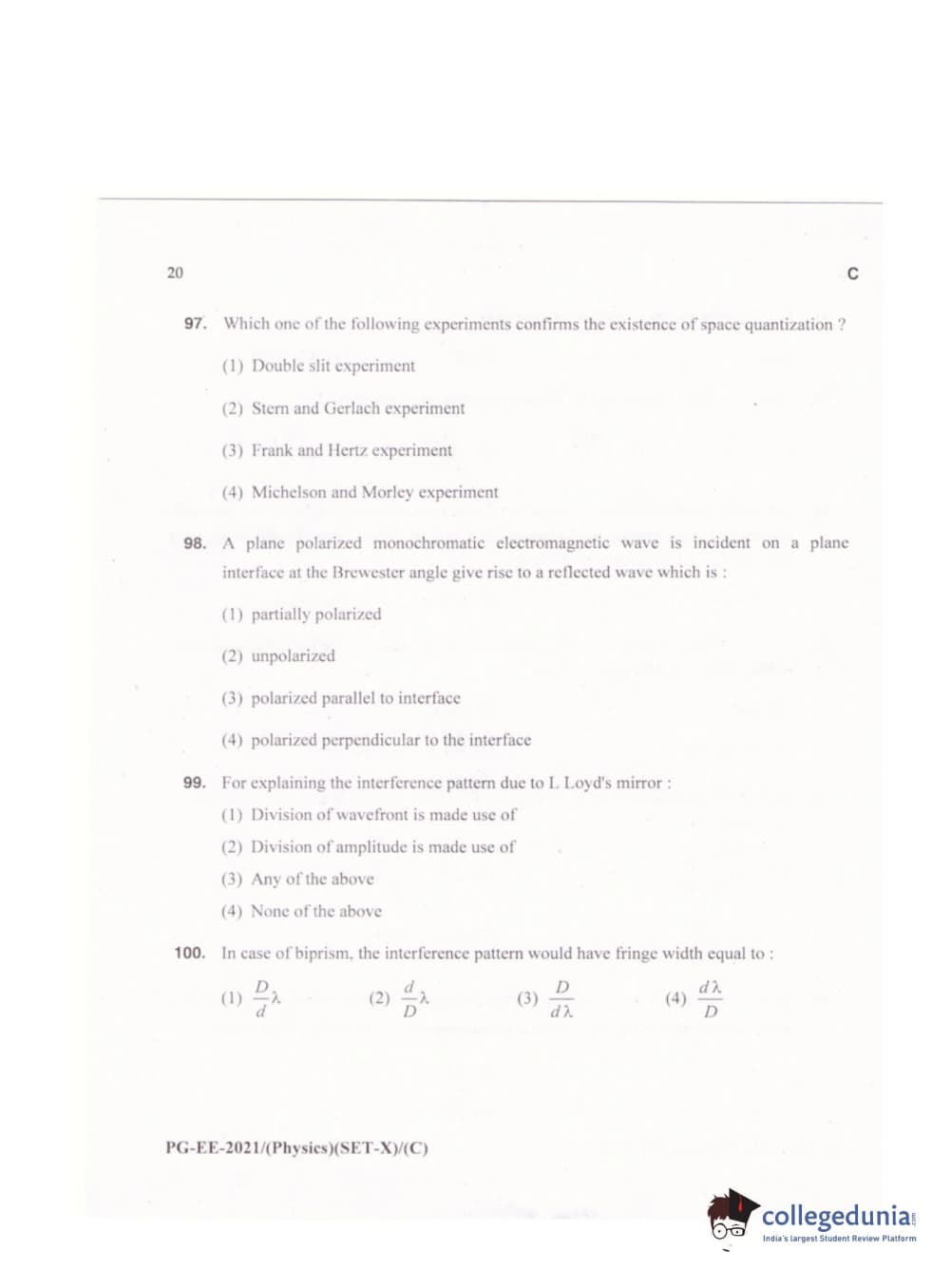 MDUCEE 2021 M.Sc. Physics Set C Question Paper with Answer Key PDFs