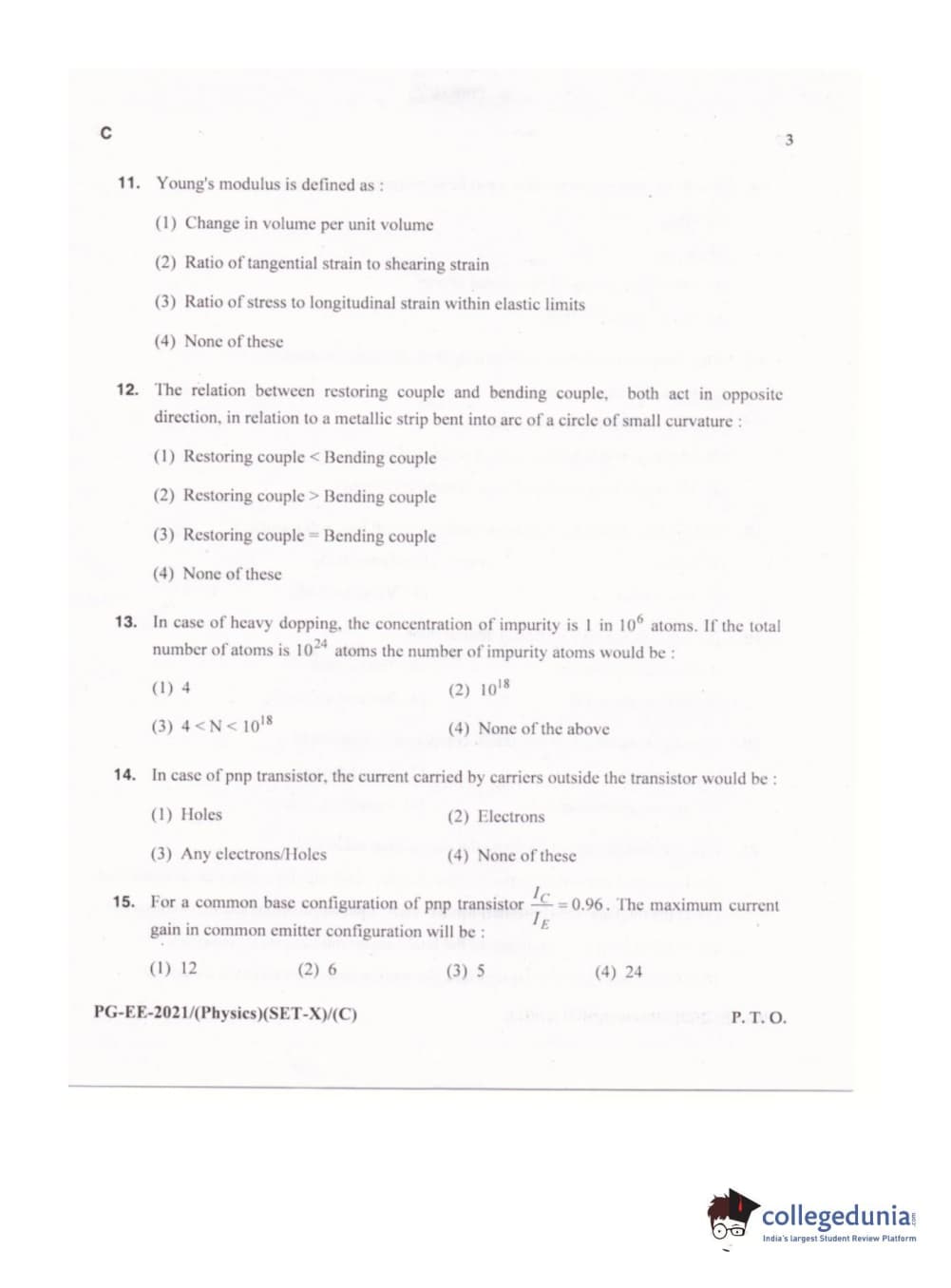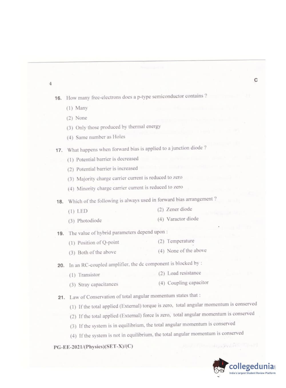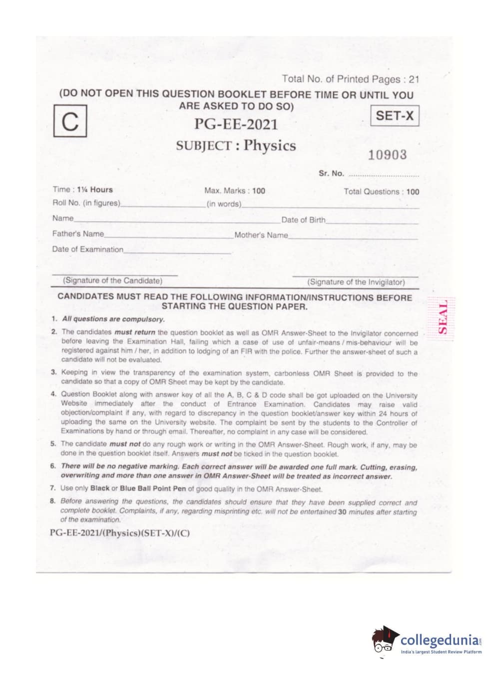 MDUCEE 2021 M.Sc. Physics Set C Question Paper with Answer Key PDFs