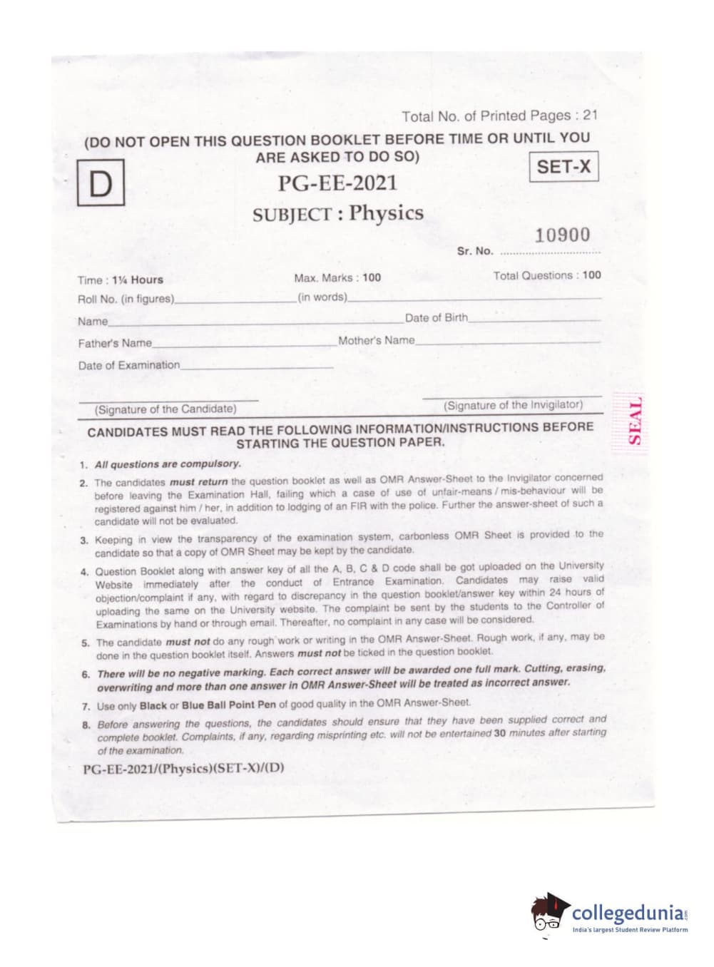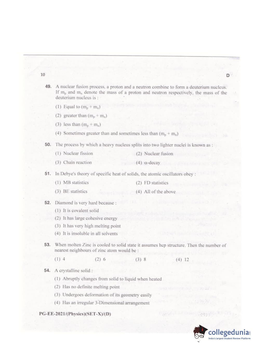 | MDUCEE 2021 M.Sc. Physics Set D Question Paper PDF | MDUCEE 2021 M.Sc. Physics Set D Answer Key PDF |