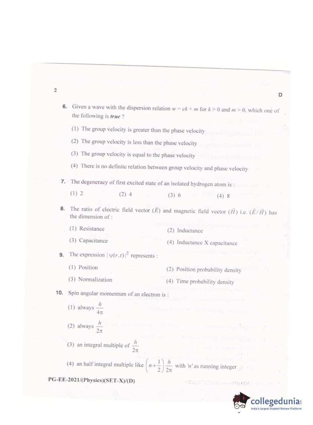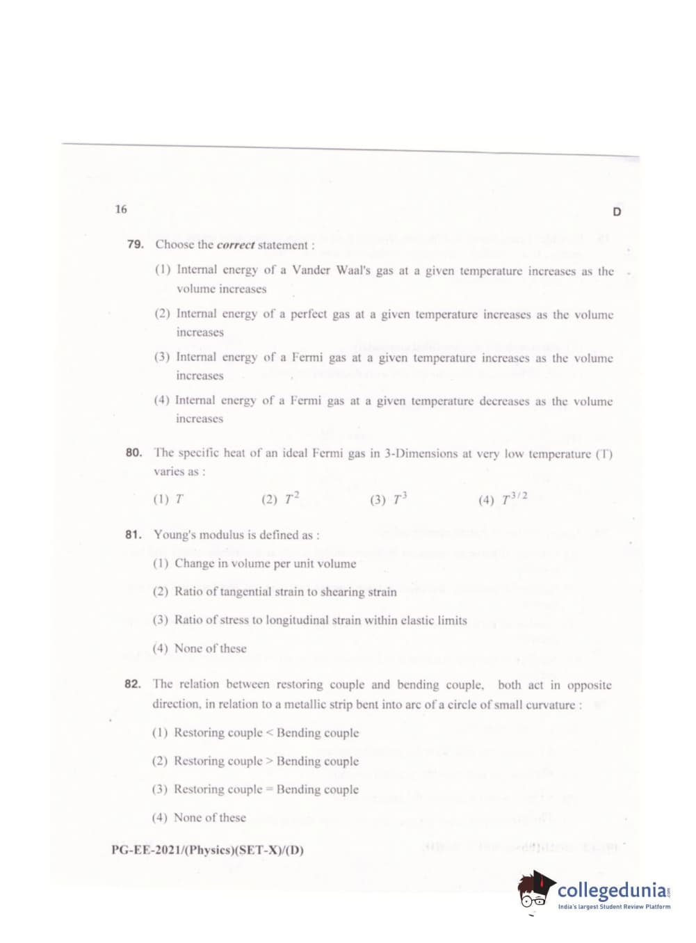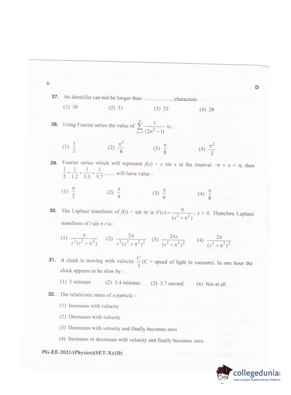 MDUCEE 2021 M.Sc. Physics Set D Question Paper with Answer Key PDFs