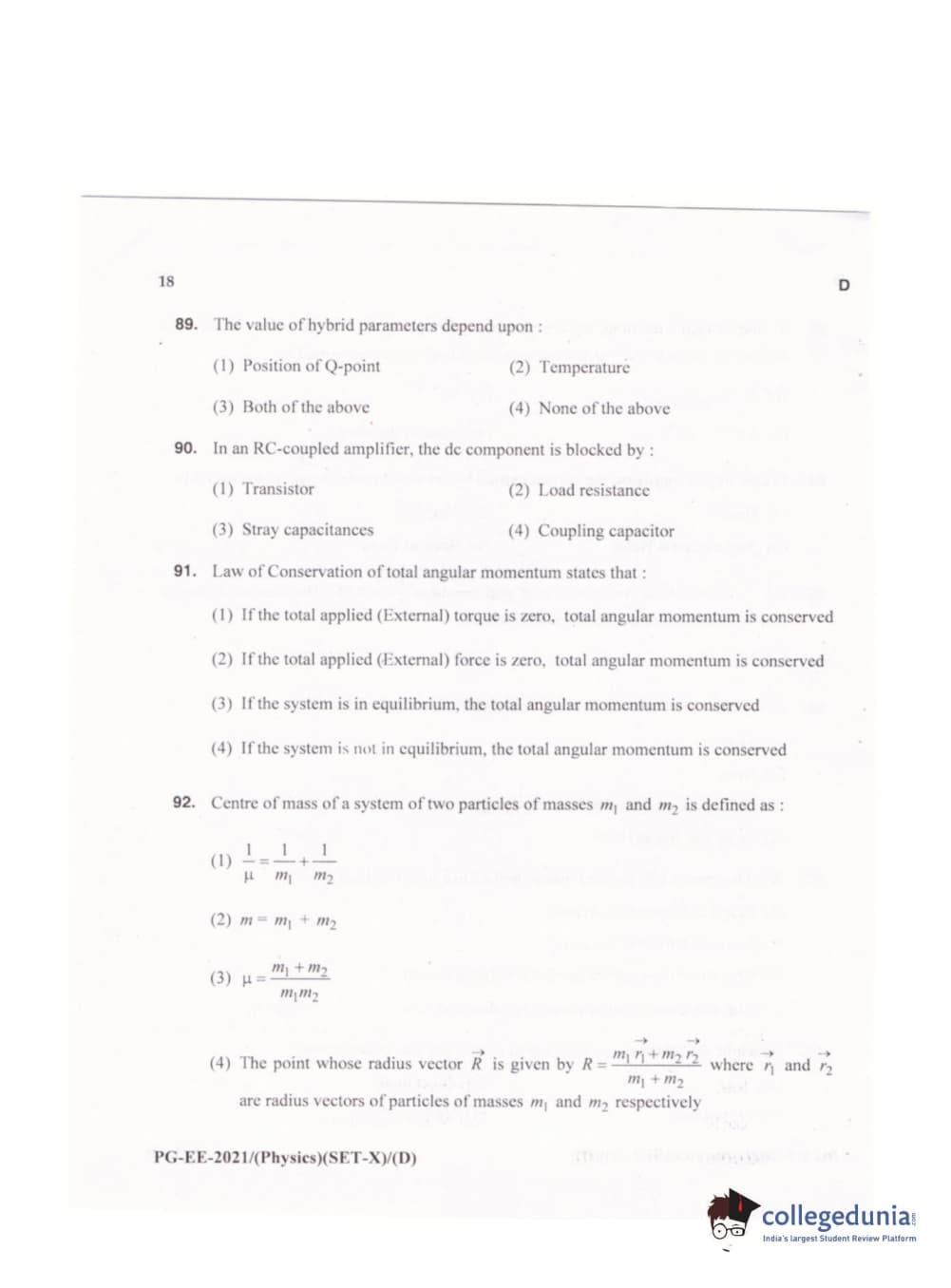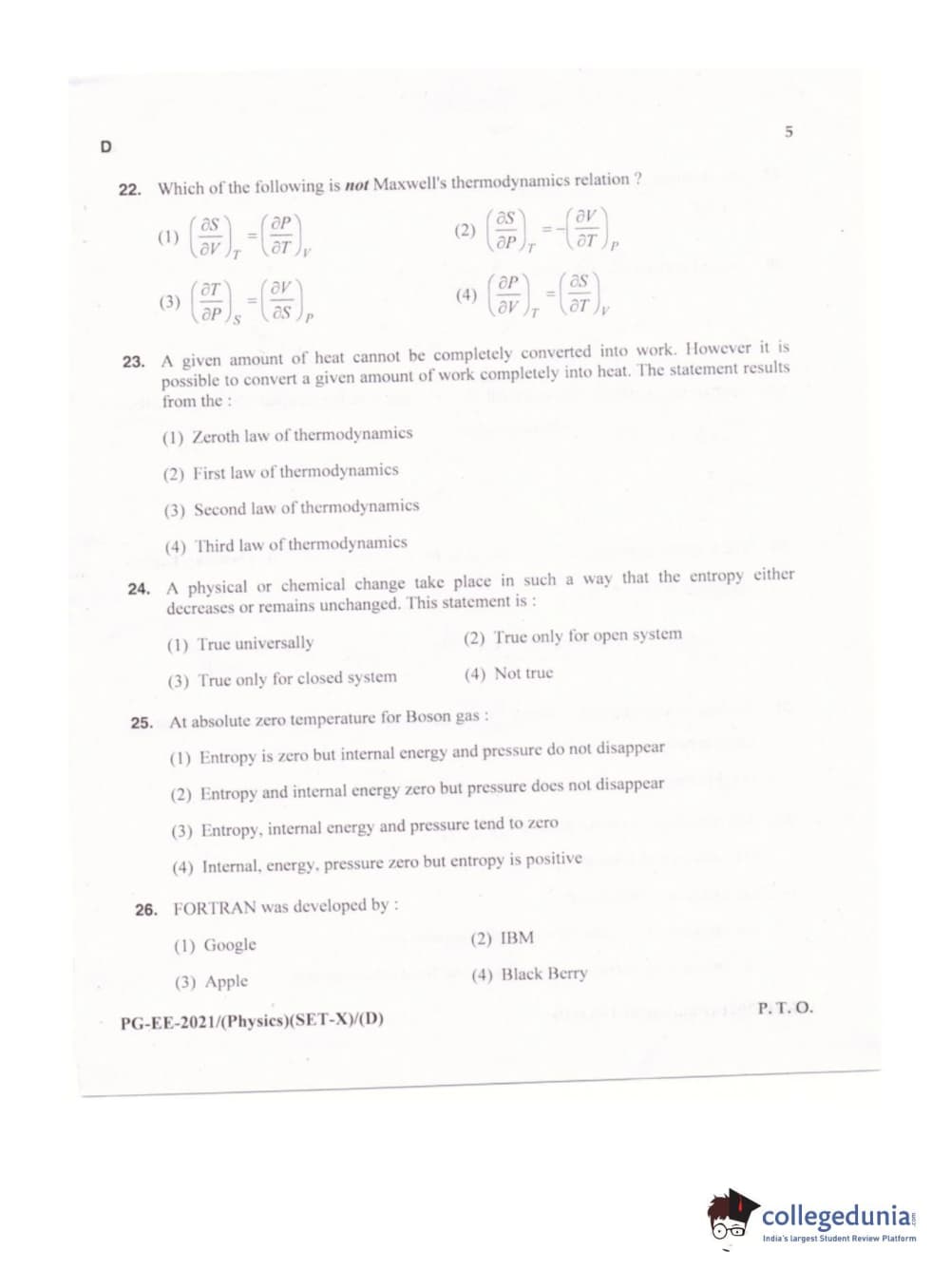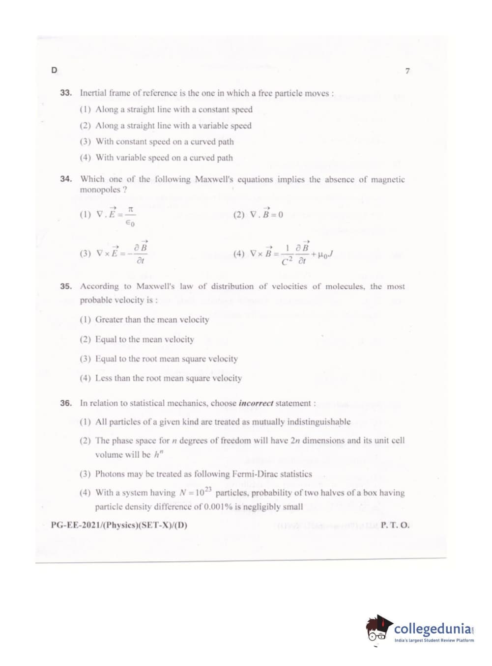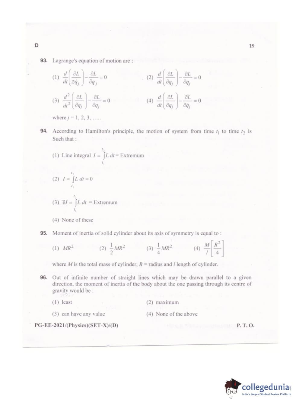 MDUCEE 2021 M.Sc. Physics Set D Question Paper with Answer Key PDFs