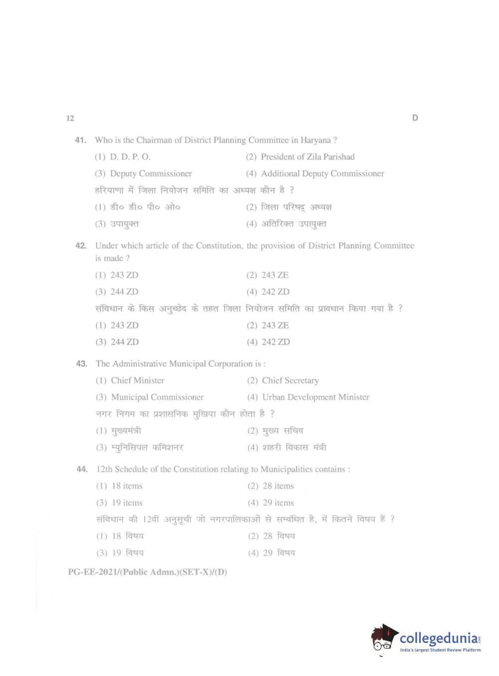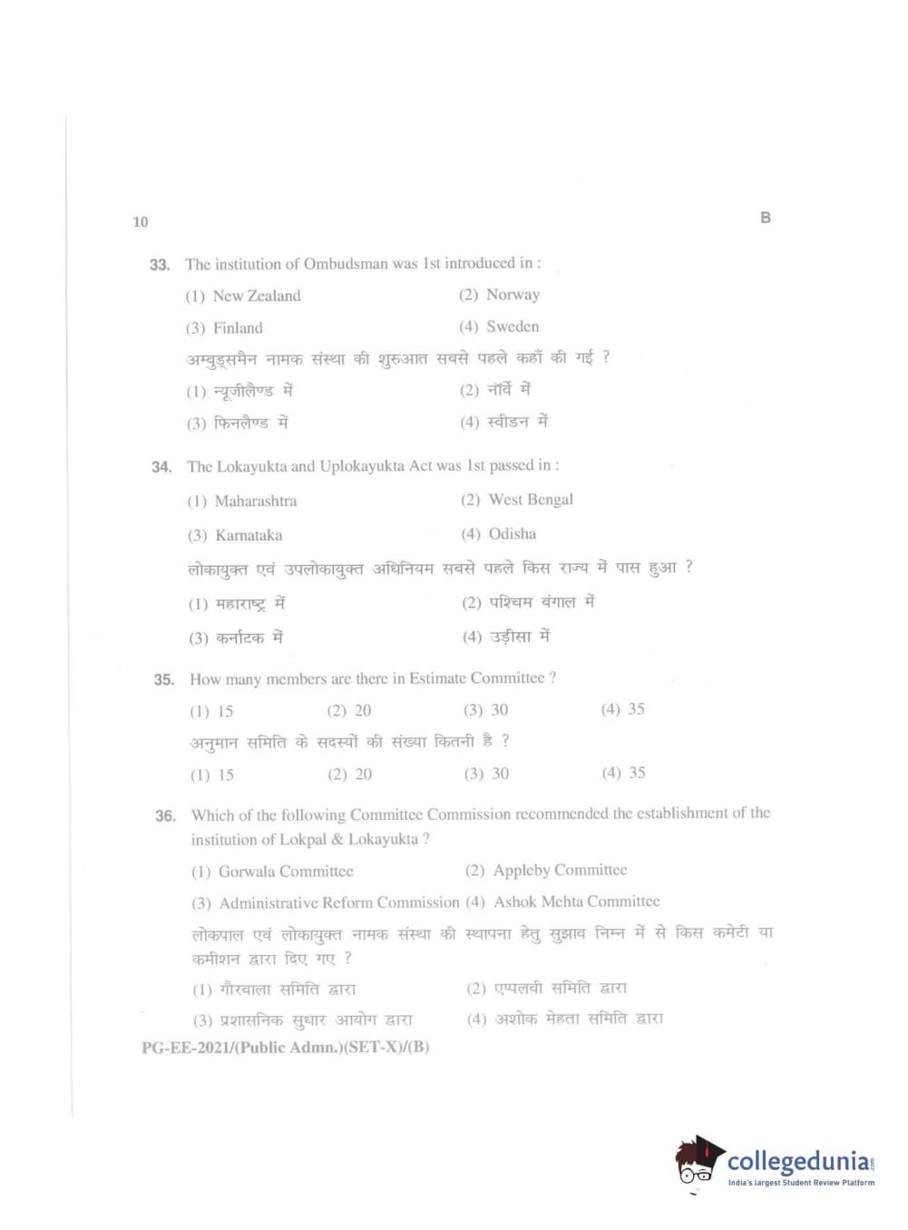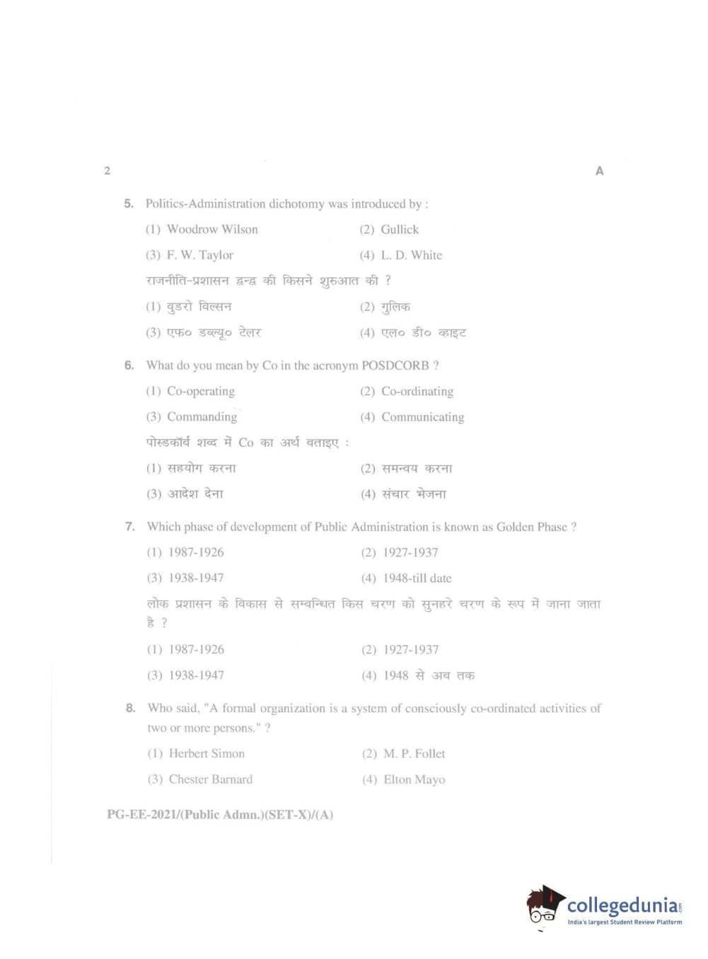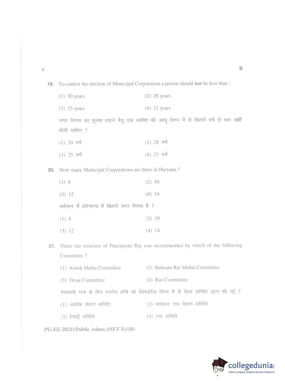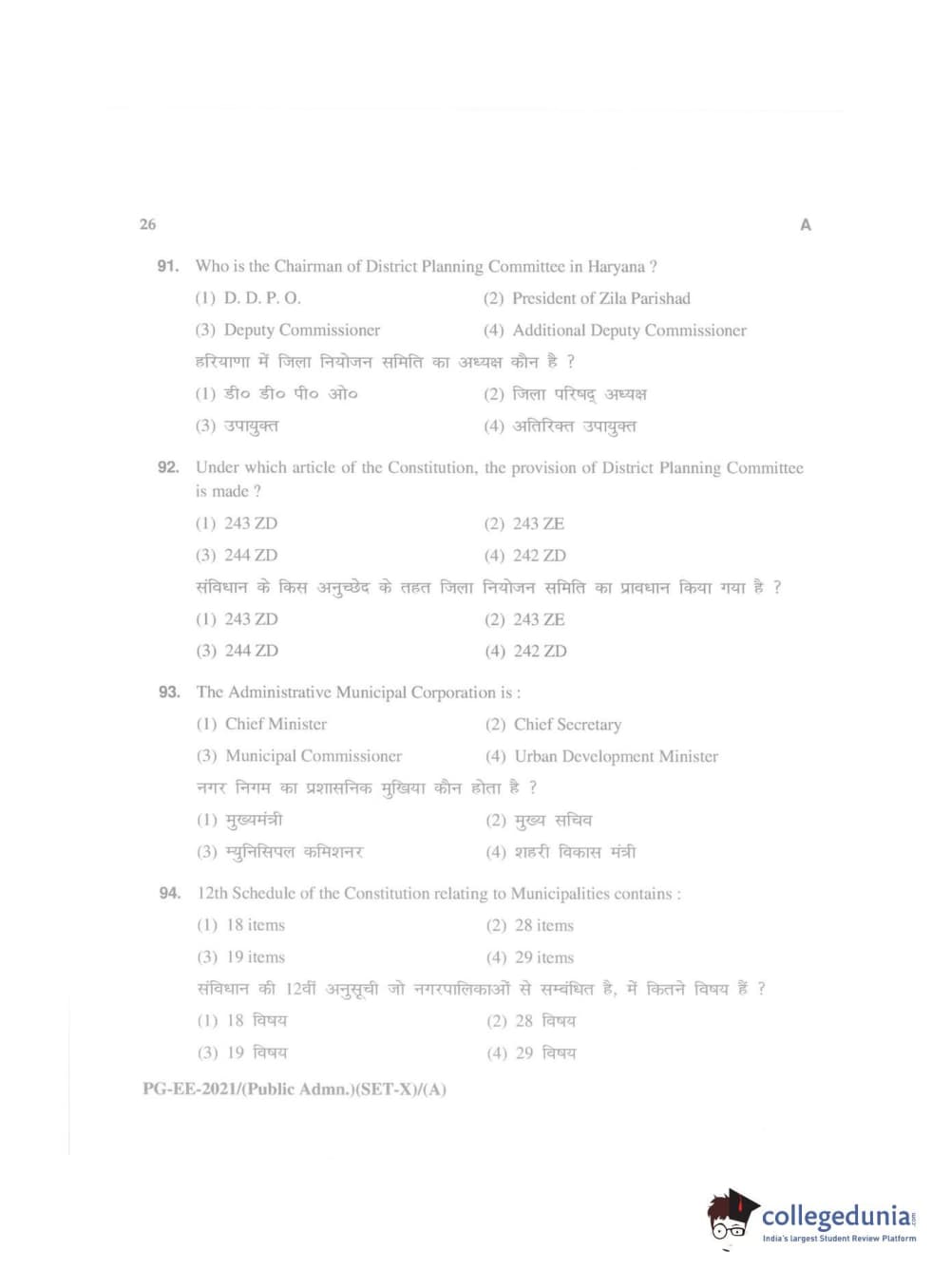 MDUCEE 2021 Public Administration Question Paper with Answer Key PDFs