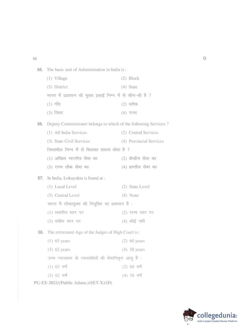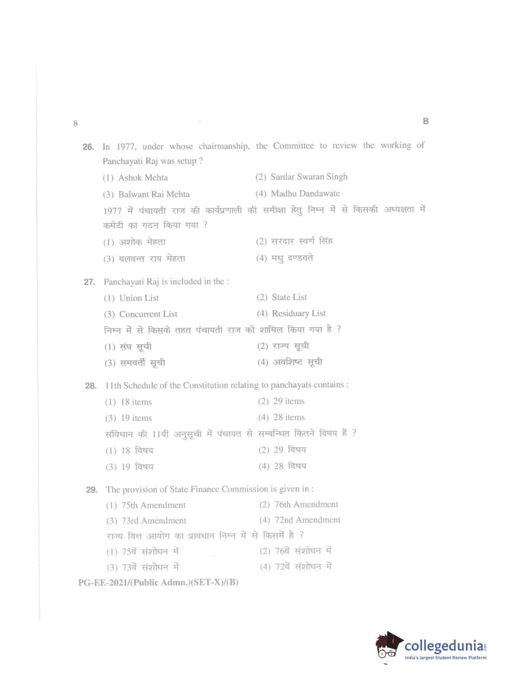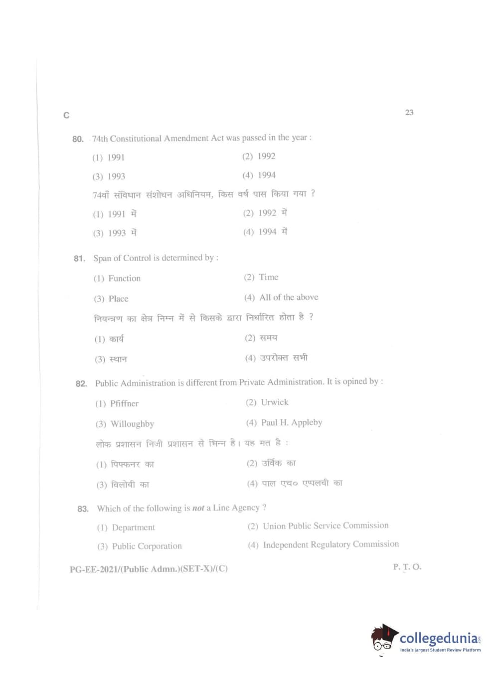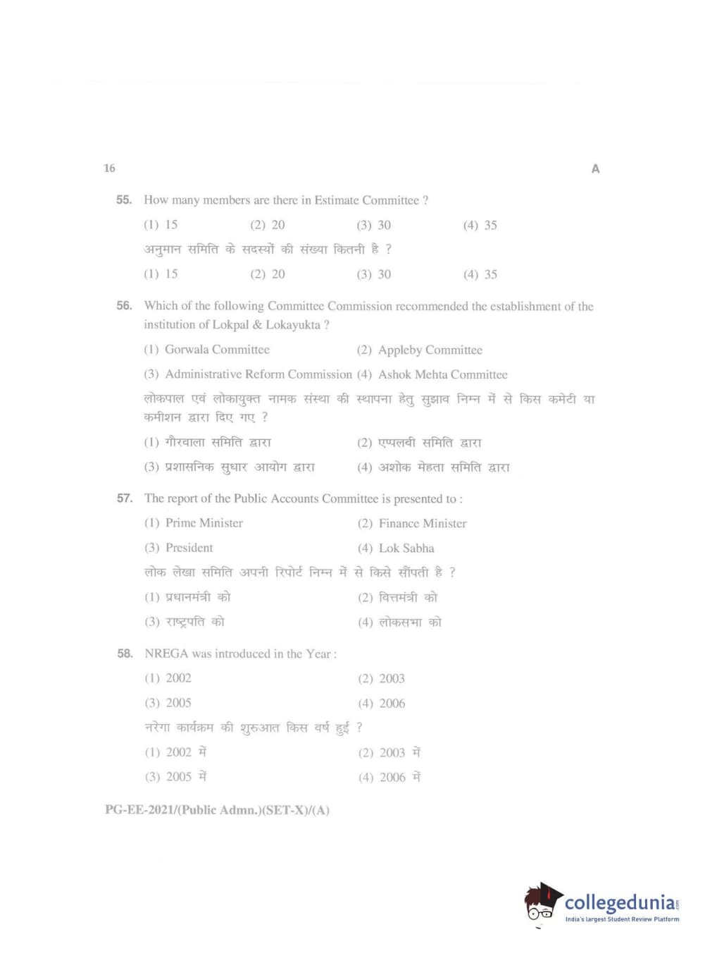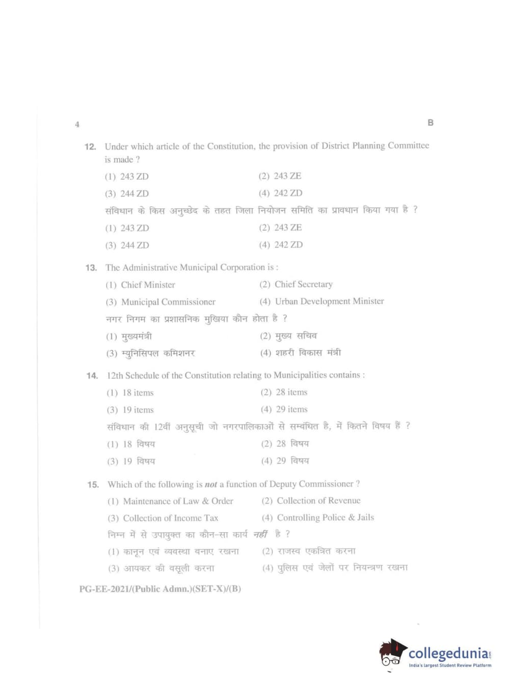 MDUCEE 2021 Public Administration Question Paper with Answer Key PDFs