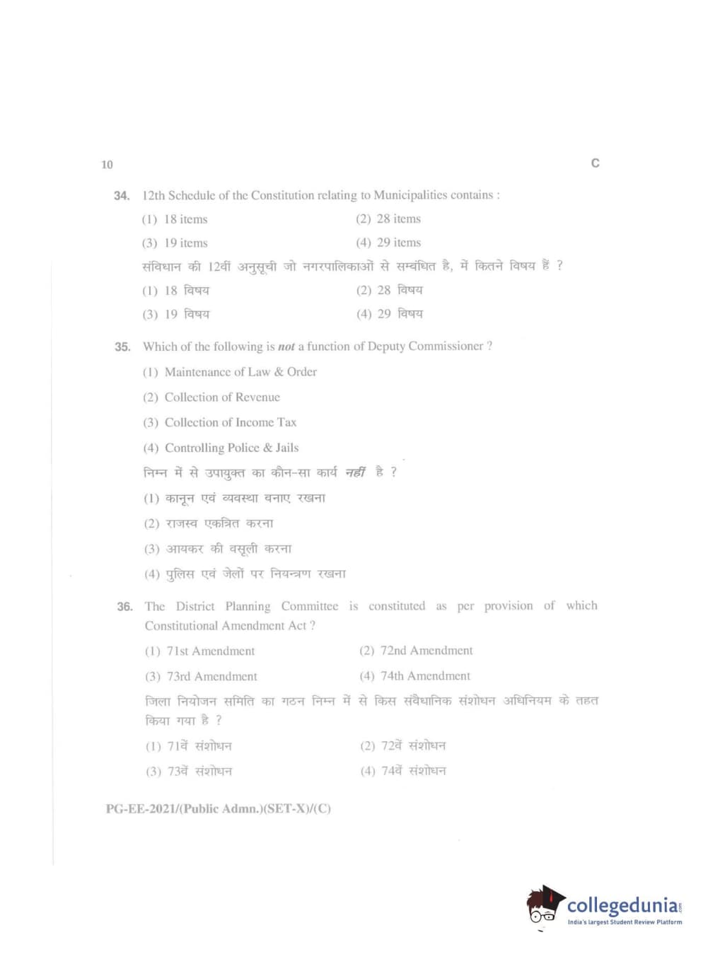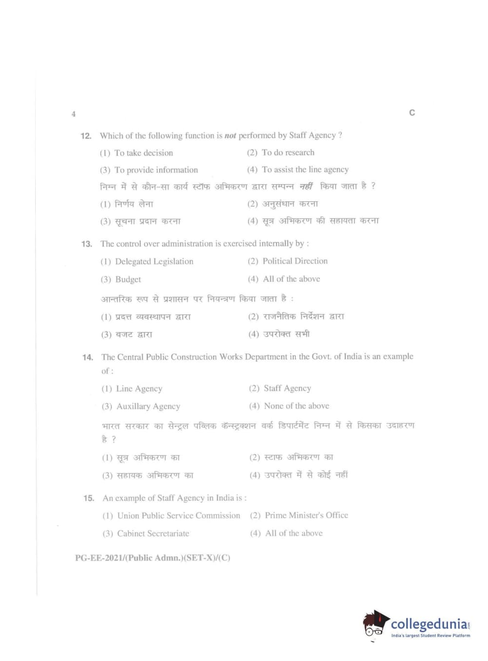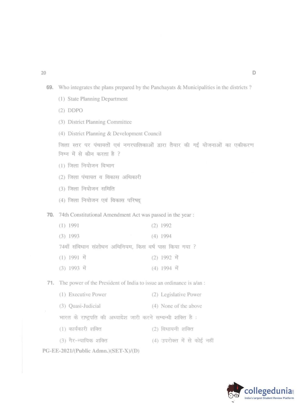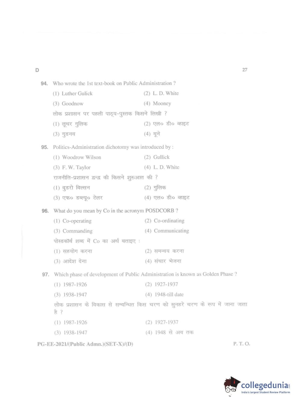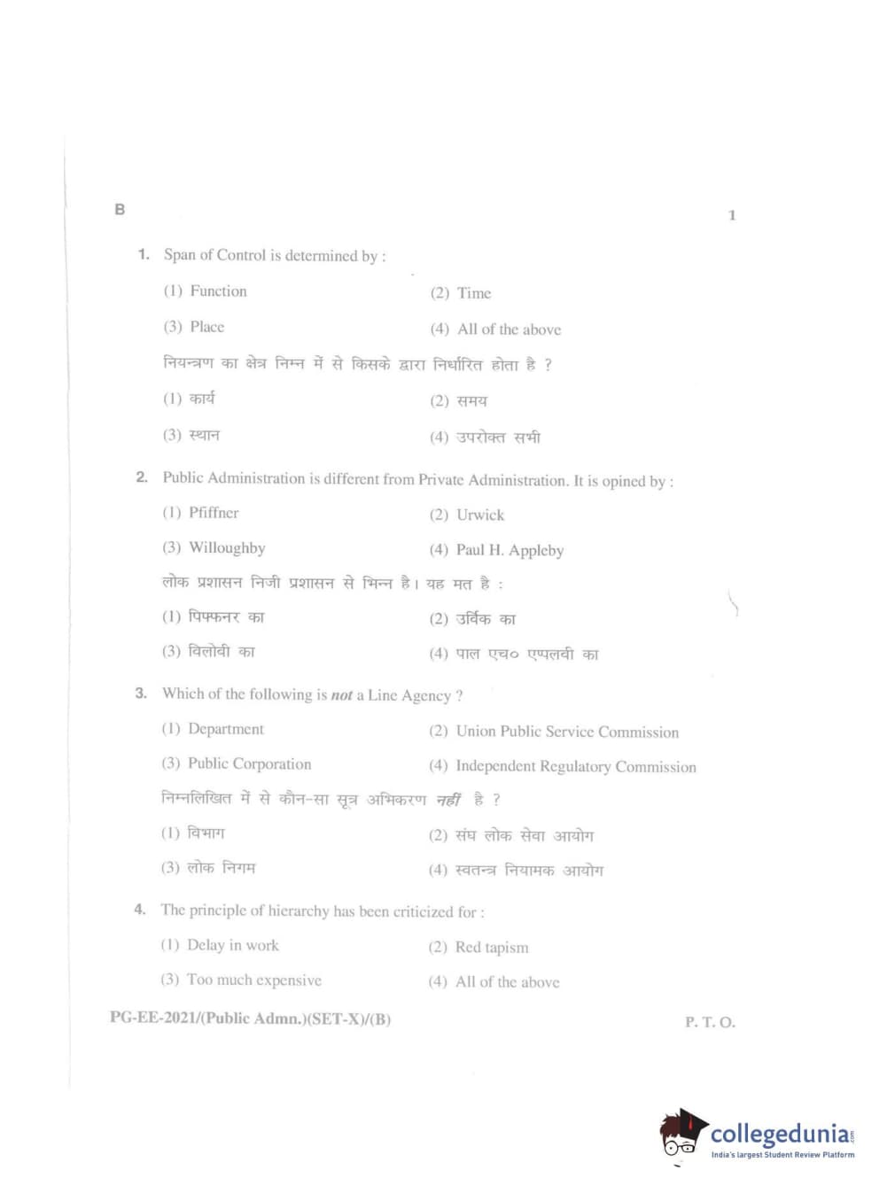 MDUCEE 2021 Public Administration Question Paper with Answer Key PDFs