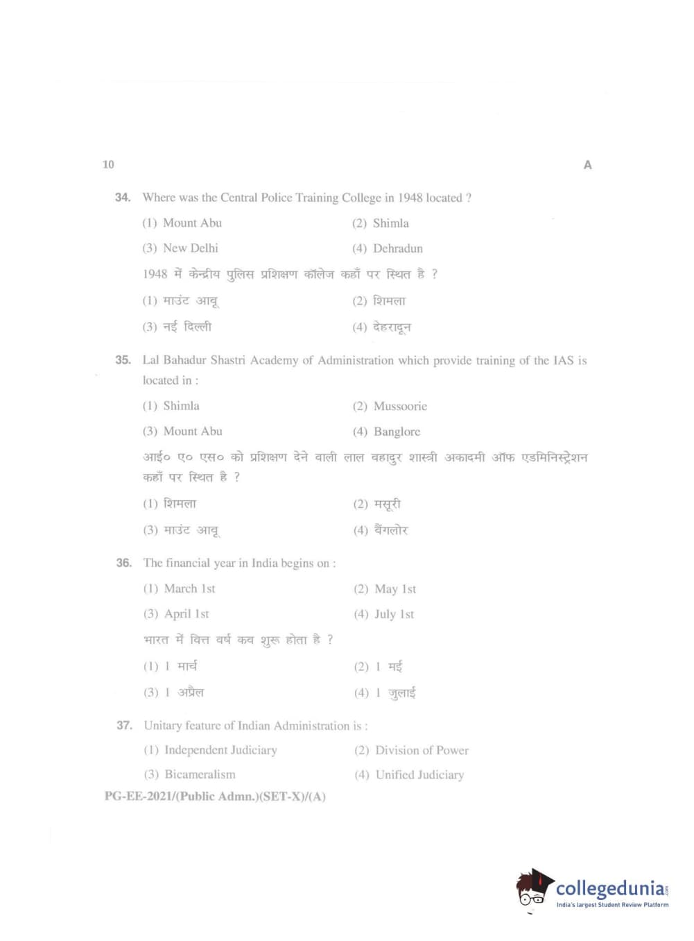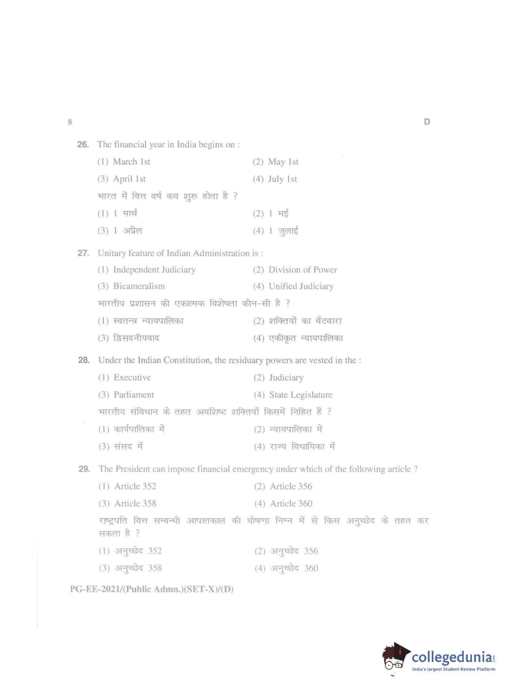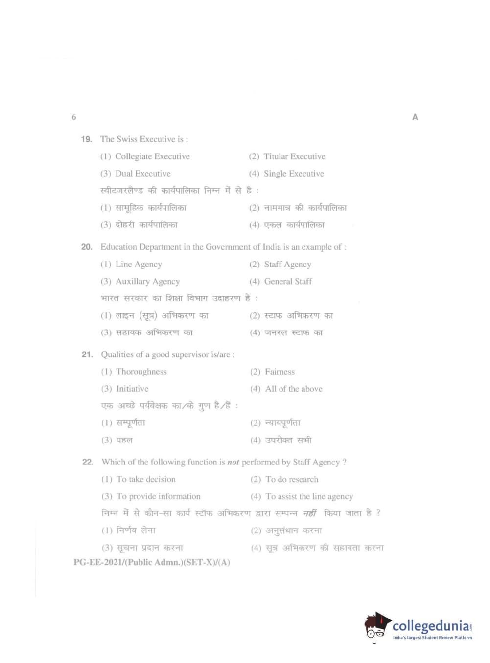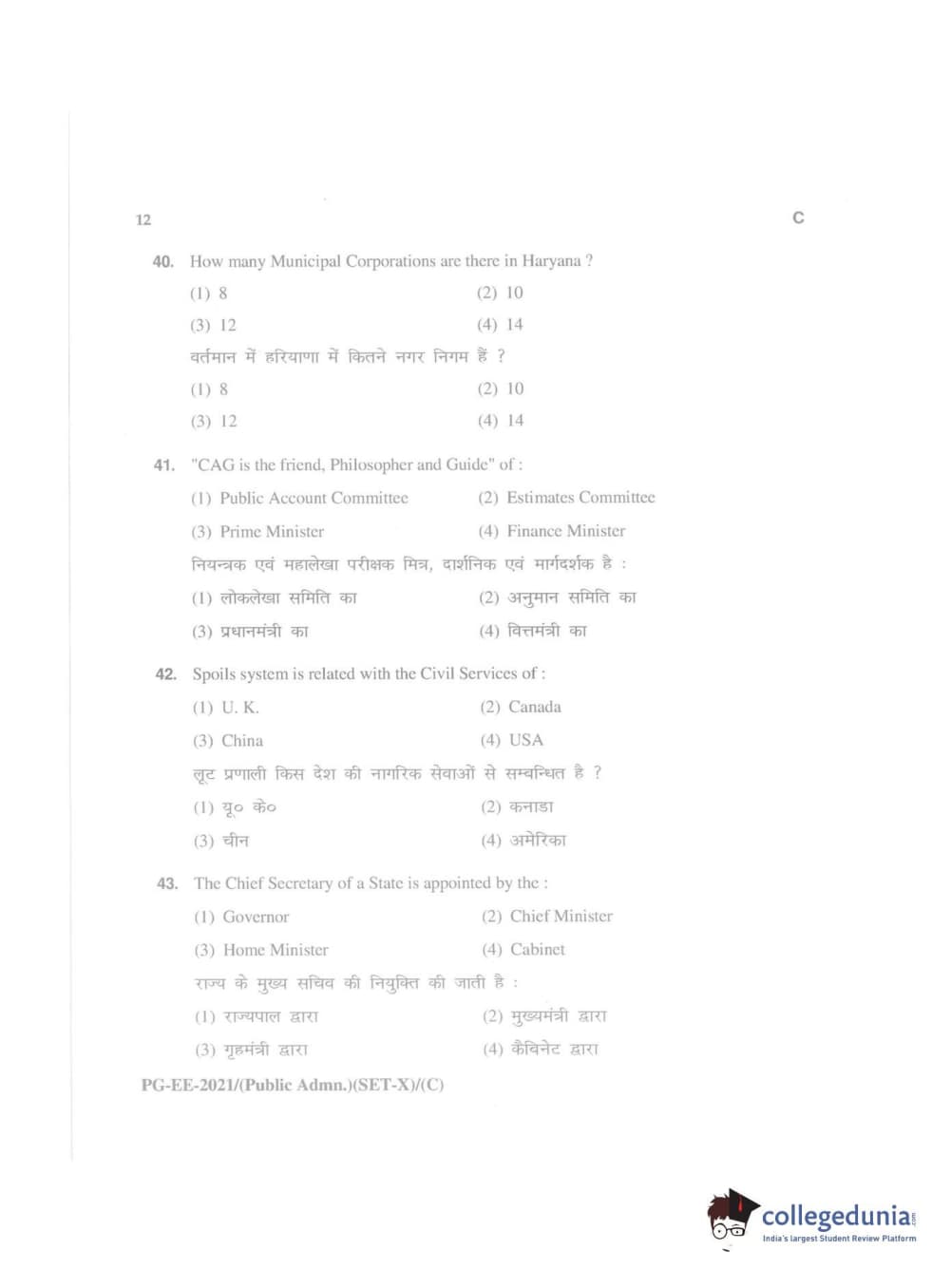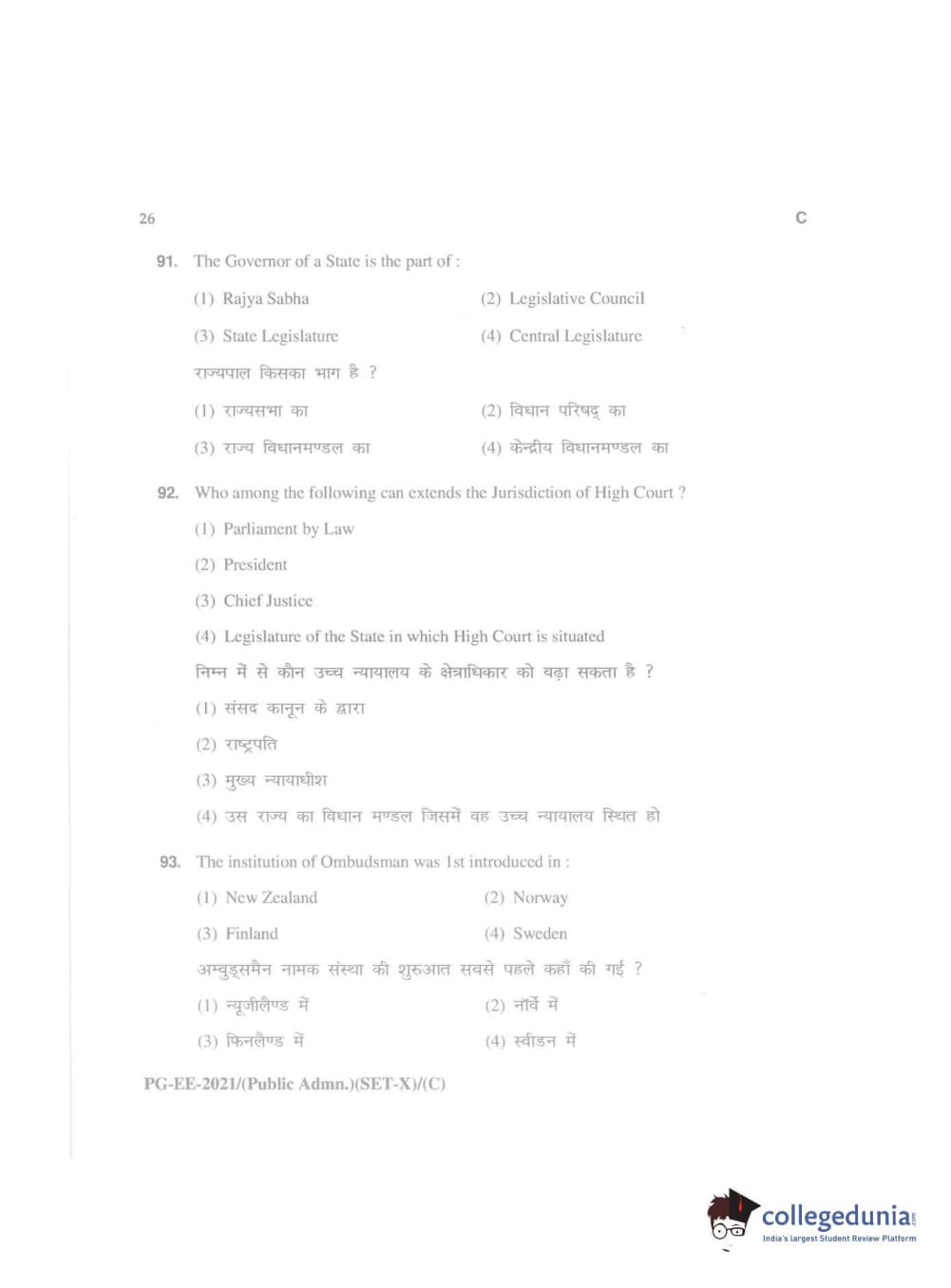 MDUCEE 2021 Public Administration Question Paper with Answer Key PDFs
