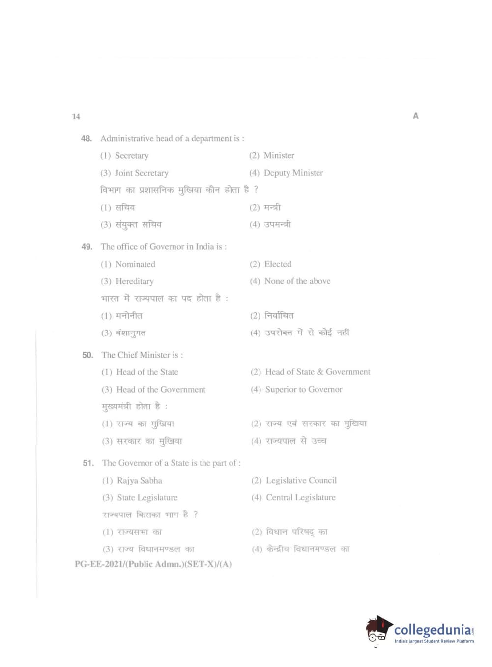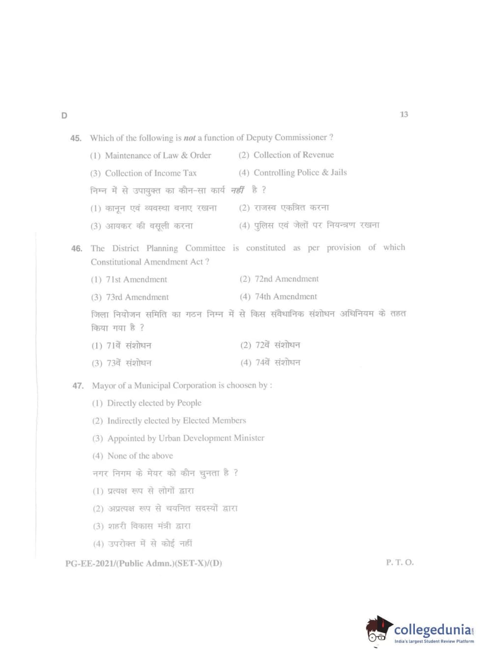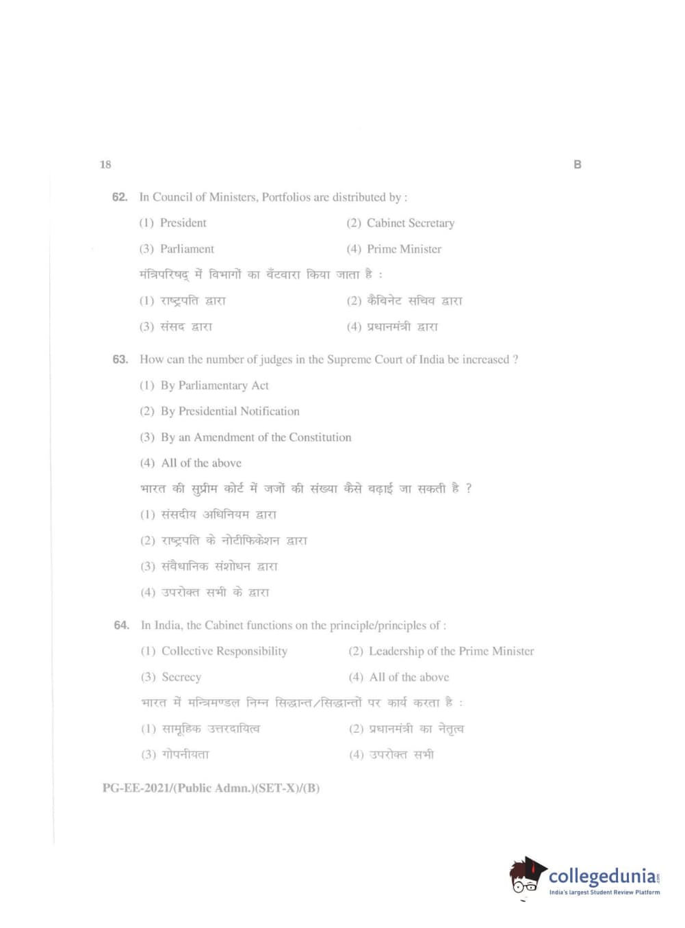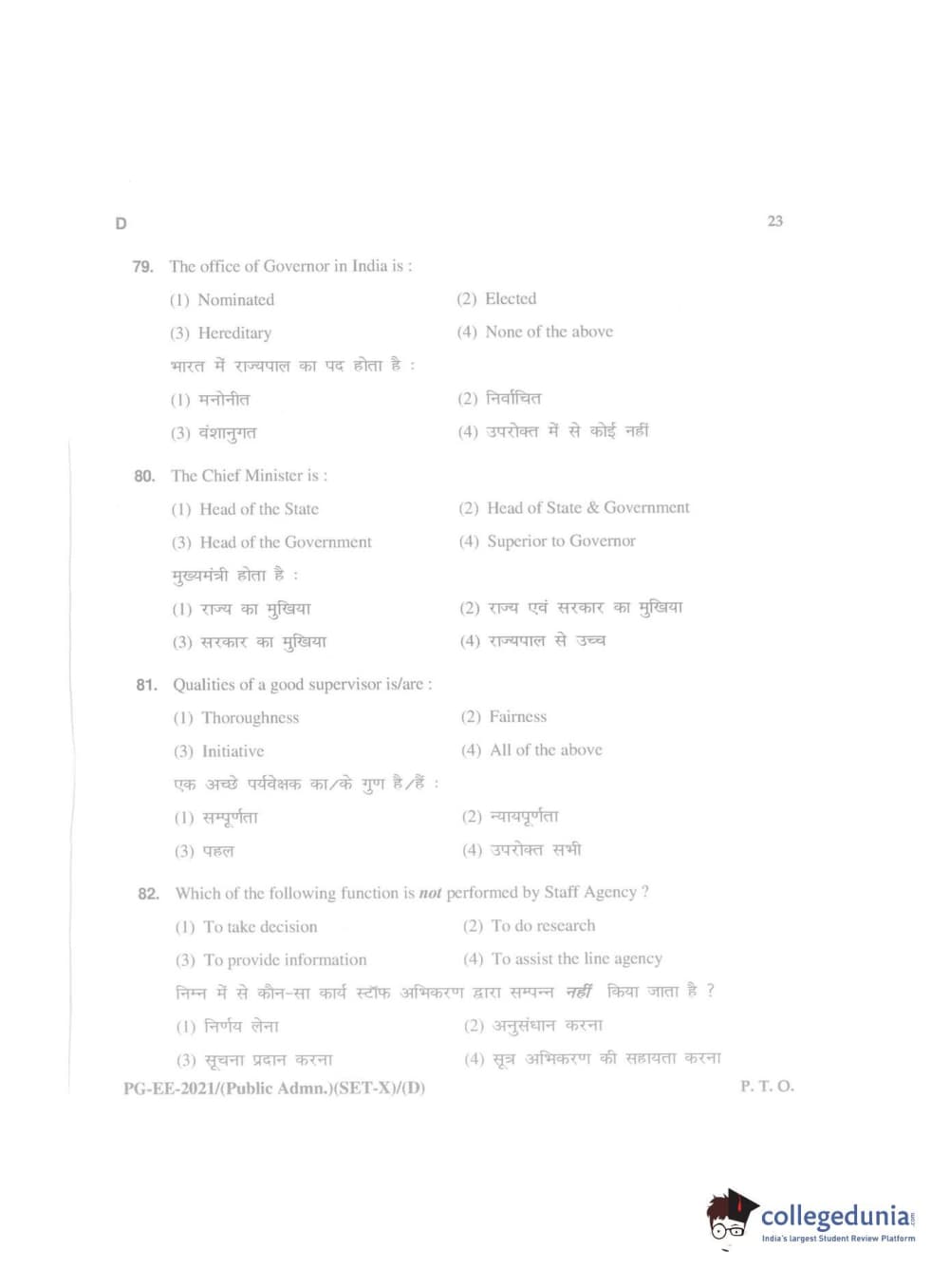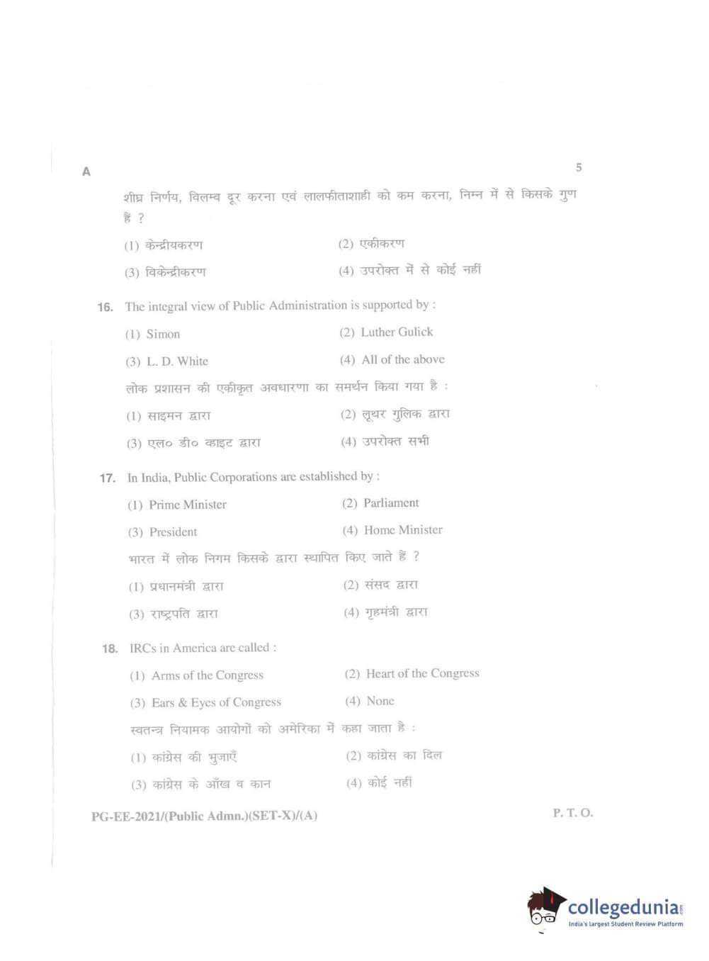 MDUCEE 2021 Public Administration Question Paper with Answer Key PDFs