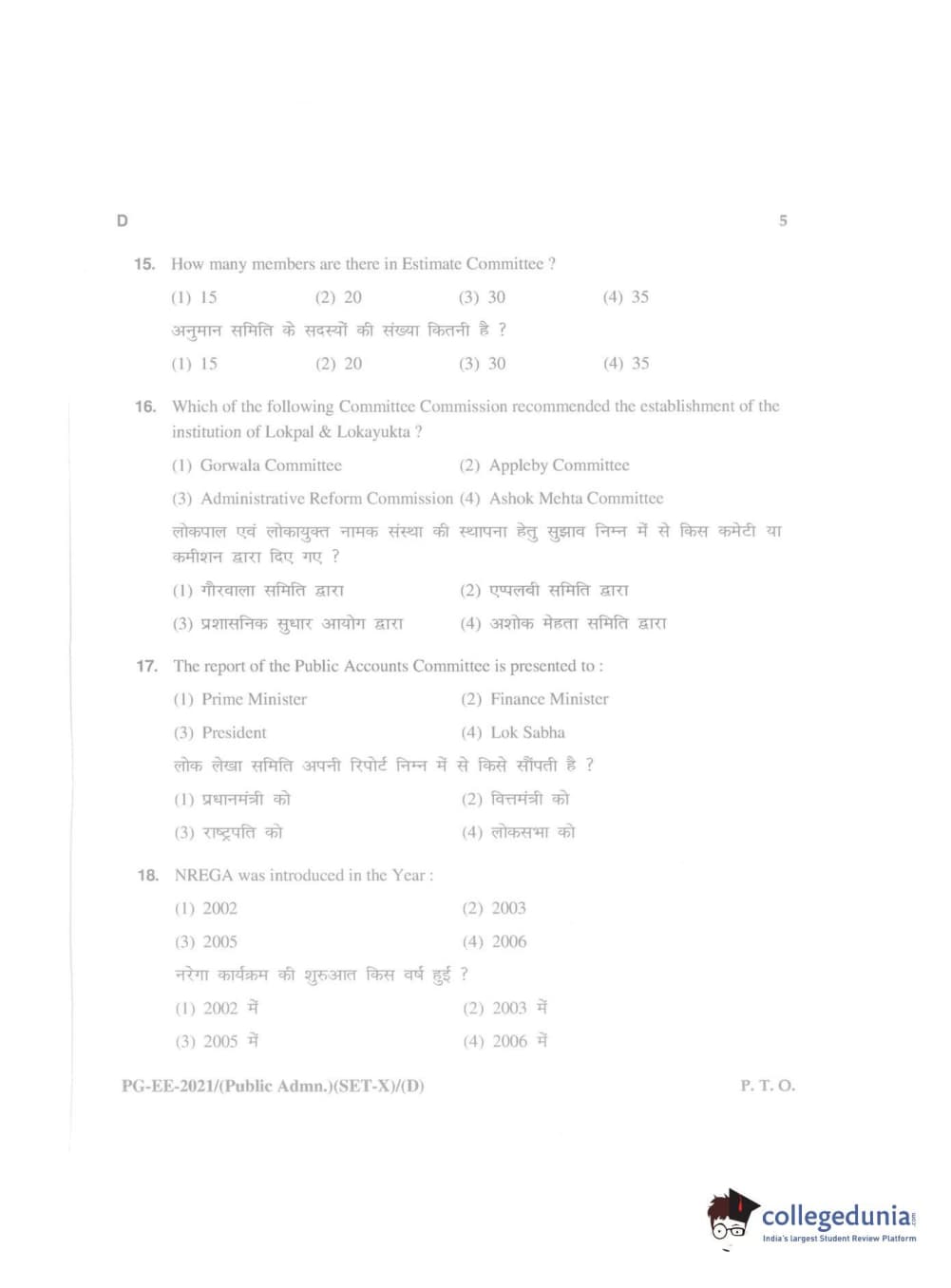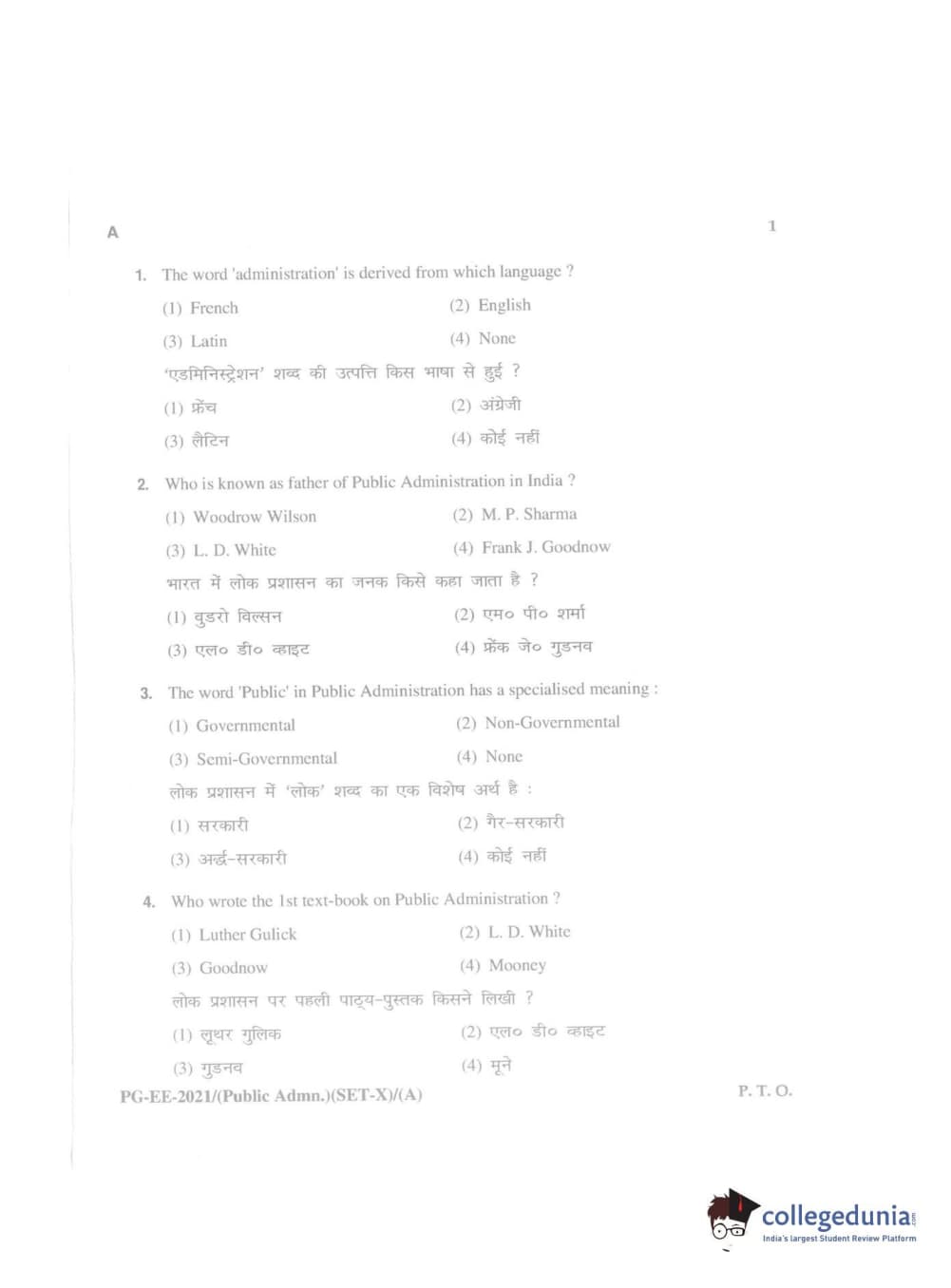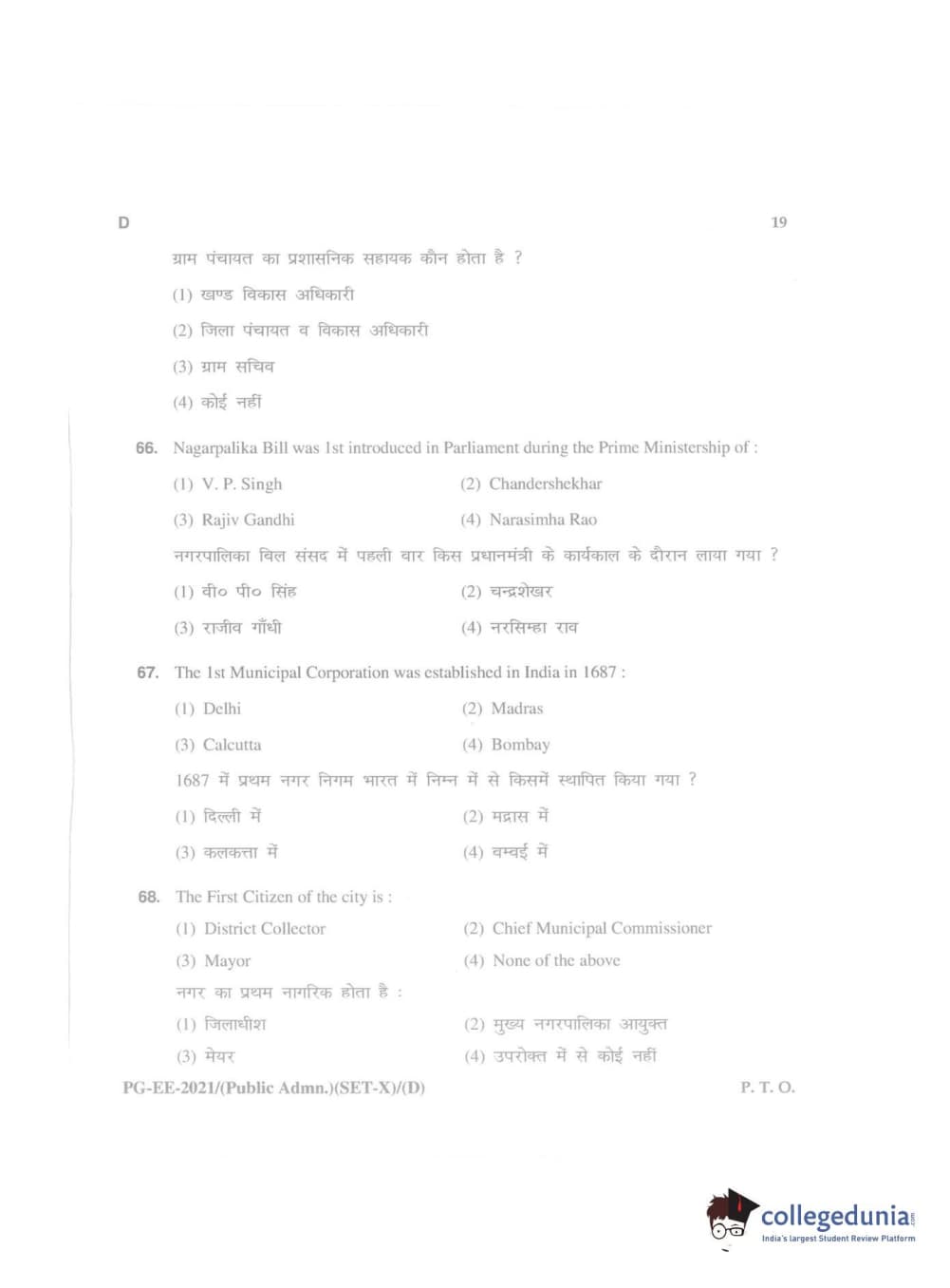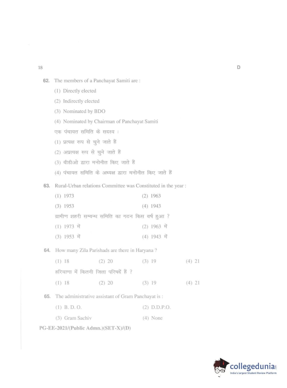 MDUCEE 2021 Public Administration Question Paper with Answer Key PDFs