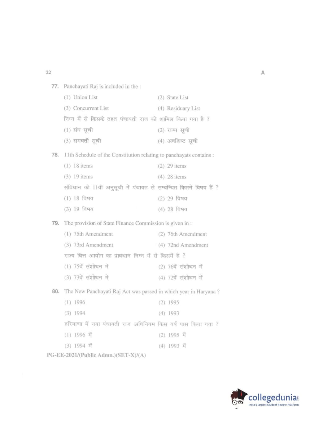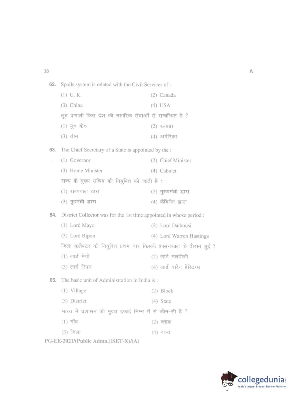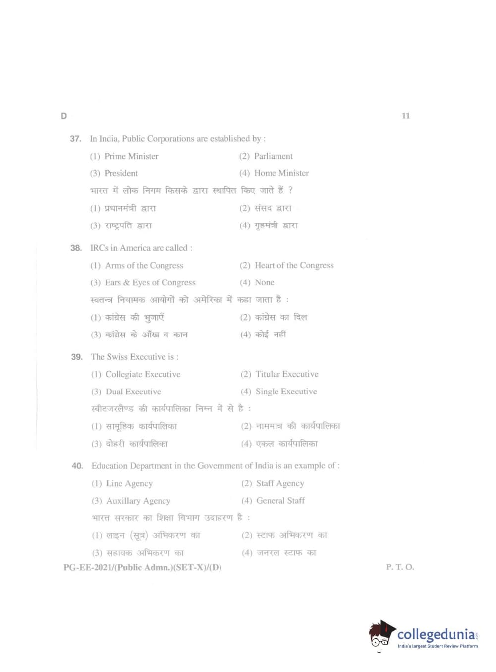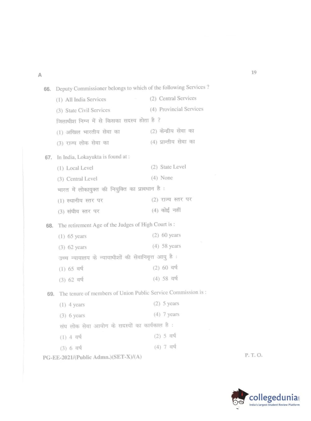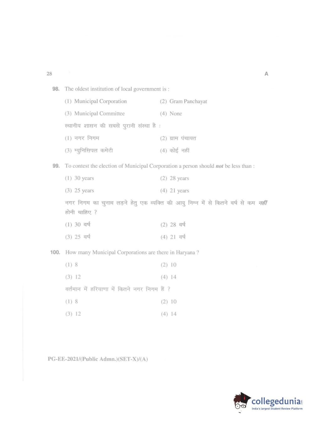 MDUCEE 2021 Public Administration Question Paper with Answer Key PDFs
