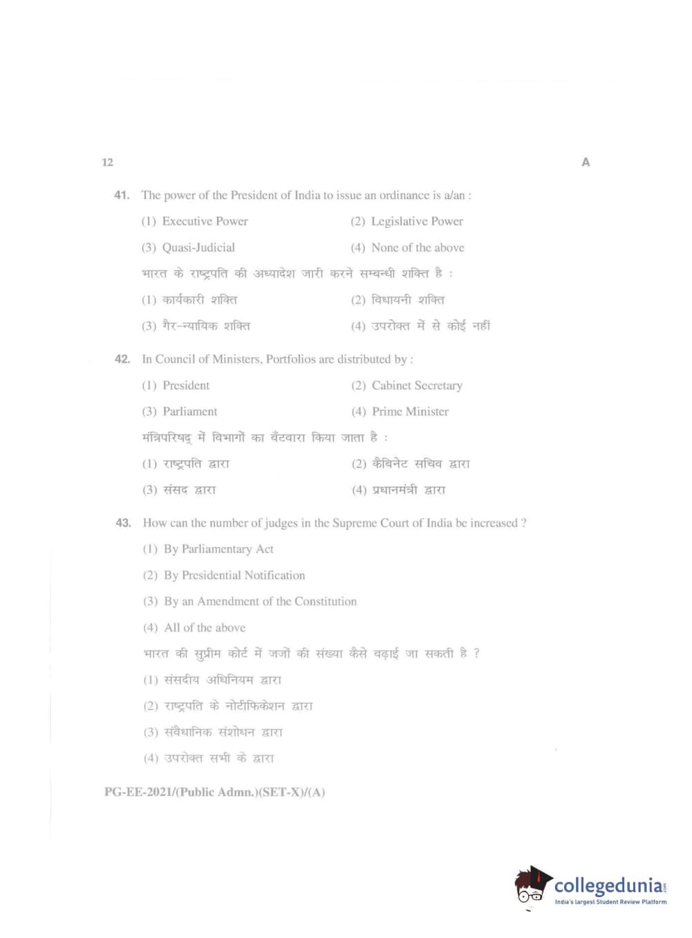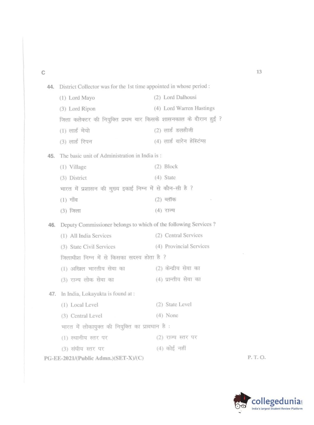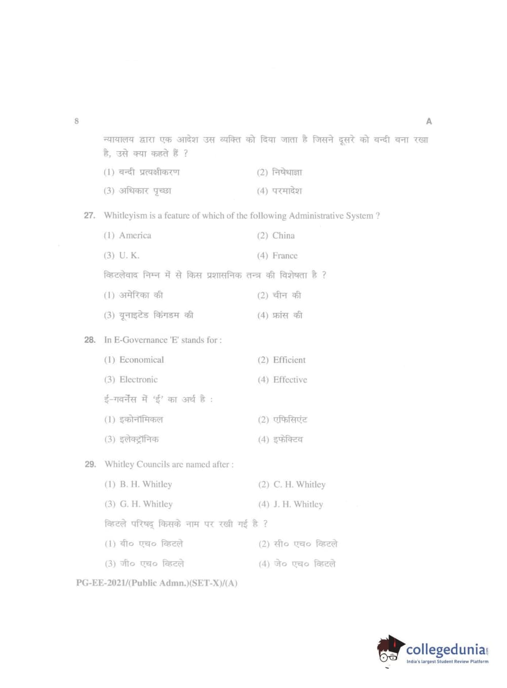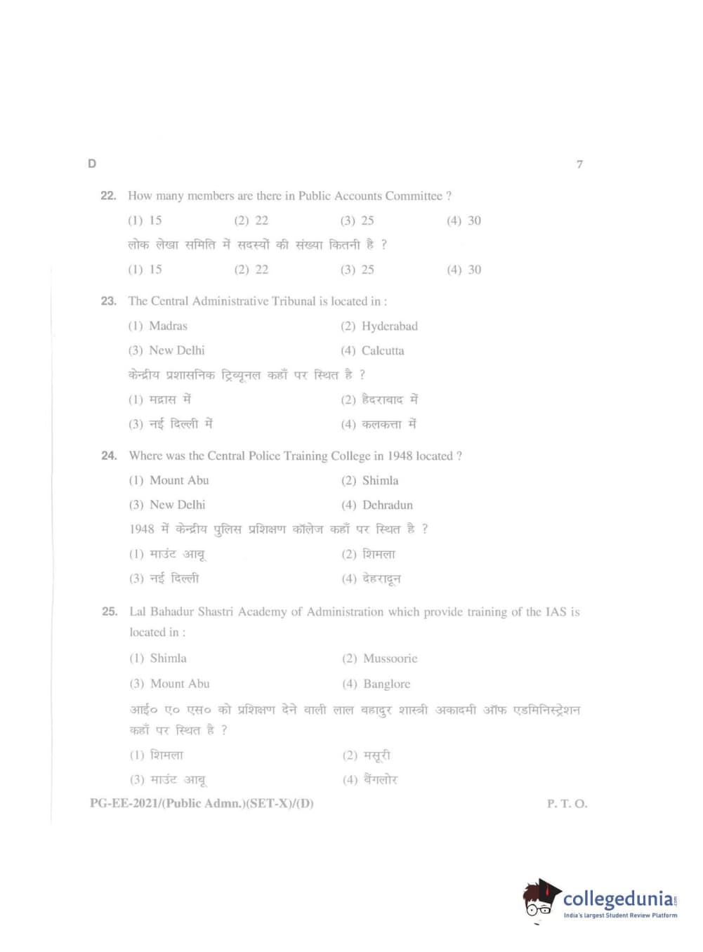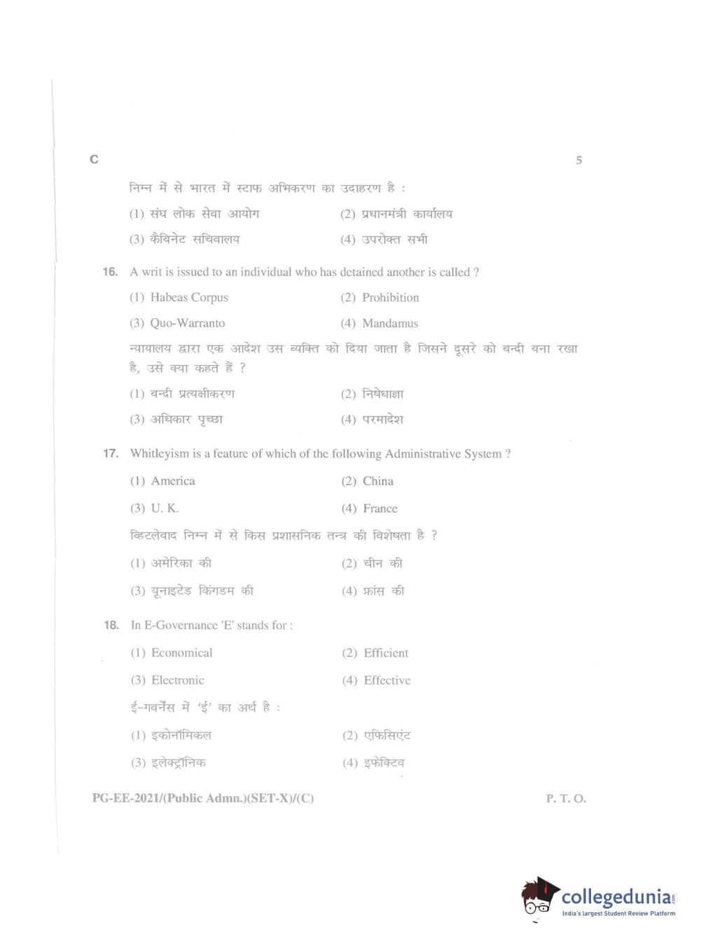 MDUCEE 2021 Public Administration Question Paper with Answer Key PDFs