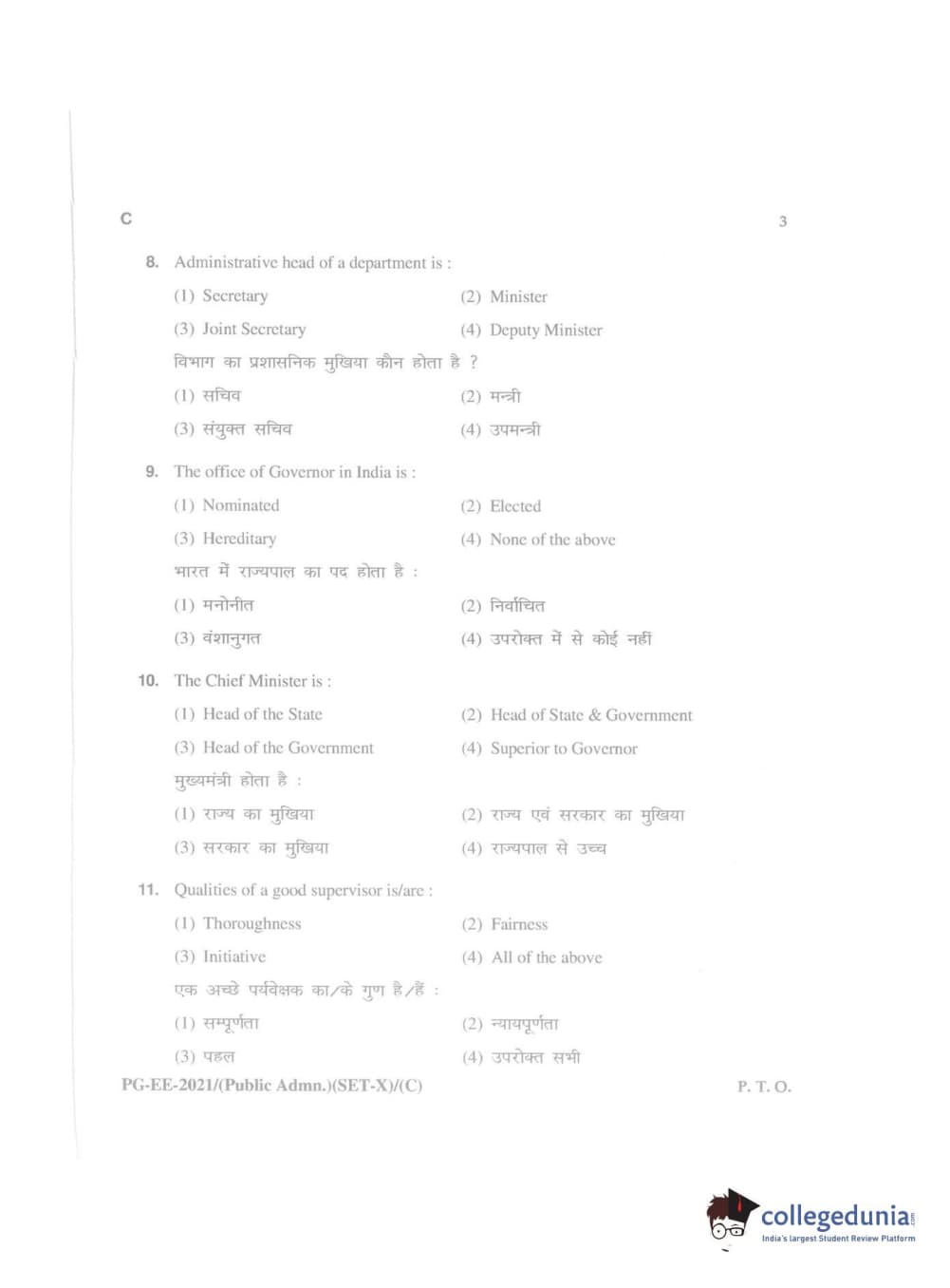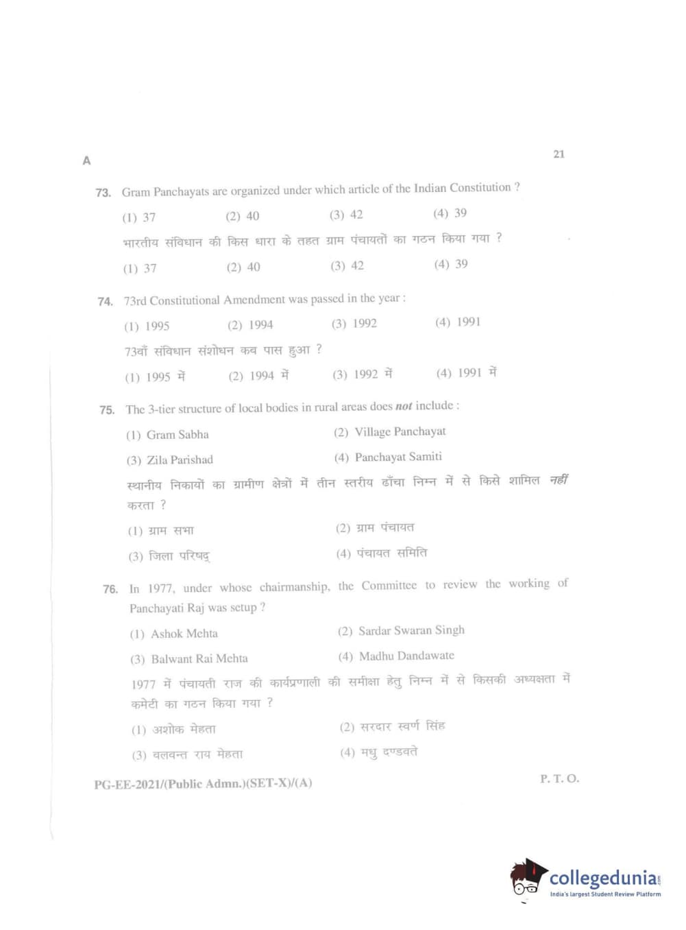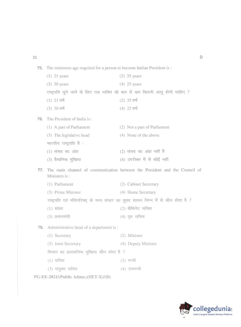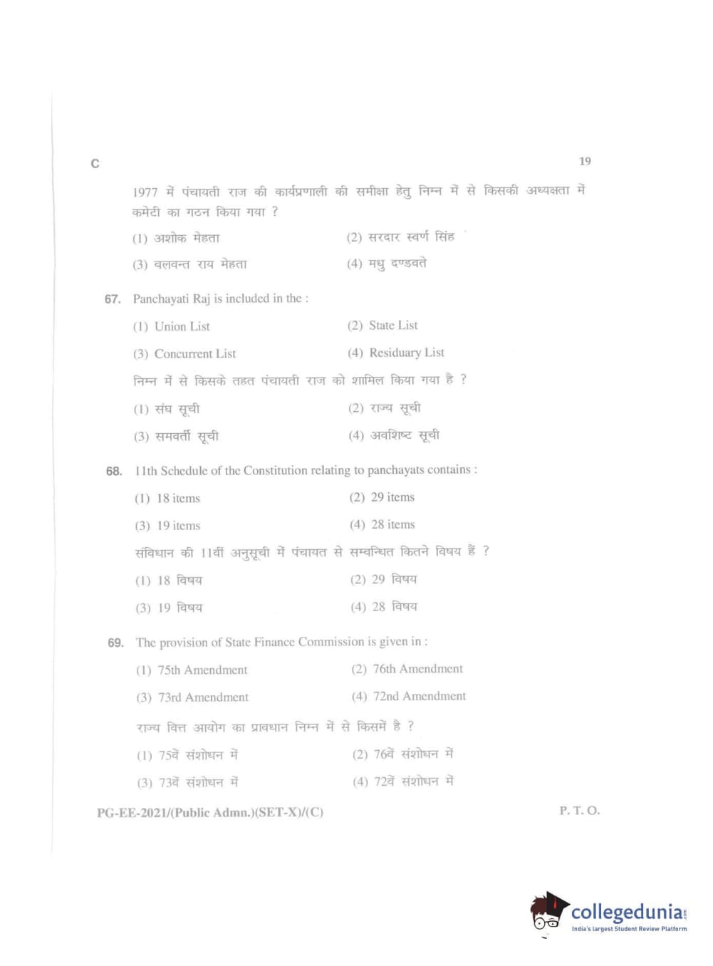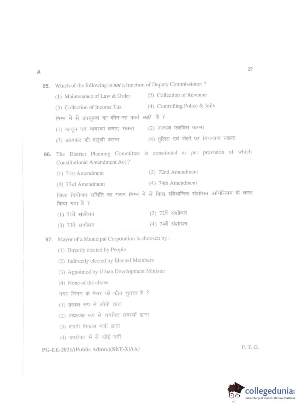 MDUCEE 2021 Public Administration Question Paper with Answer Key PDFs