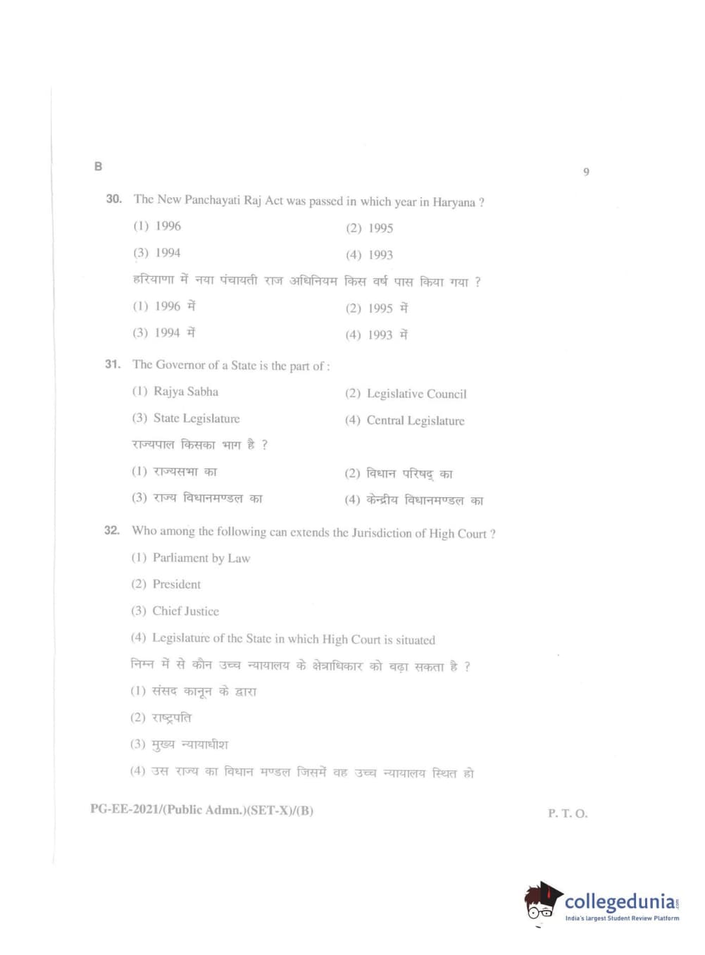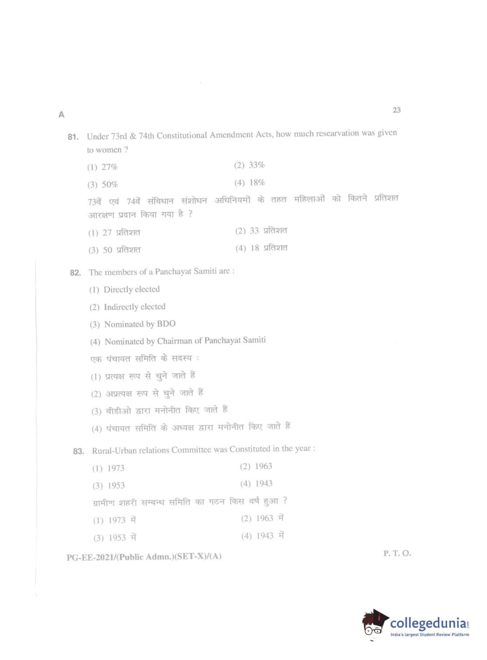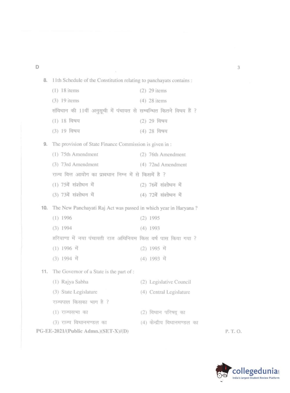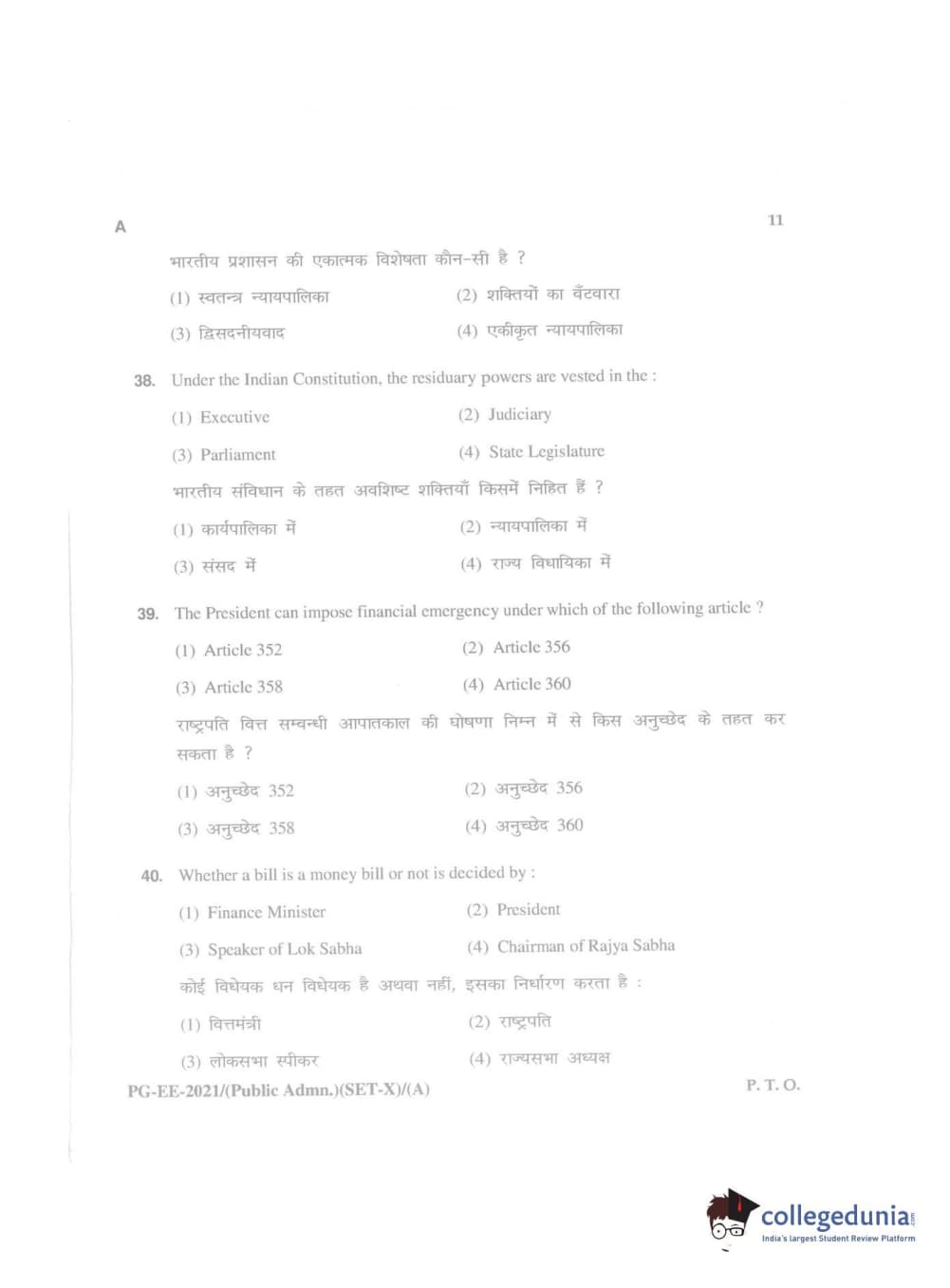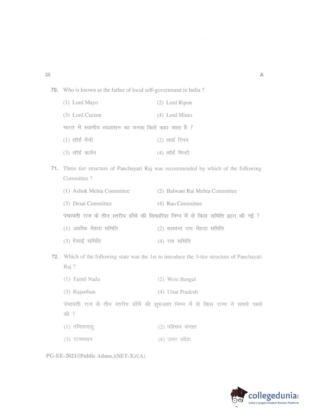 MDUCEE 2021 Public Administration Question Paper with Answer Key PDFs
