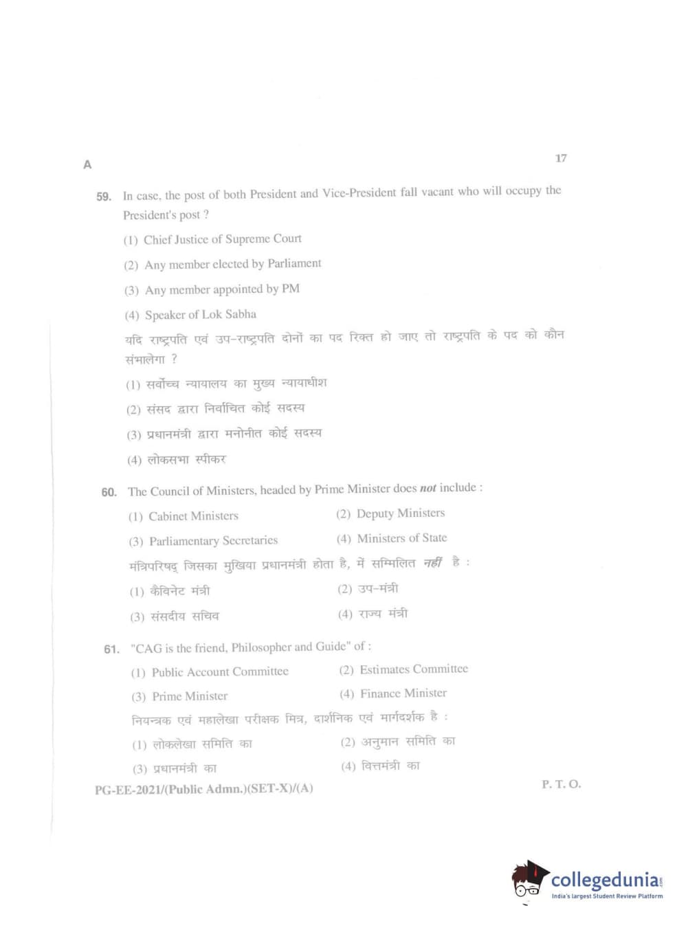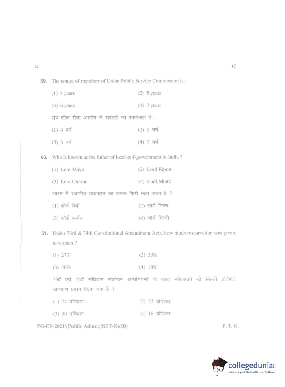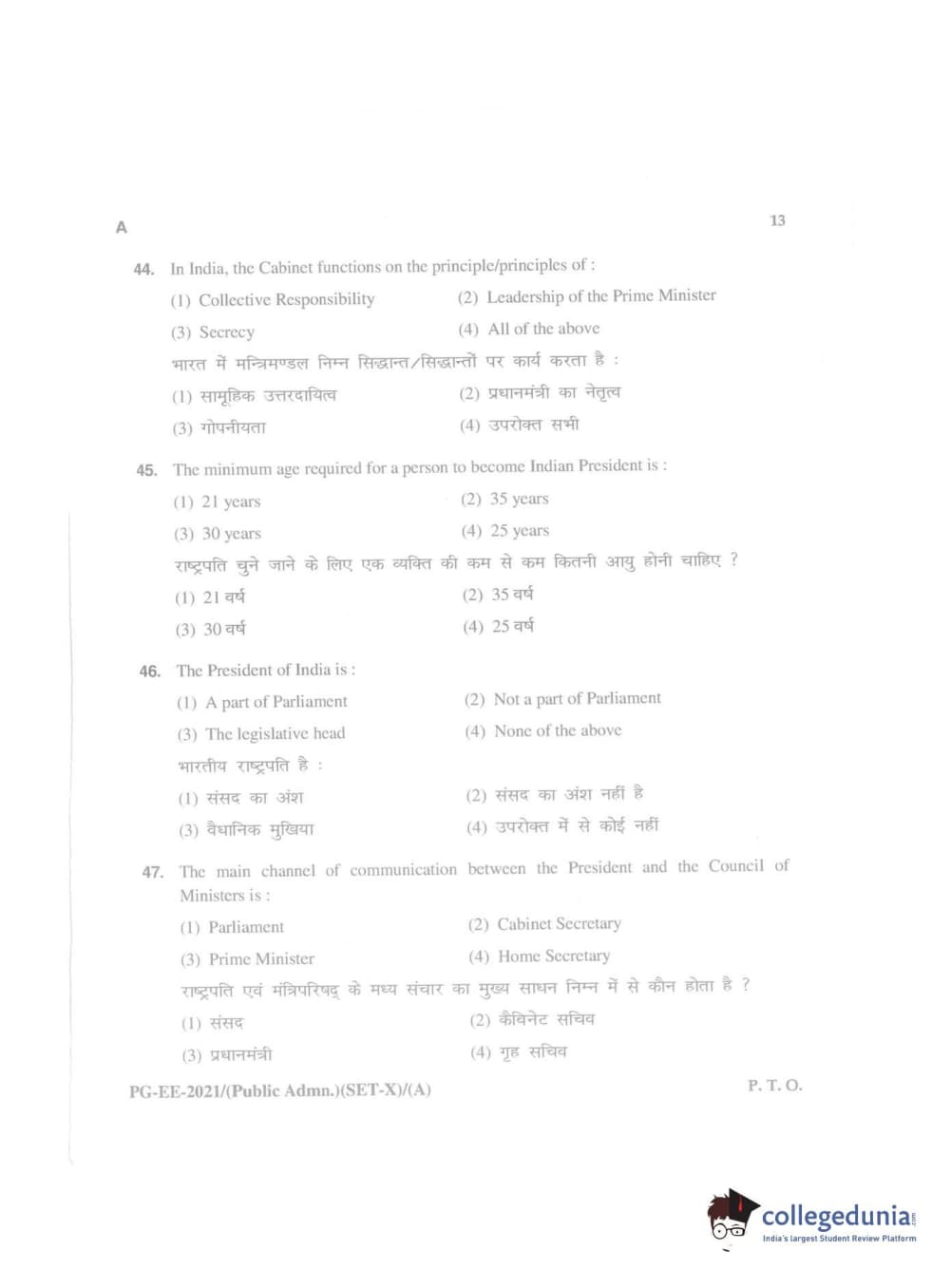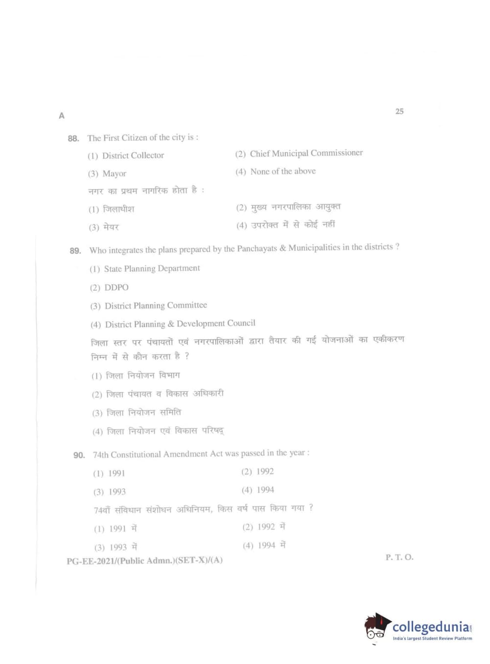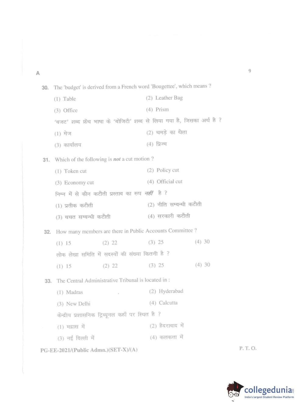 MDUCEE 2021 Public Administration Question Paper with Answer Key PDFs
