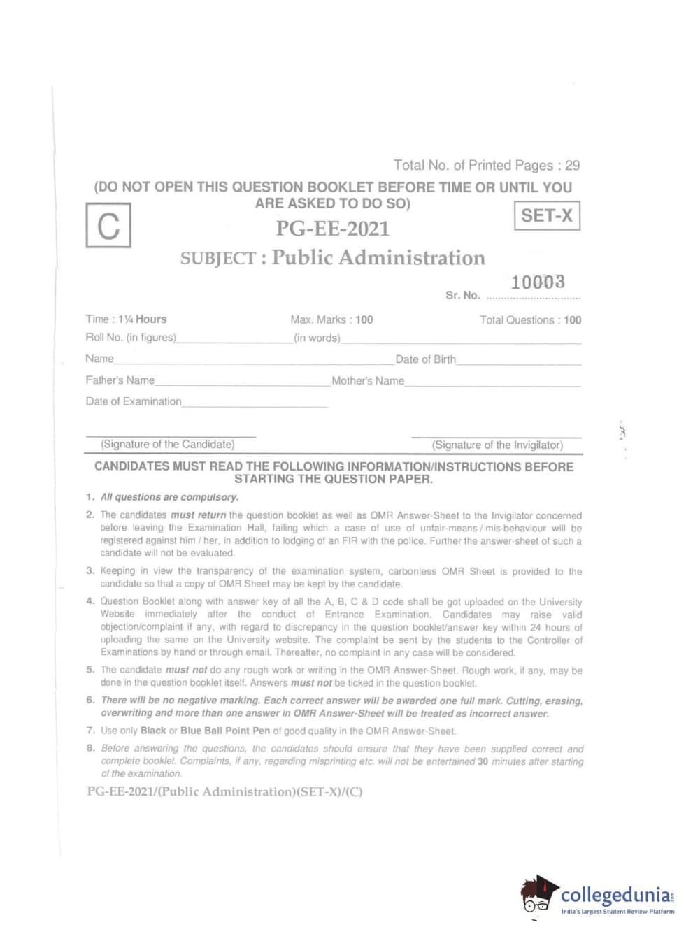 MDUCEE 2021 Public Administration Question paper with answer key pdf conducted on September 21, 2021 is available for download. The exam was successfully organized by Maharishi Dayanand University. The question paper comprised a total of 100 questions.