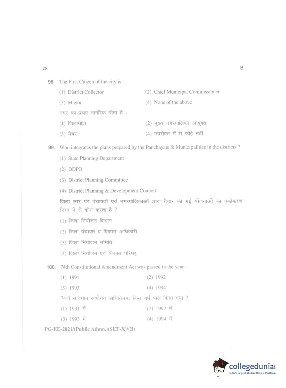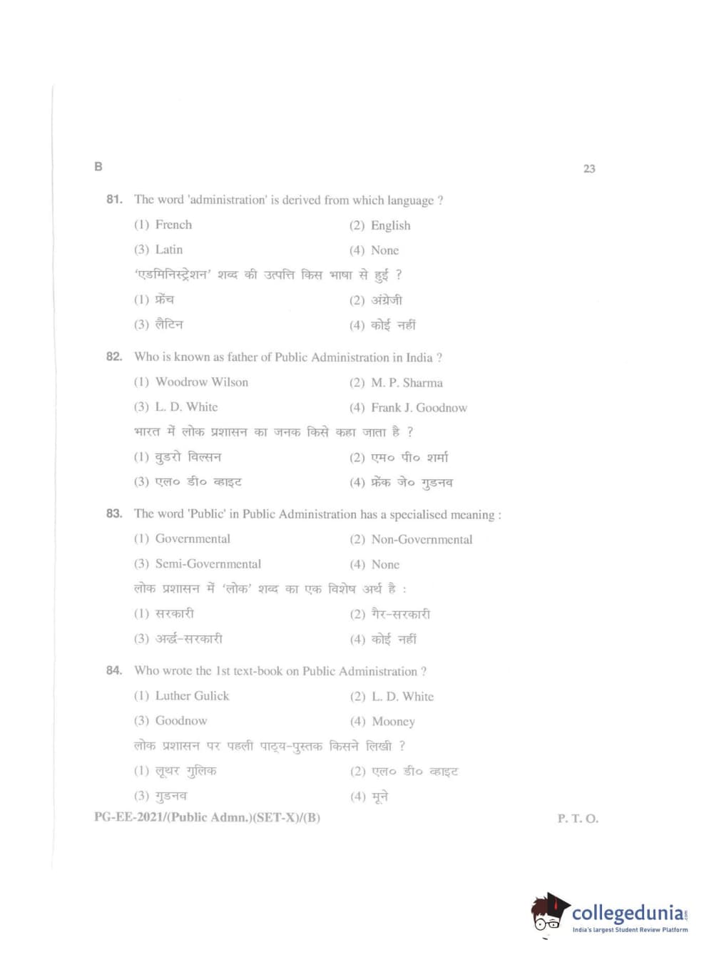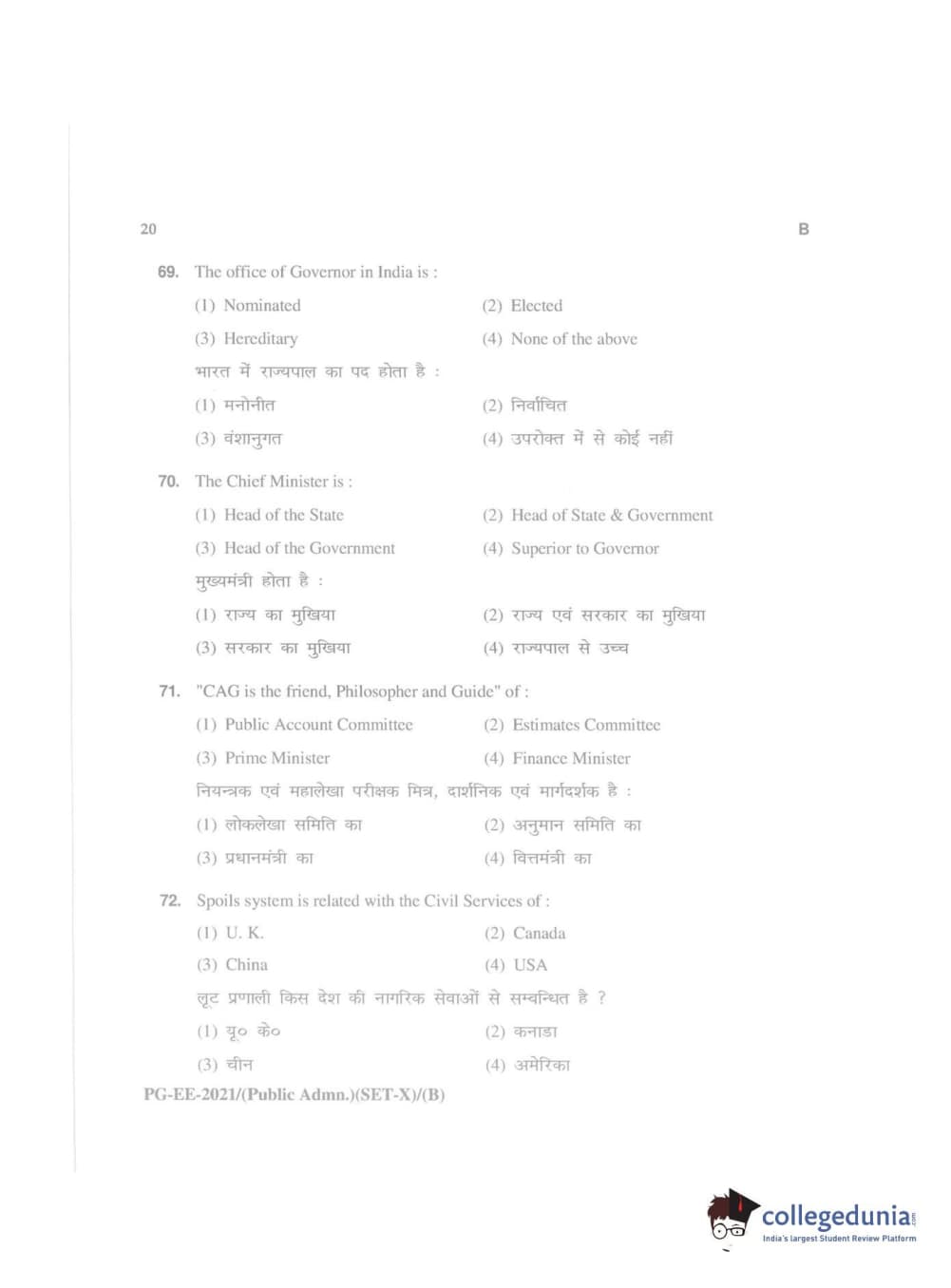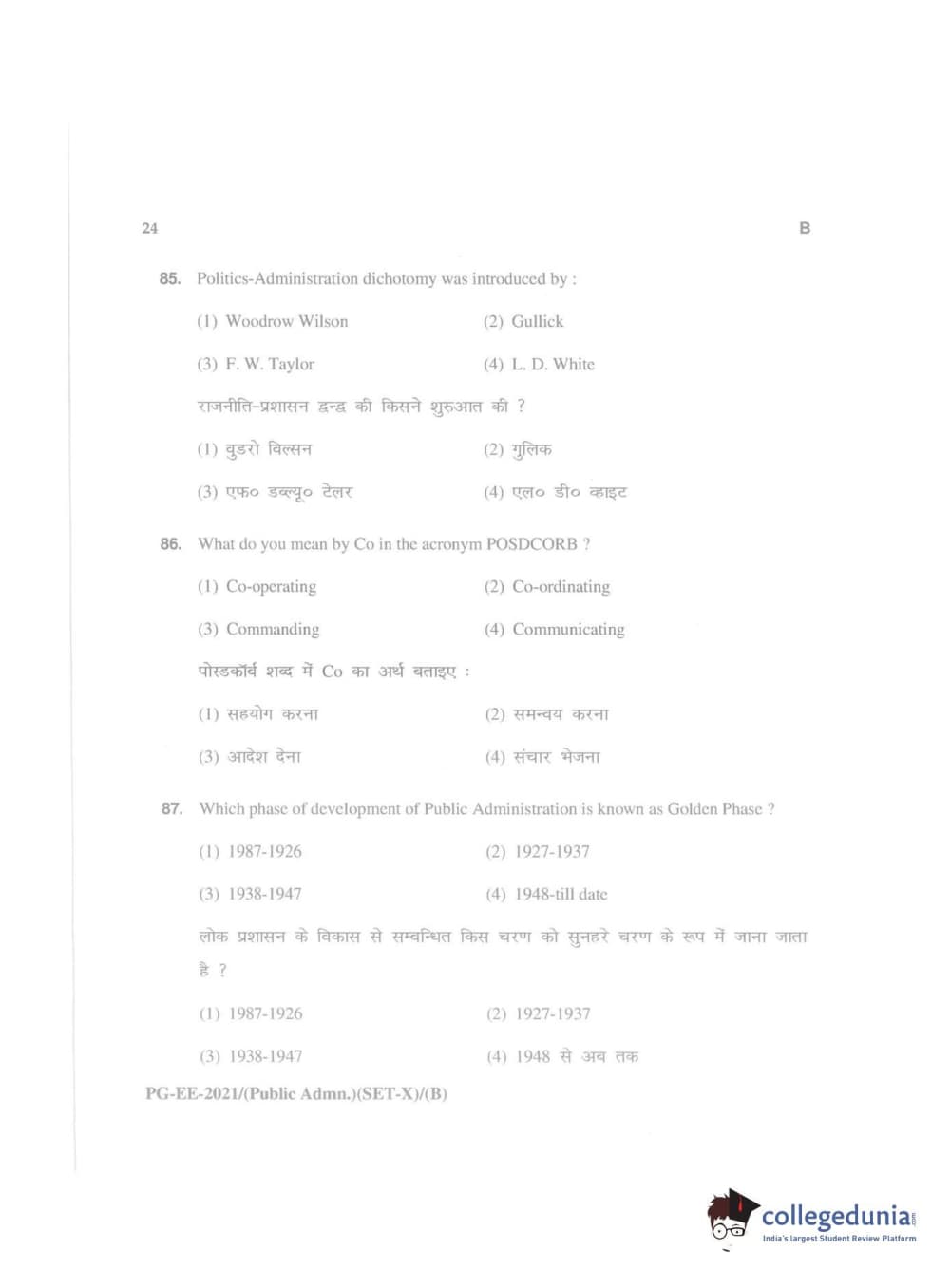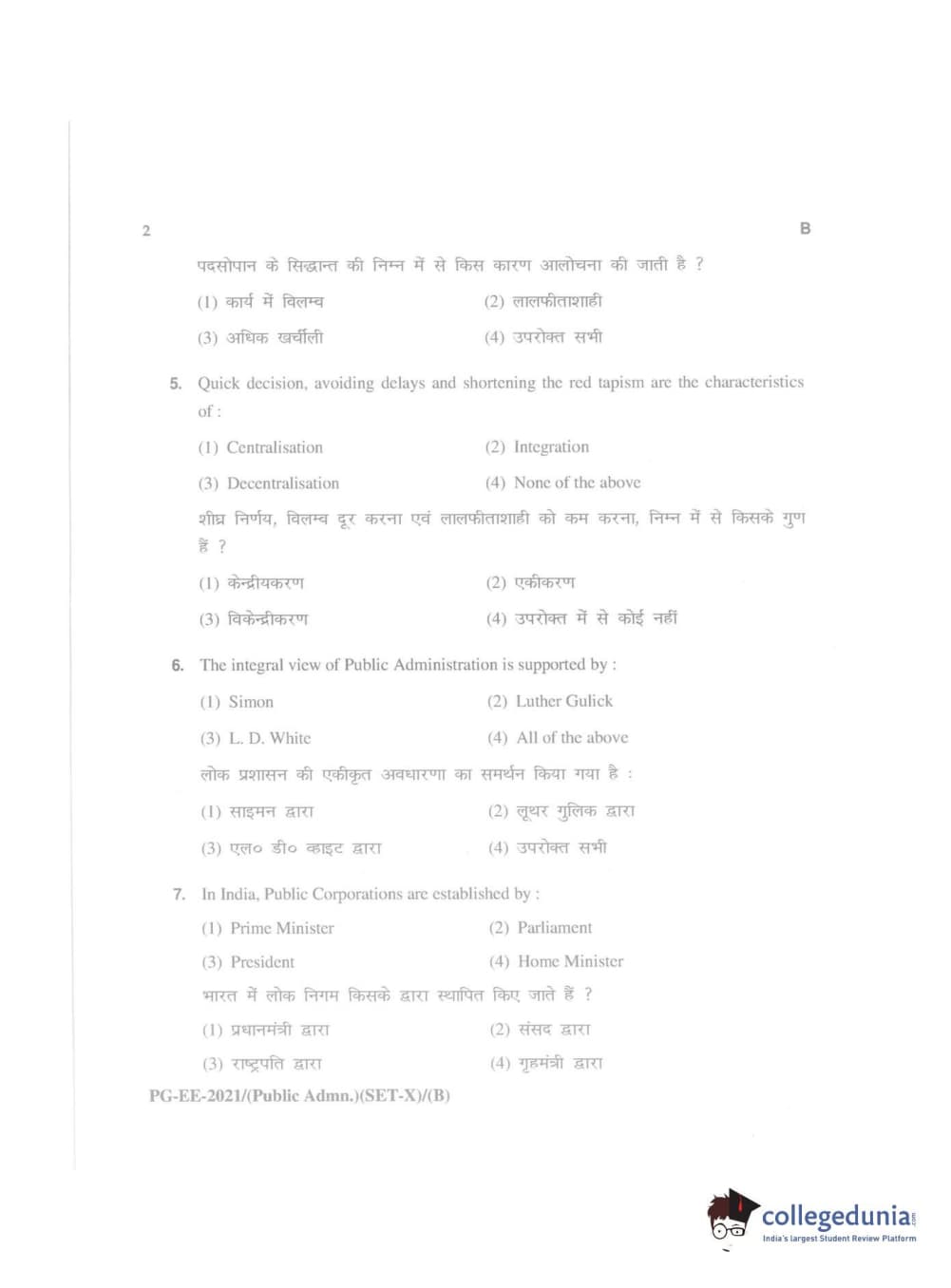 MDUCEE 2021 Public Adminstration Set B Question Paper with Answer Key PDFs
