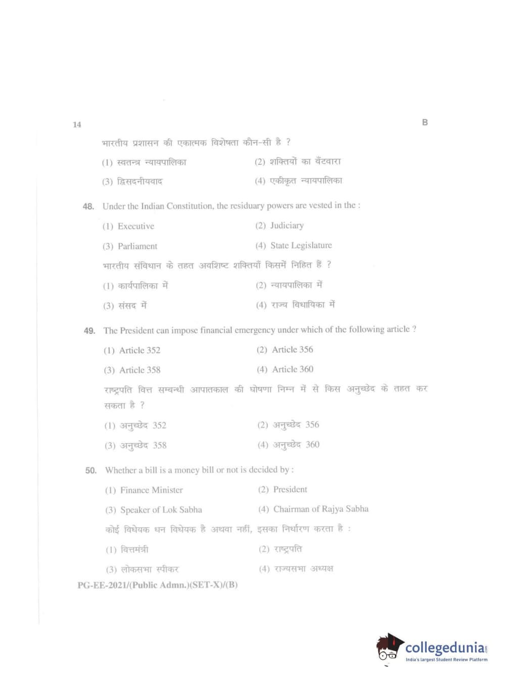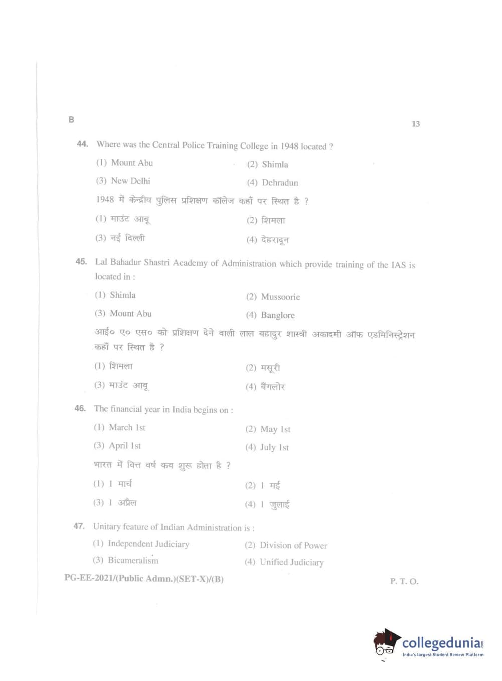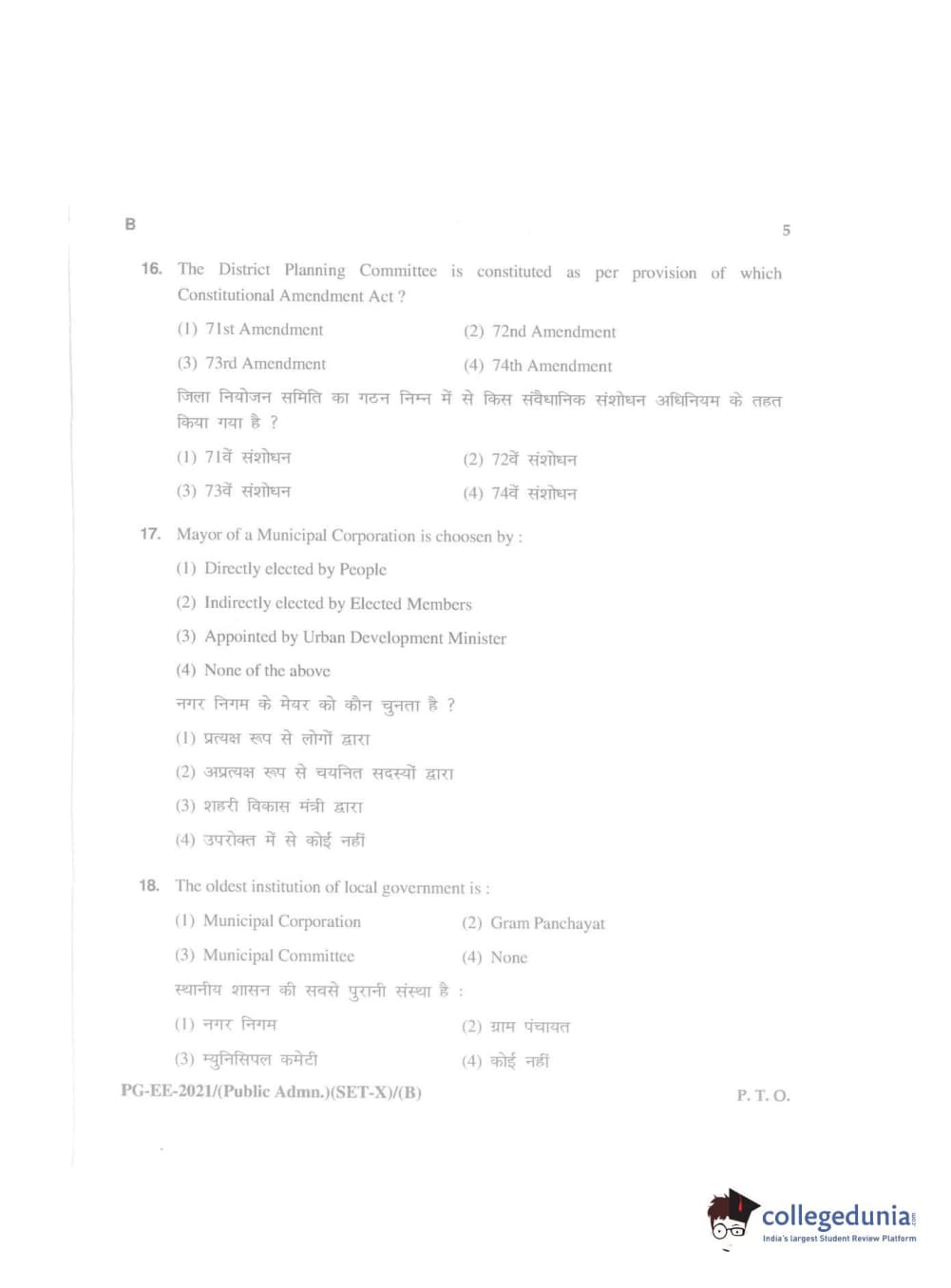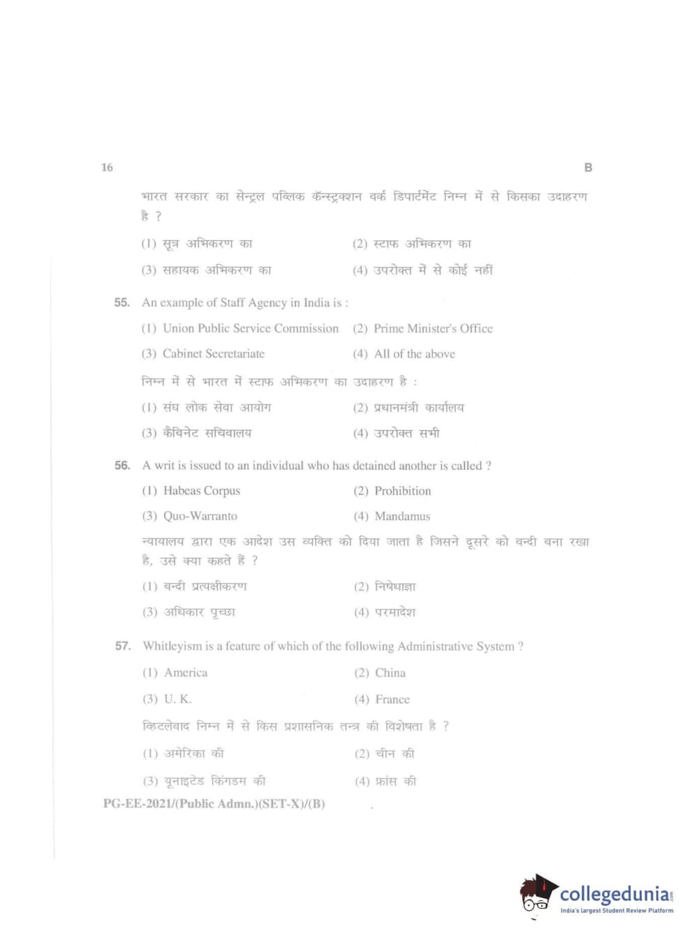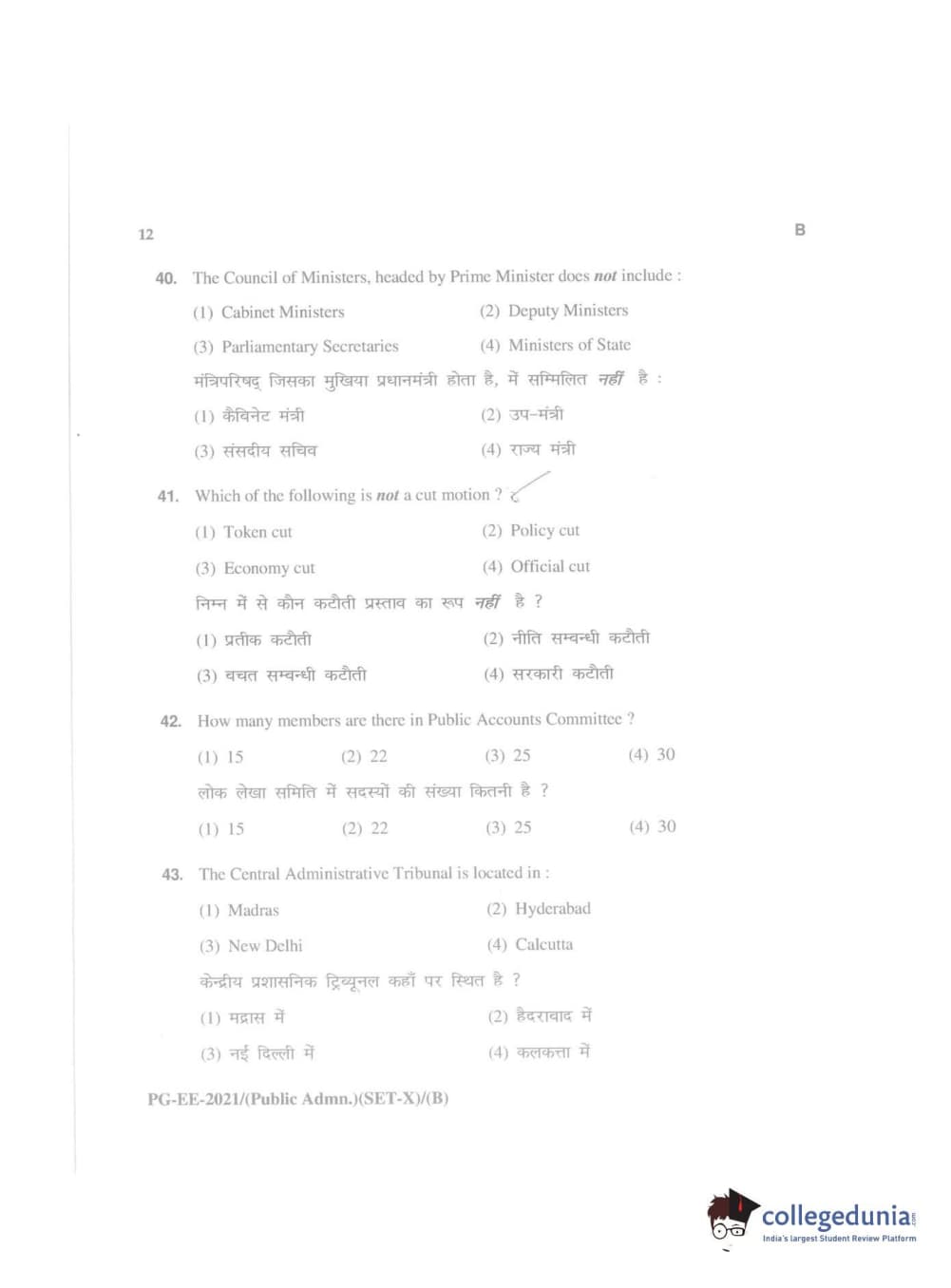 MDUCEE 2021 Public Adminstration Set B Question Paper with Answer Key PDFs