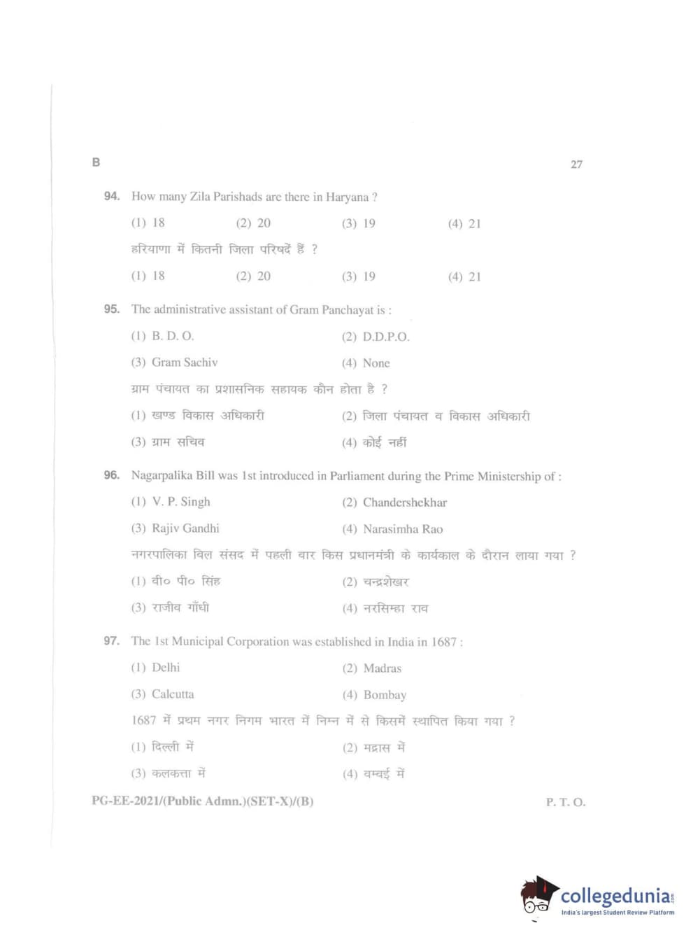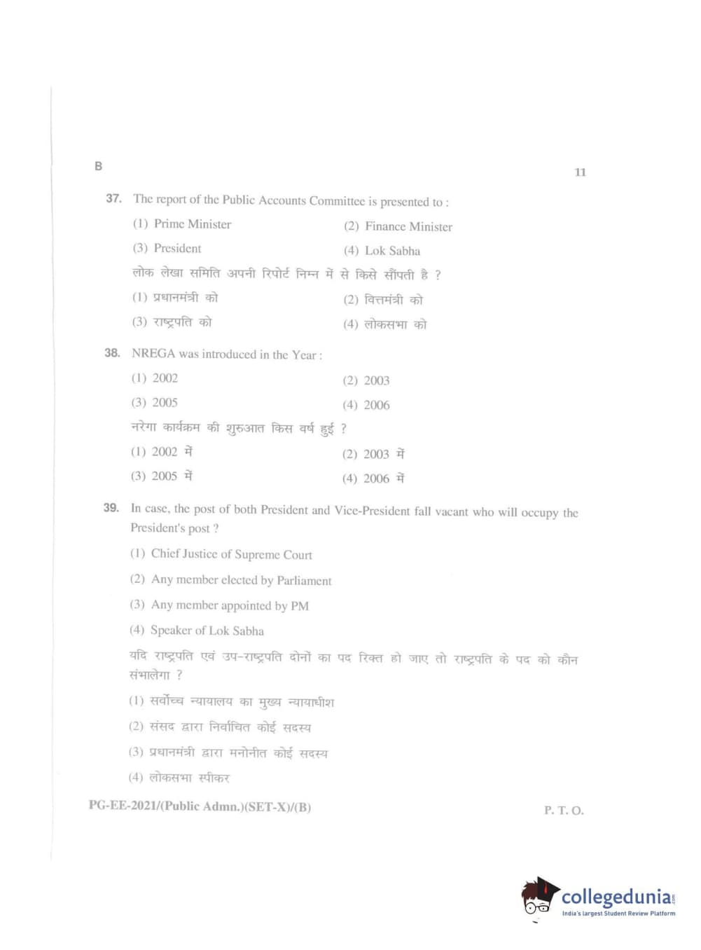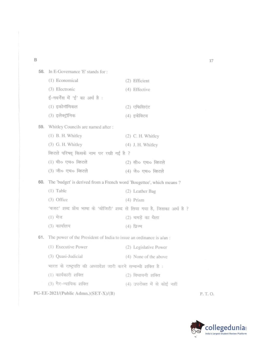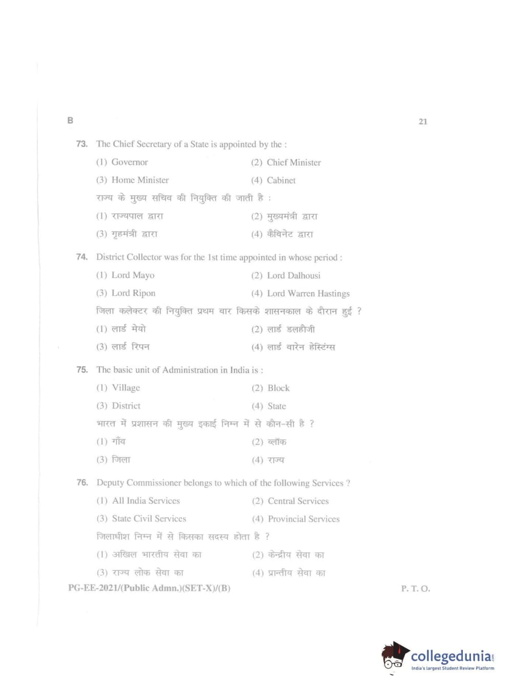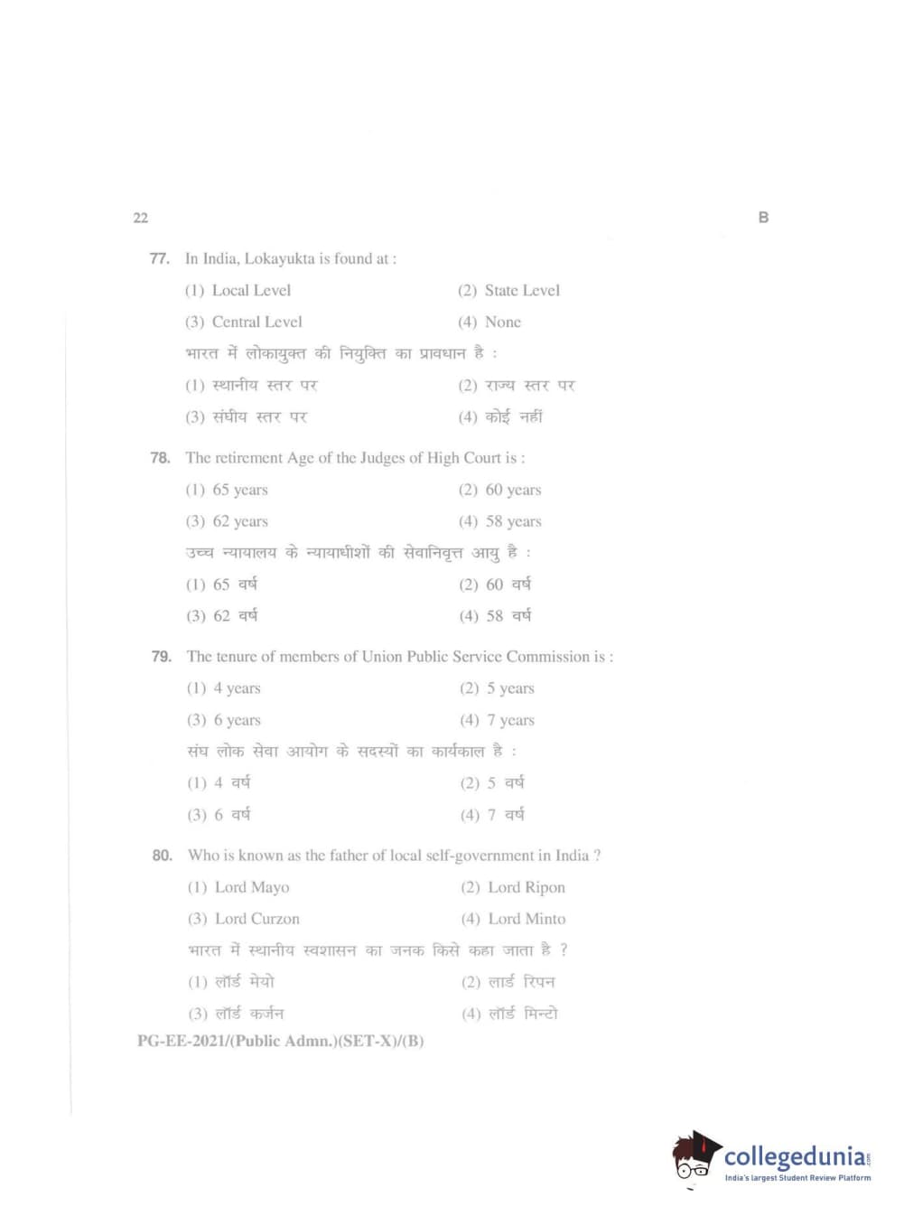 MDUCEE 2021 Public Adminstration Set B Question Paper with Answer Key PDFs