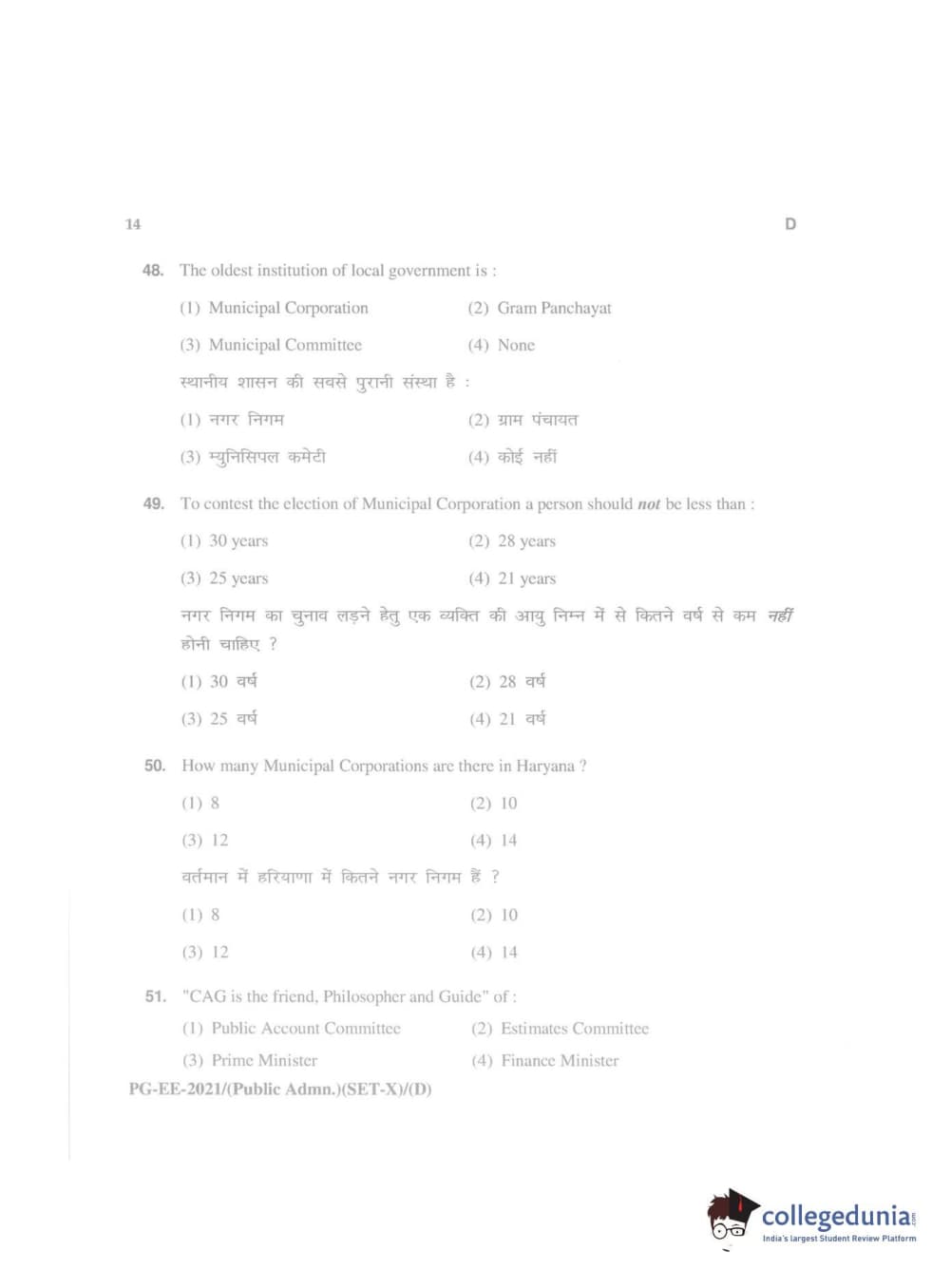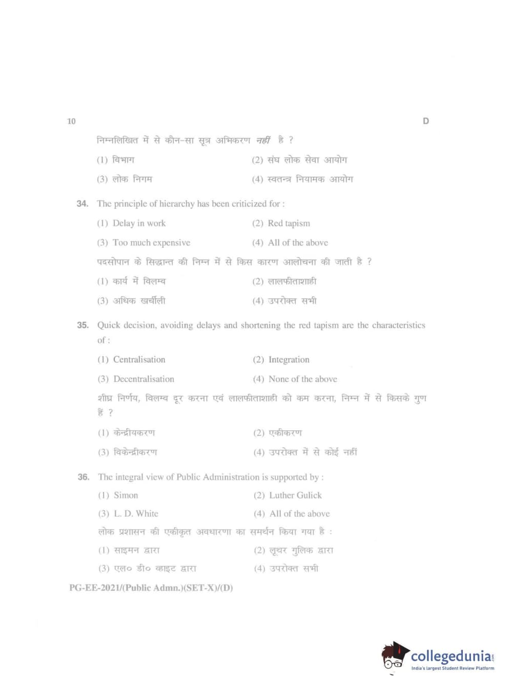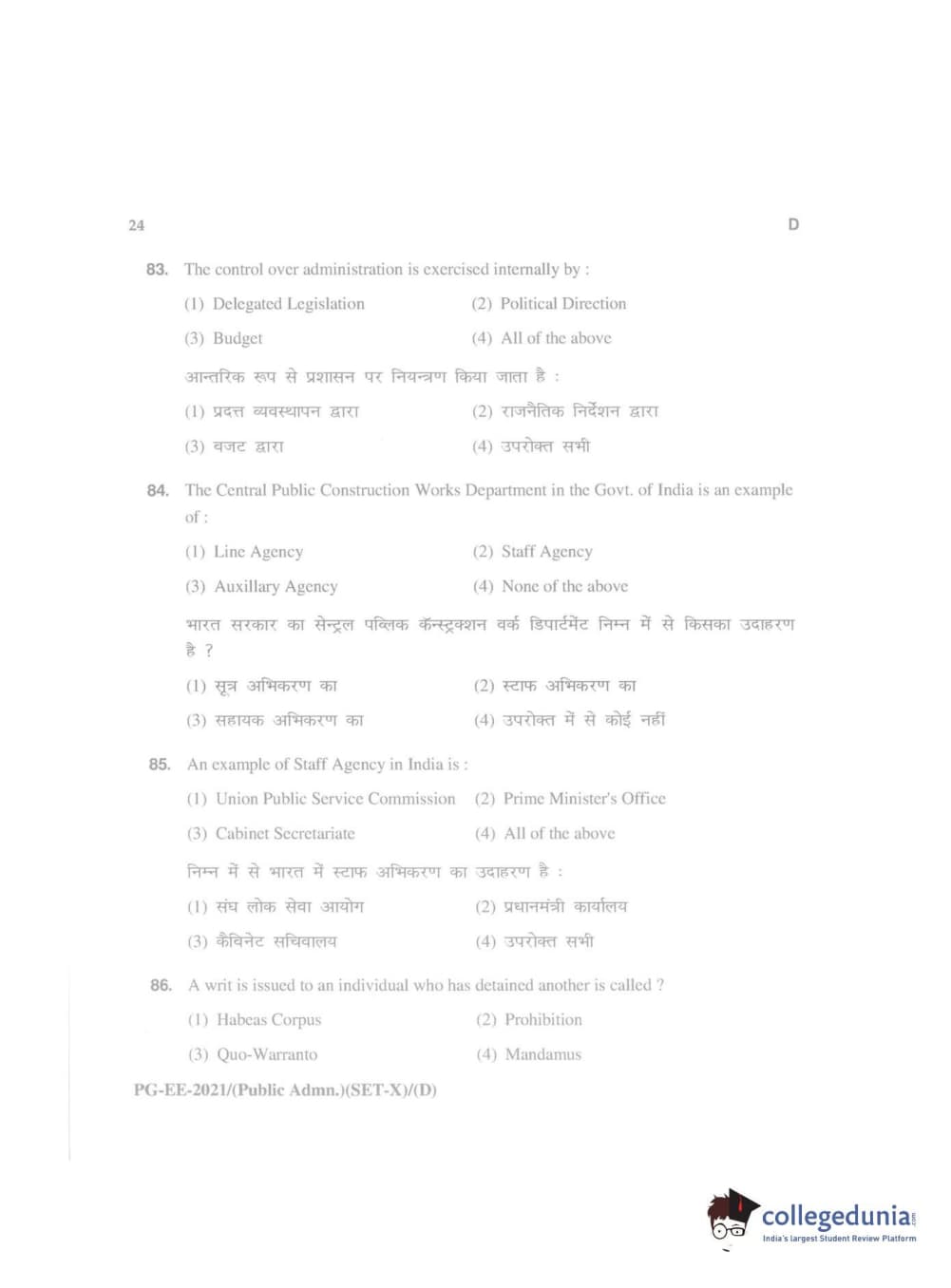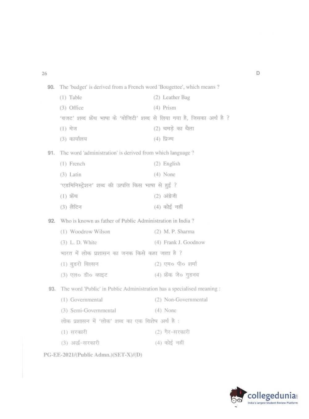 MDUCEE 2021 Public Adminstration Set D Question Paper with Answer Key PDFs