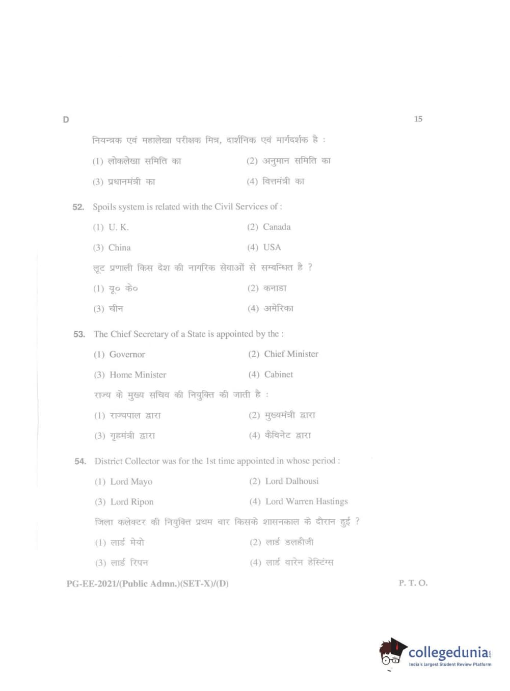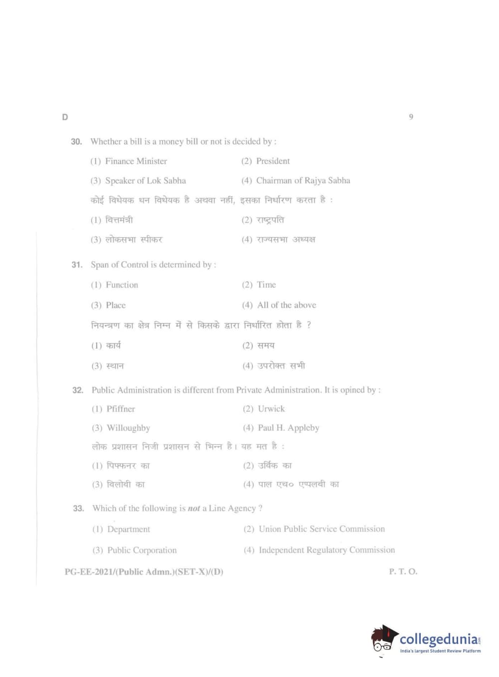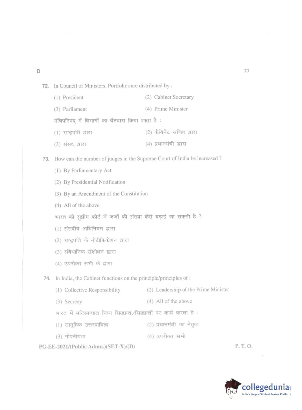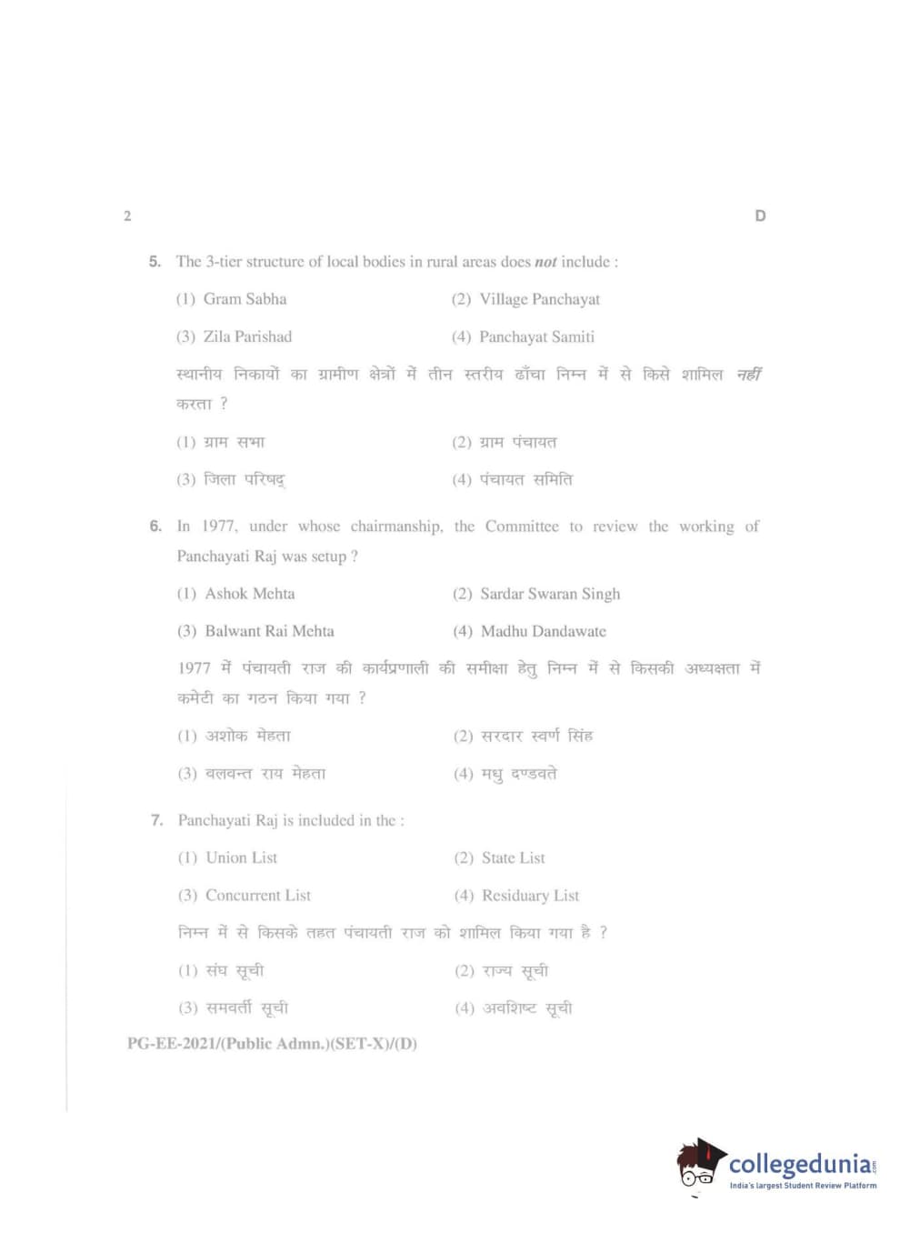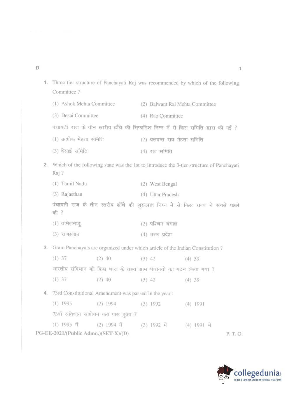 MDUCEE 2021 Public Adminstration Set D Question Paper with Answer Key PDFs