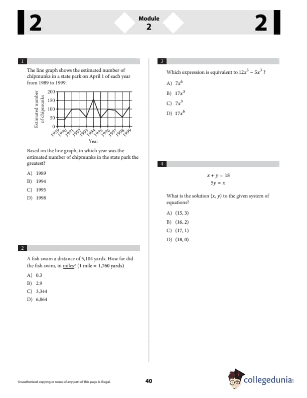 SAT 2024 Practice Test – 4 PDF is available for download. SAT 2024 is conducted 7 times in a year. This full-length SAT Practice Test offers an accurate simulation of the test. There is no negative marking, this practice test helps you improve your performance, manage time efficiently, and familiarize yourself with the SAT Question Paper. It has a total time of 3 hours with 120 questions and is categorized into Reading, Writing and Language, and Maths.