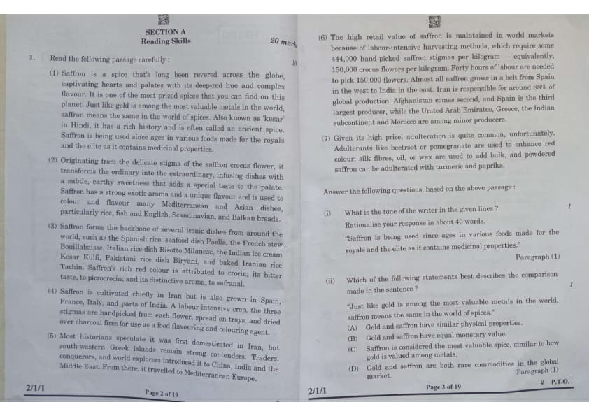 viii. Support the writer’s view with evidence from the text that saffron is often adulterated.