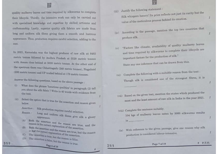 ix. With reference to the given passage, give one reason why silk production is considered labour-intensive.