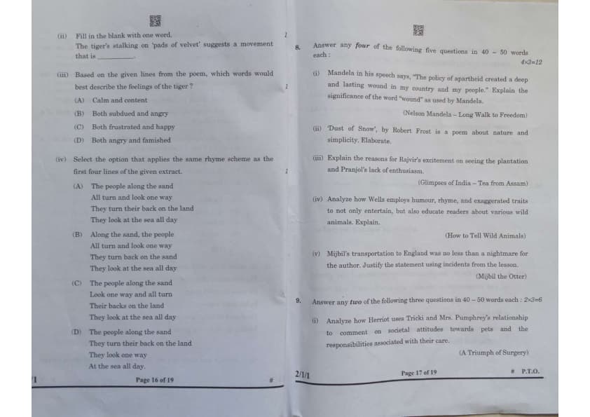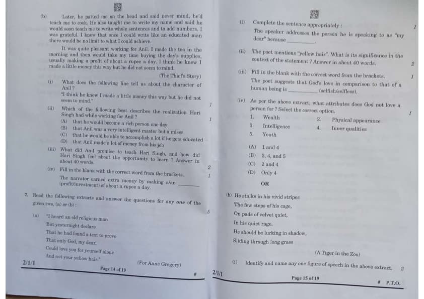 7. (b). Read the following extract and answer the questions: