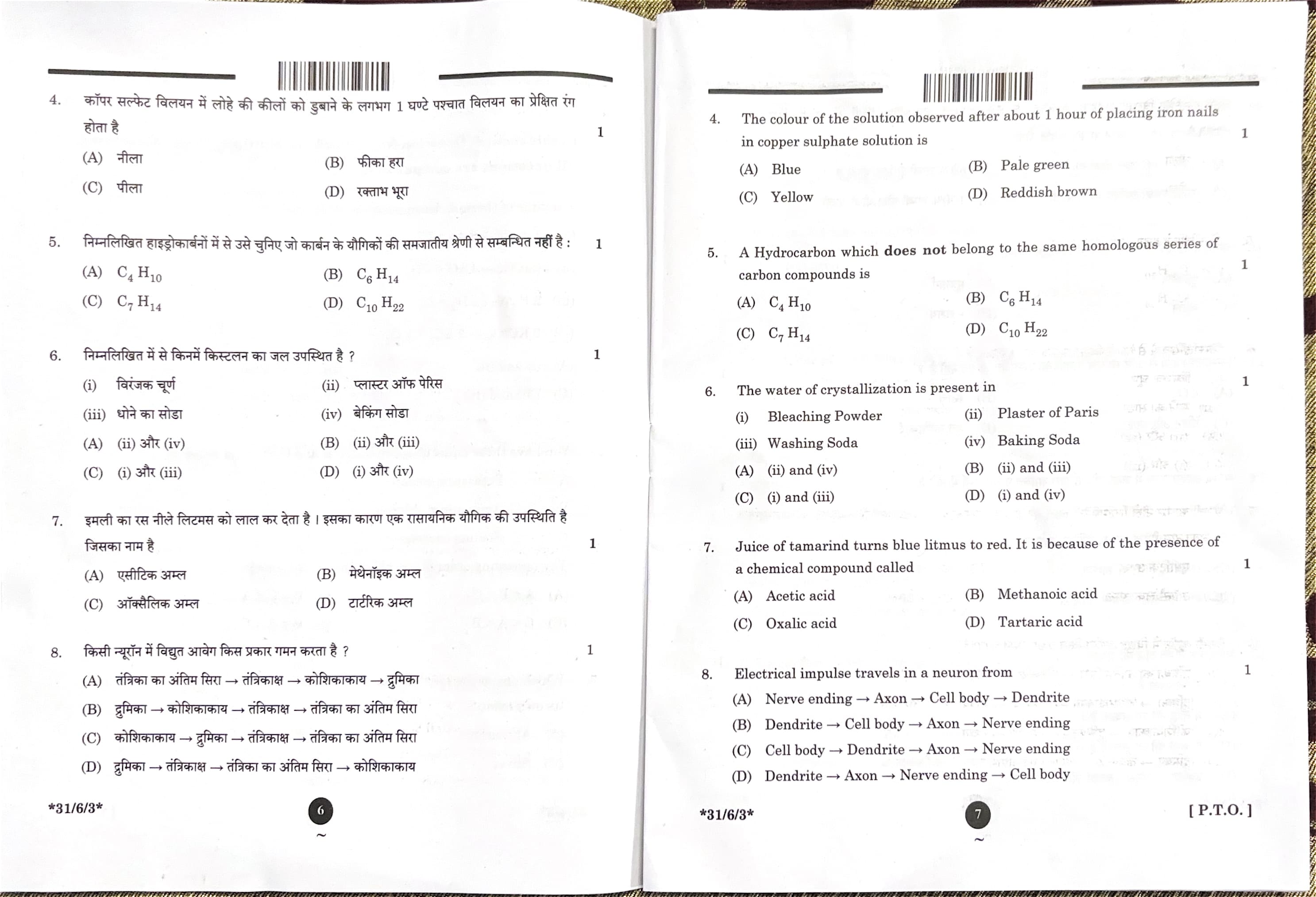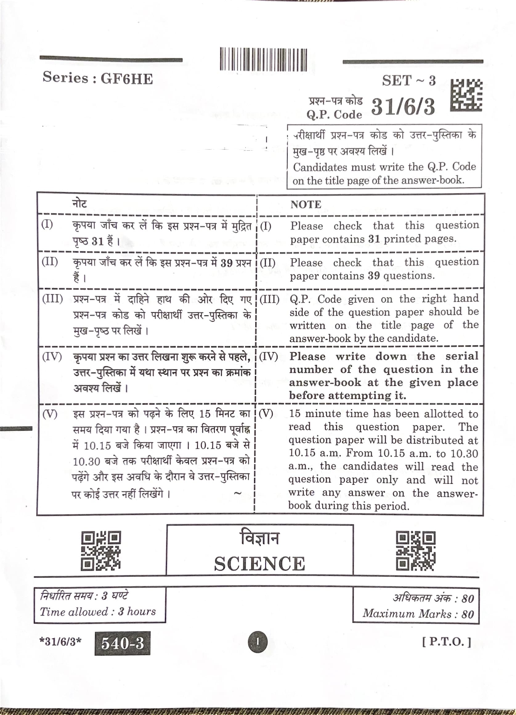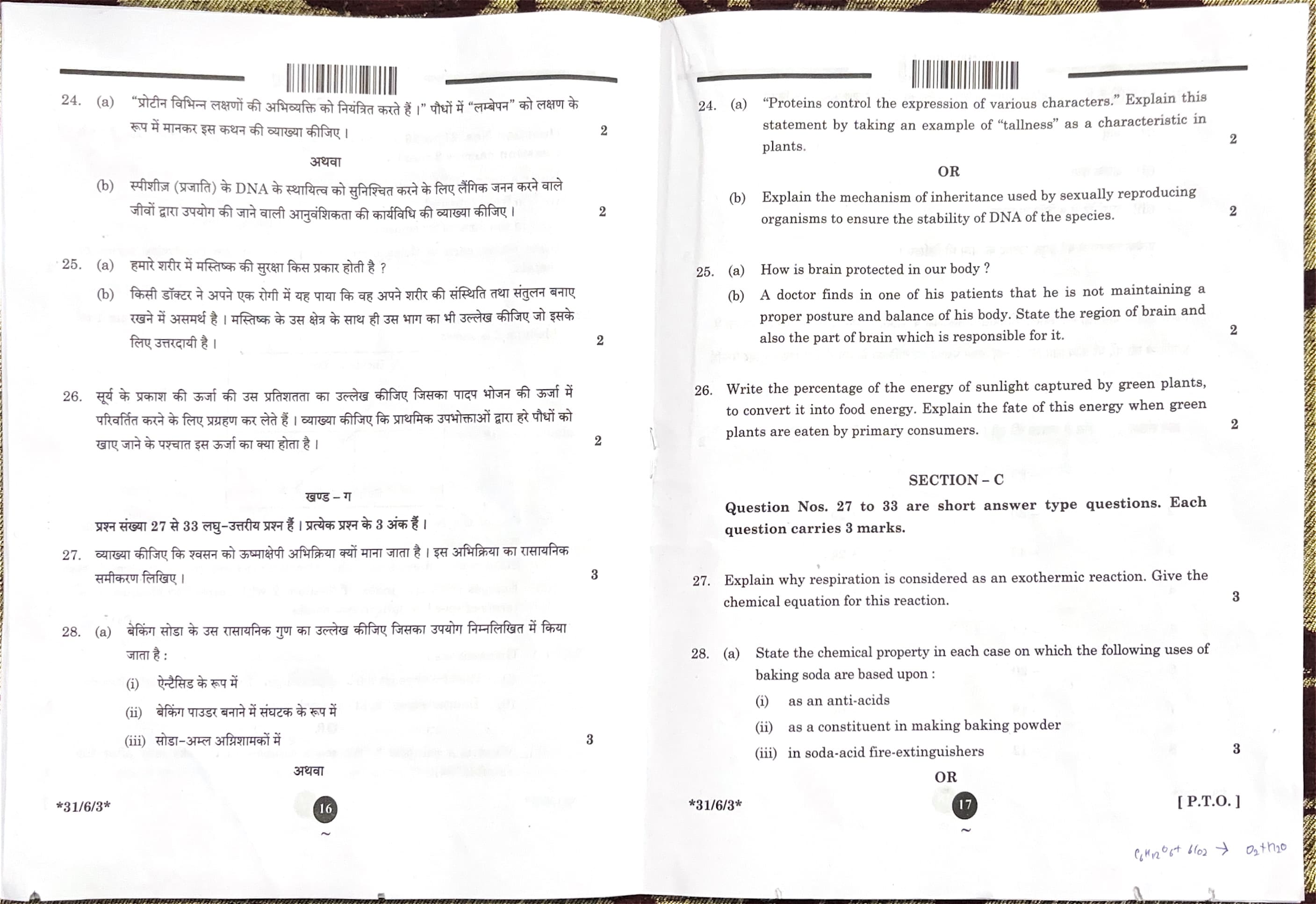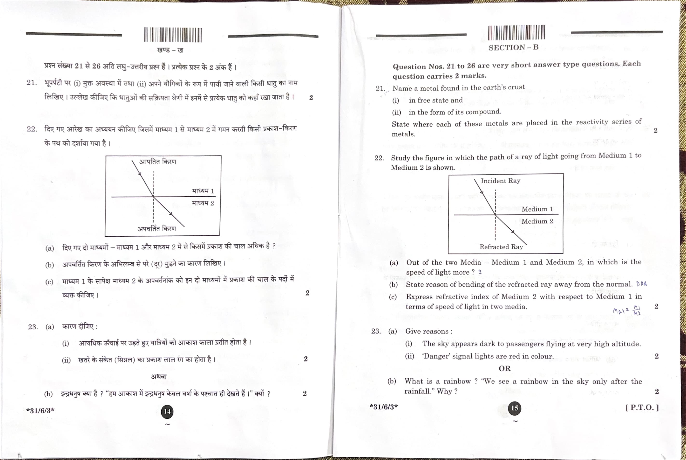CBSE Board Class 10 Science Question Paper 2025 Set 3 (31-6-3) with Solutions