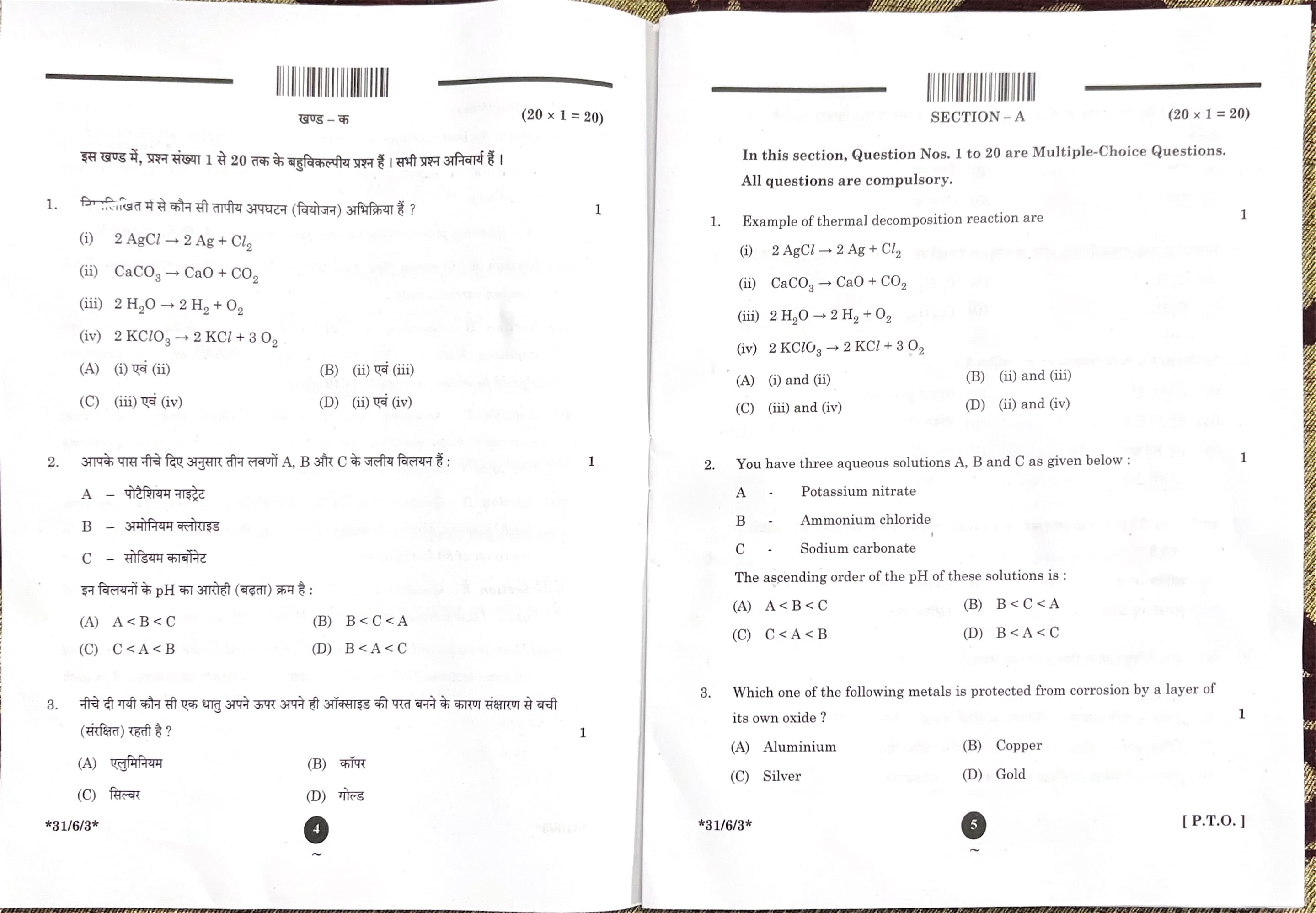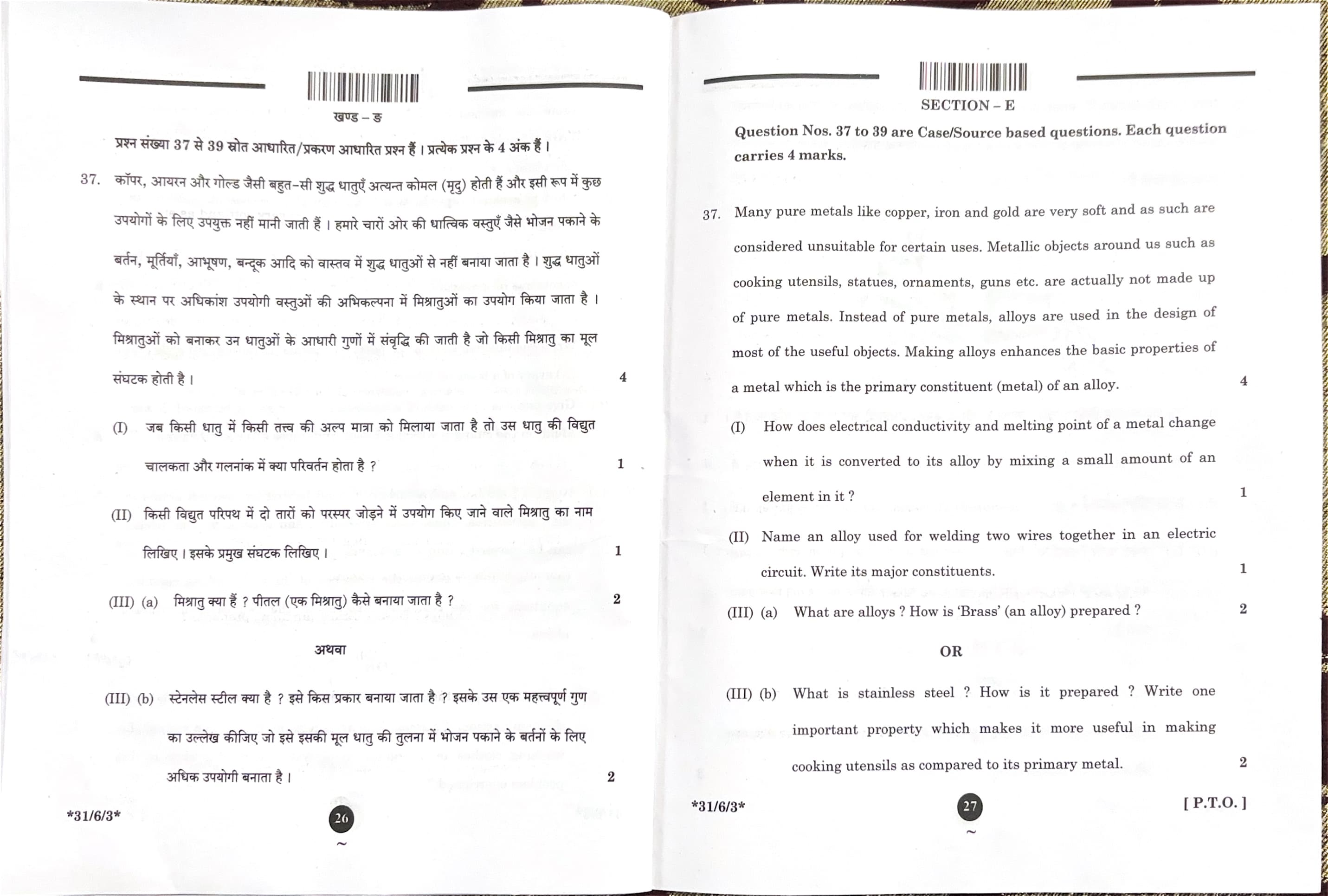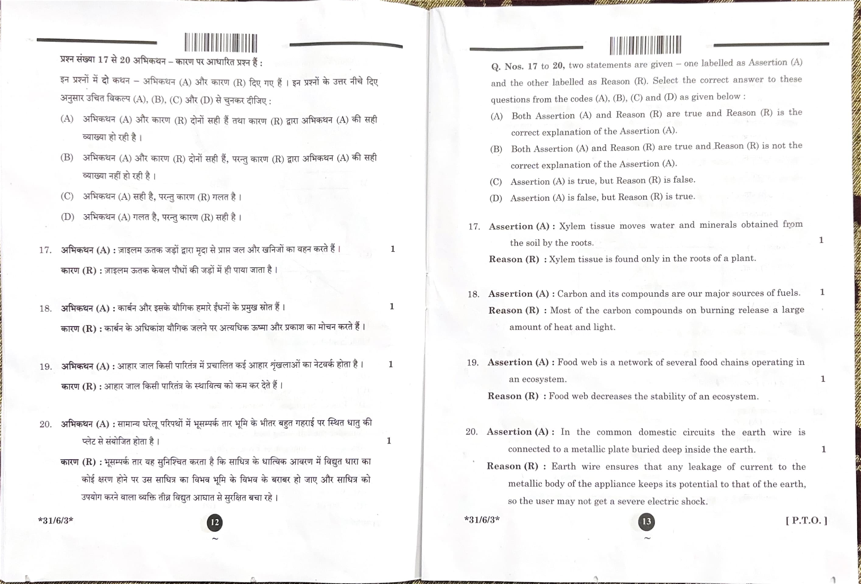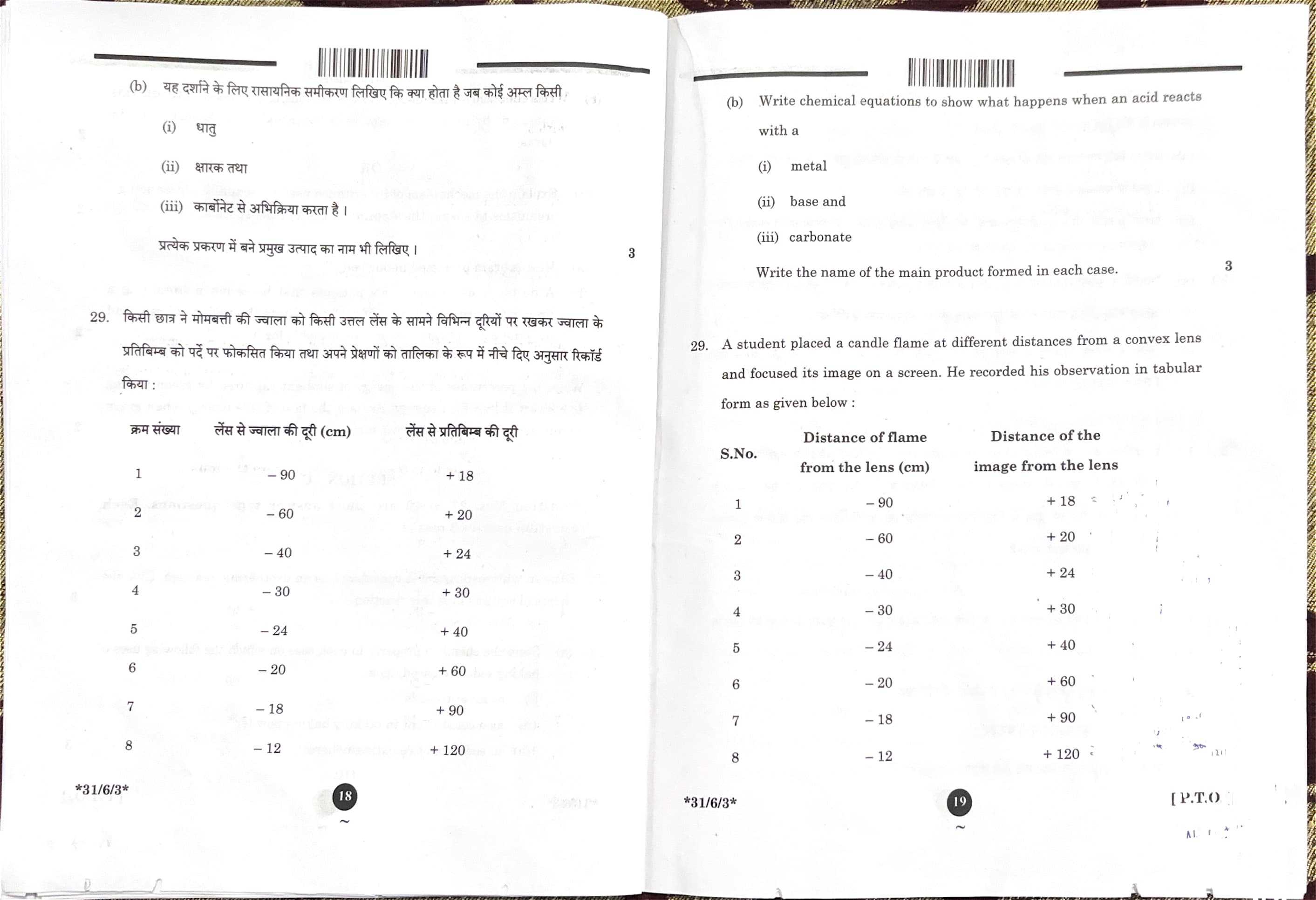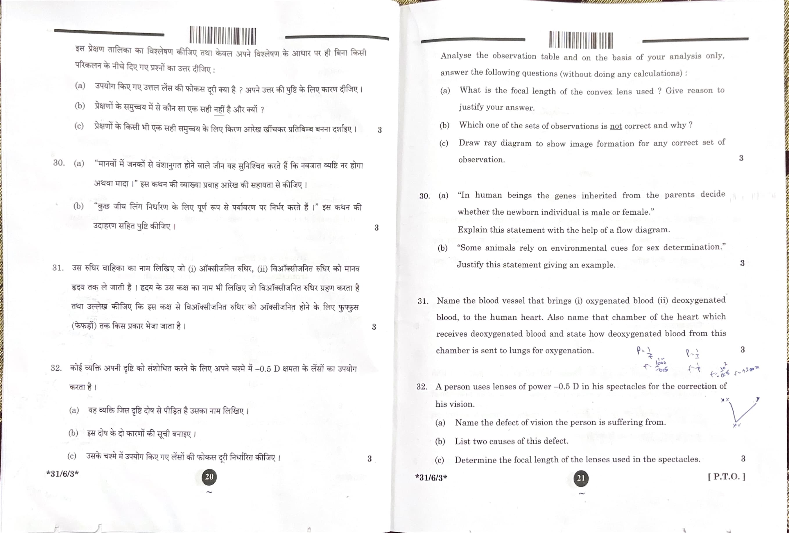 CBSE Board Class 10 Science Question Paper 2025 Set 3 (31-6-3) with Solutions