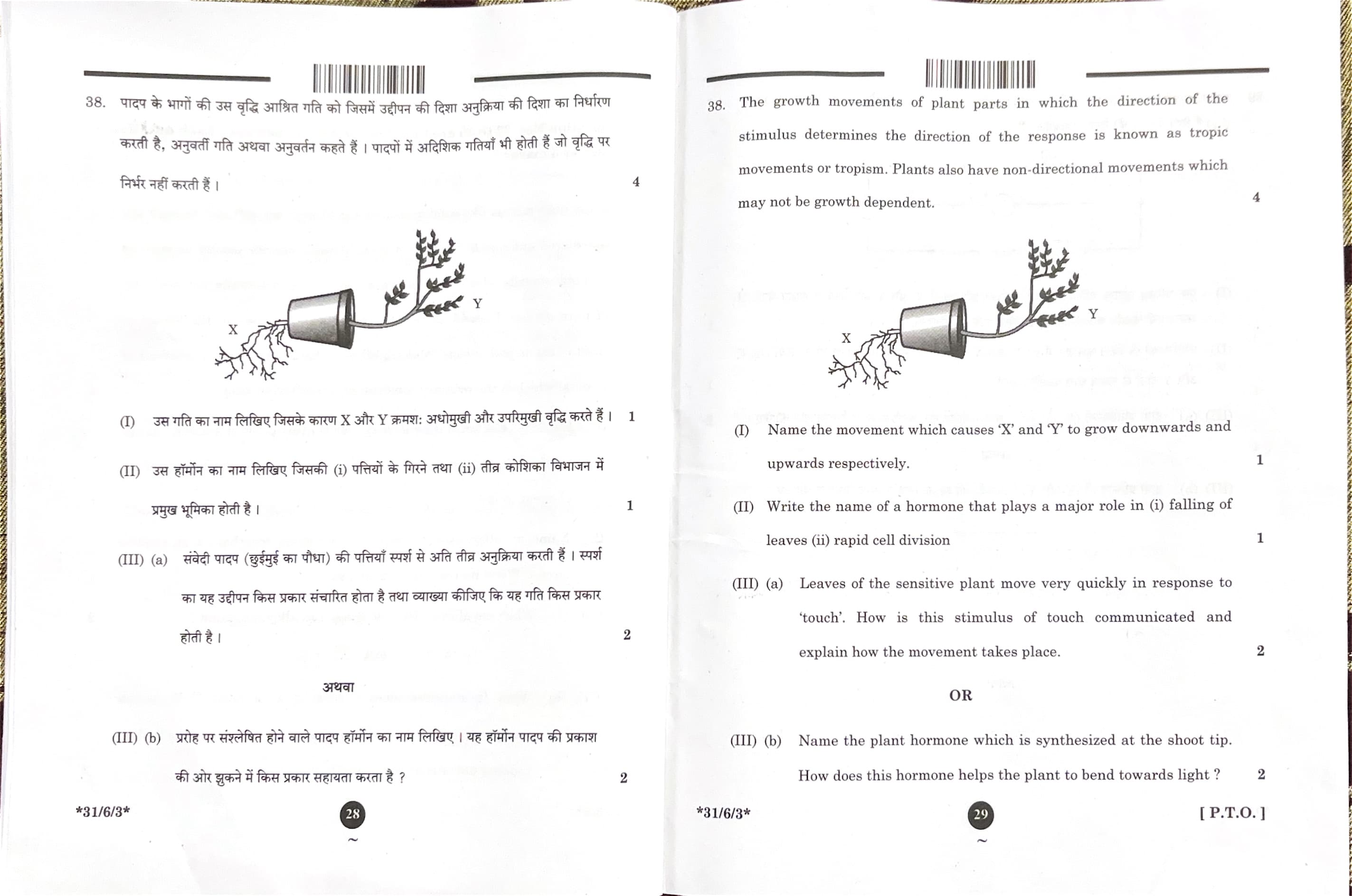 (I) Name the movement which causes 'X' and 'Y' to grow downwards and upwards respectively.