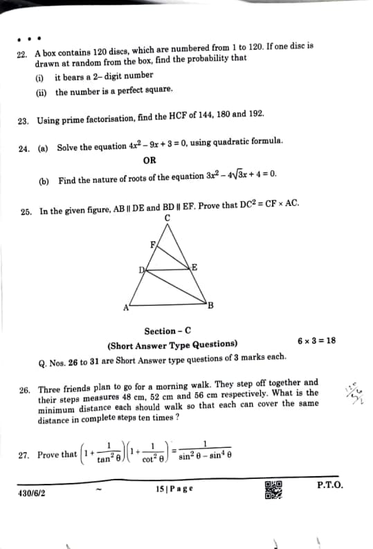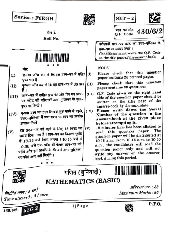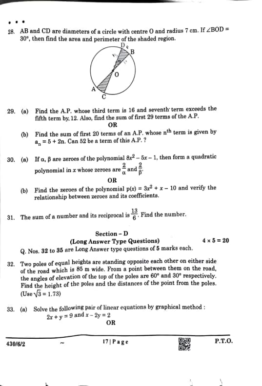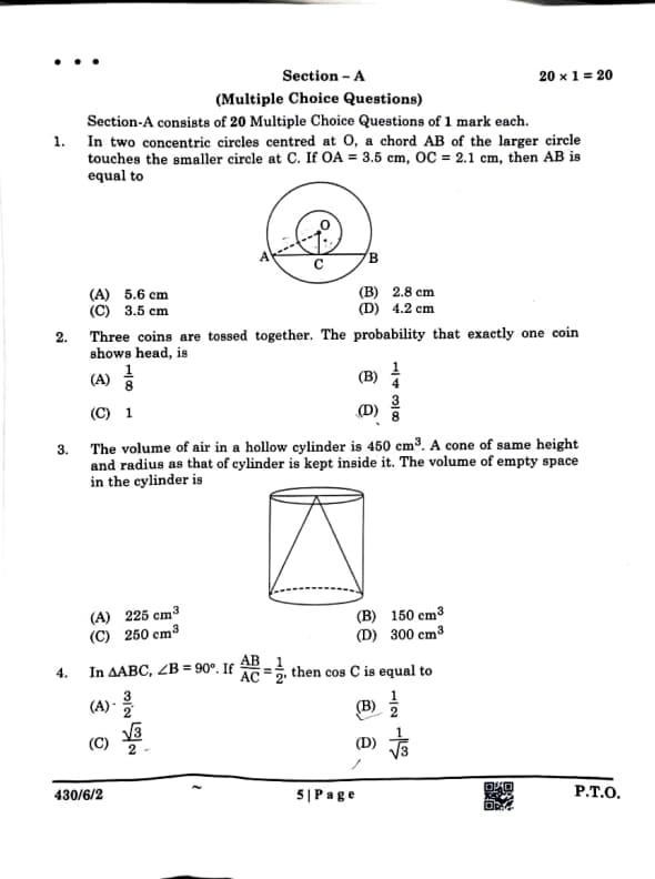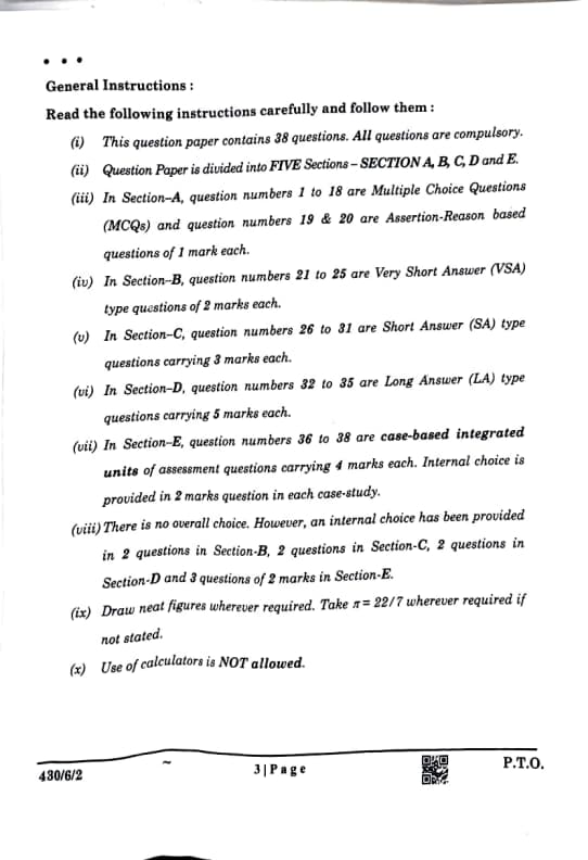 | CBSE Class 10 2025 Mathematics Question Paper with Answer Key | Check Solution |