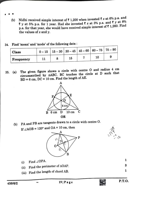 (b) Nidhi received simple interest of \(\‚¹\) 1,200 when invested \(\‚¹\) x at 6% p.a. and \(\‚¹\) y at 5% p.a. for 1 year. Had she invested \(\‚¹\) x at 3% p.a. and \(\‚¹\) y at 8% p.a. for that year, she would have received simple interest of \(\‚¹\) 1,260. Find the values of x and y.