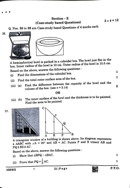 Q. Nos. 36 to 38 are Case-study based Questions of 4 marks each.
