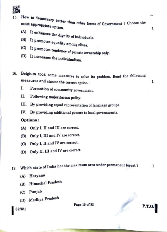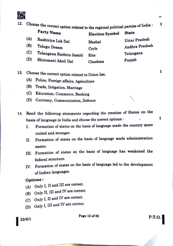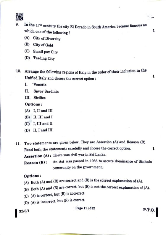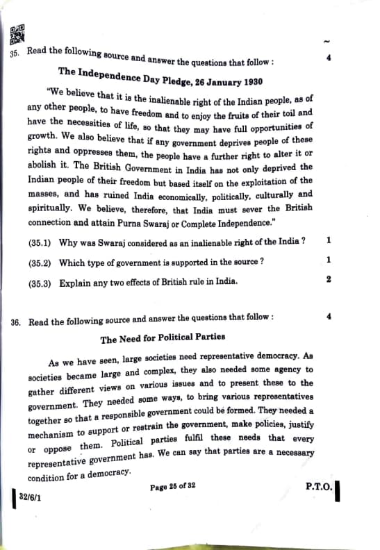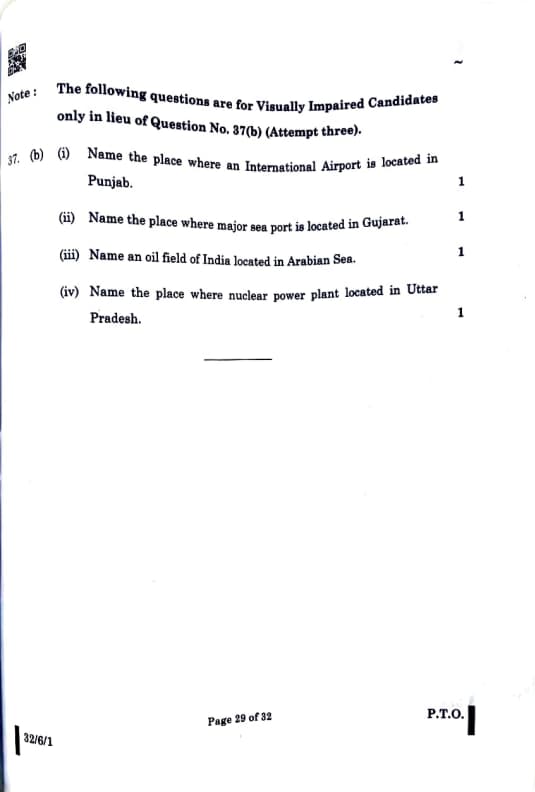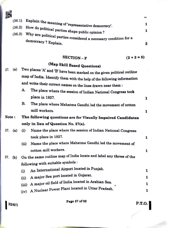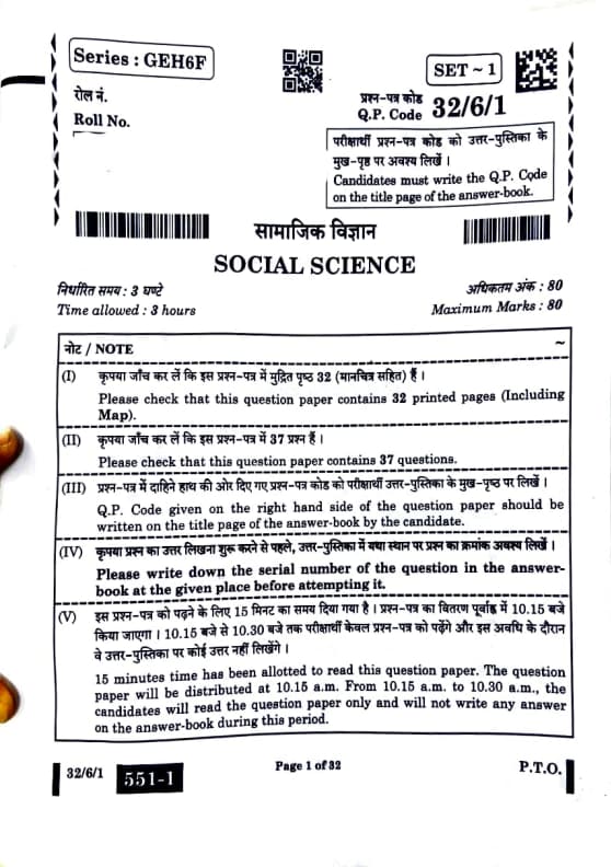 CBSE Class 10 2025 Social Science Question Paper Set-1 (32/6/1) With Solution PDF