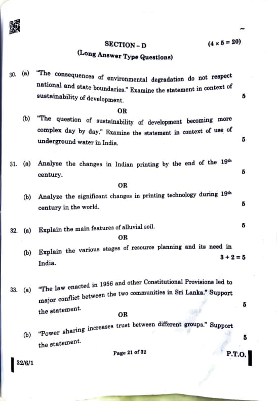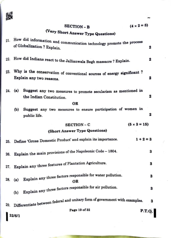 | CBSE Class 10 Social Science Question Paper With Answer Key | Check Solution |