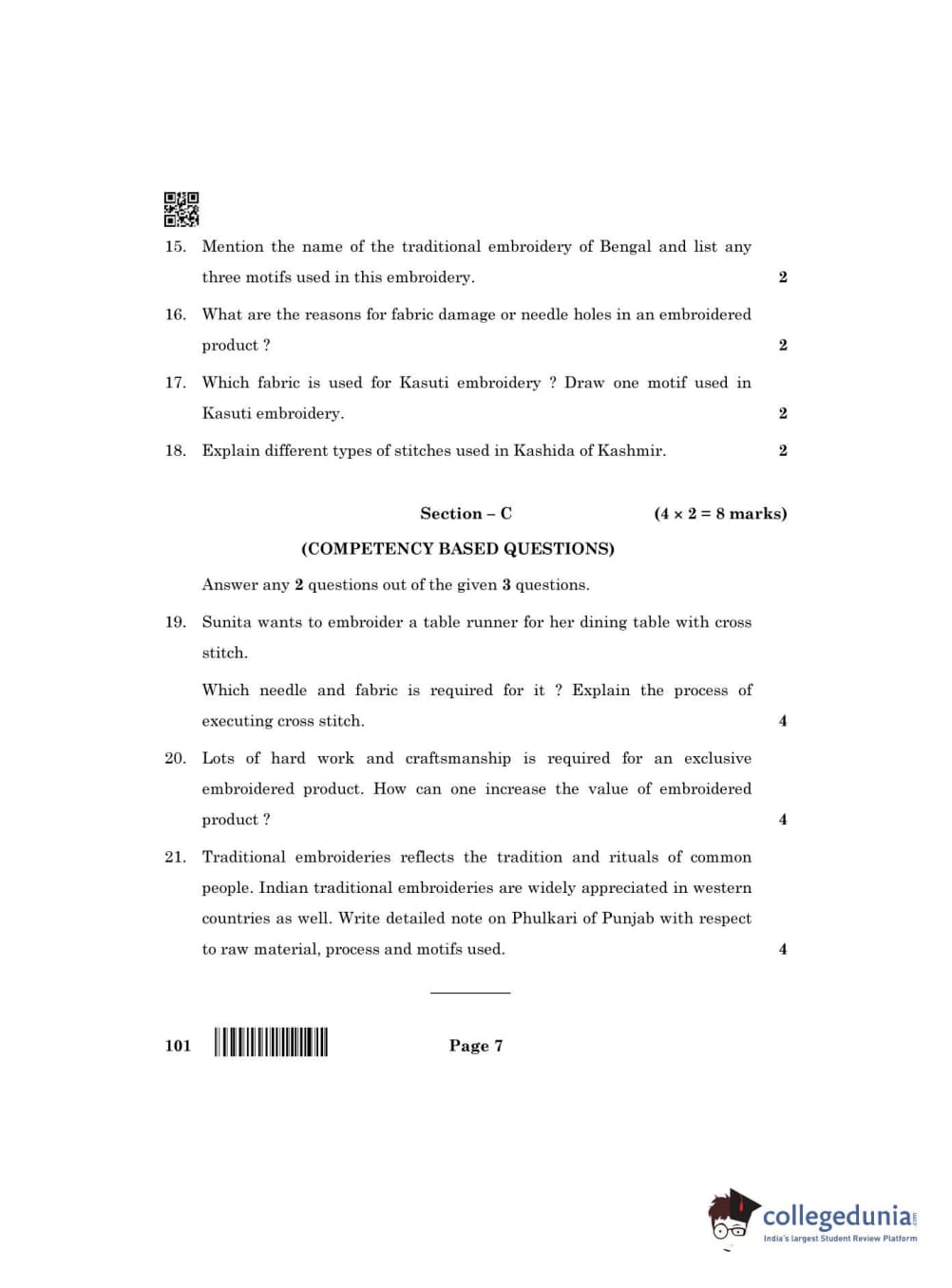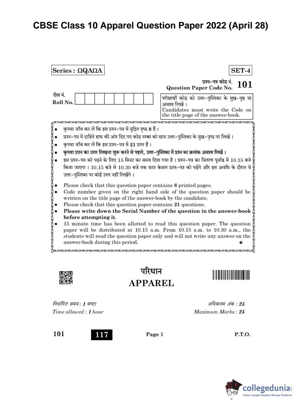 CBSE Class 10 Apparel Question Paper 2022 with Answer Key (April 28)