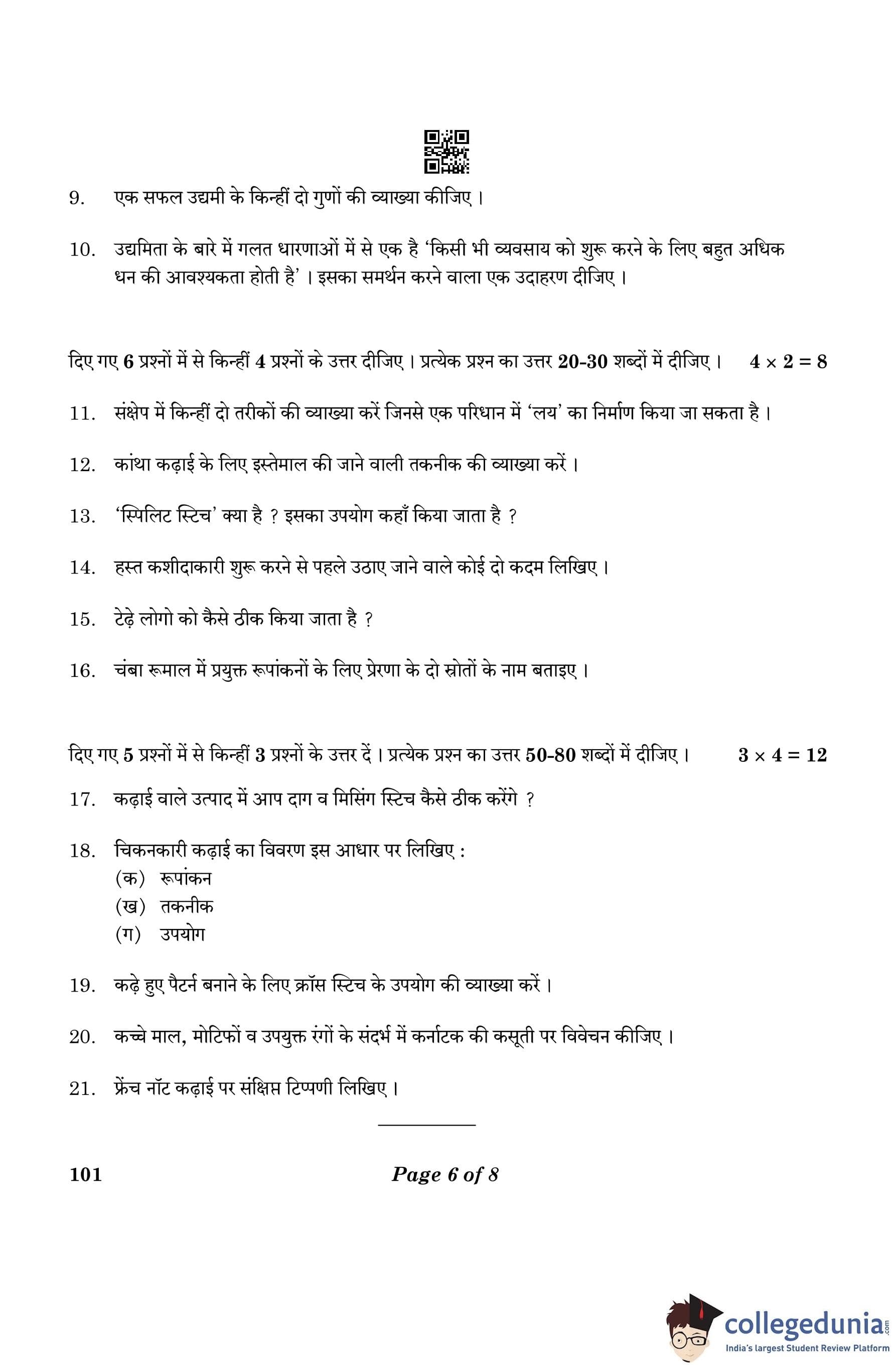 CBSE Class 10 Apparel Question Paper 2023 with Answer Key