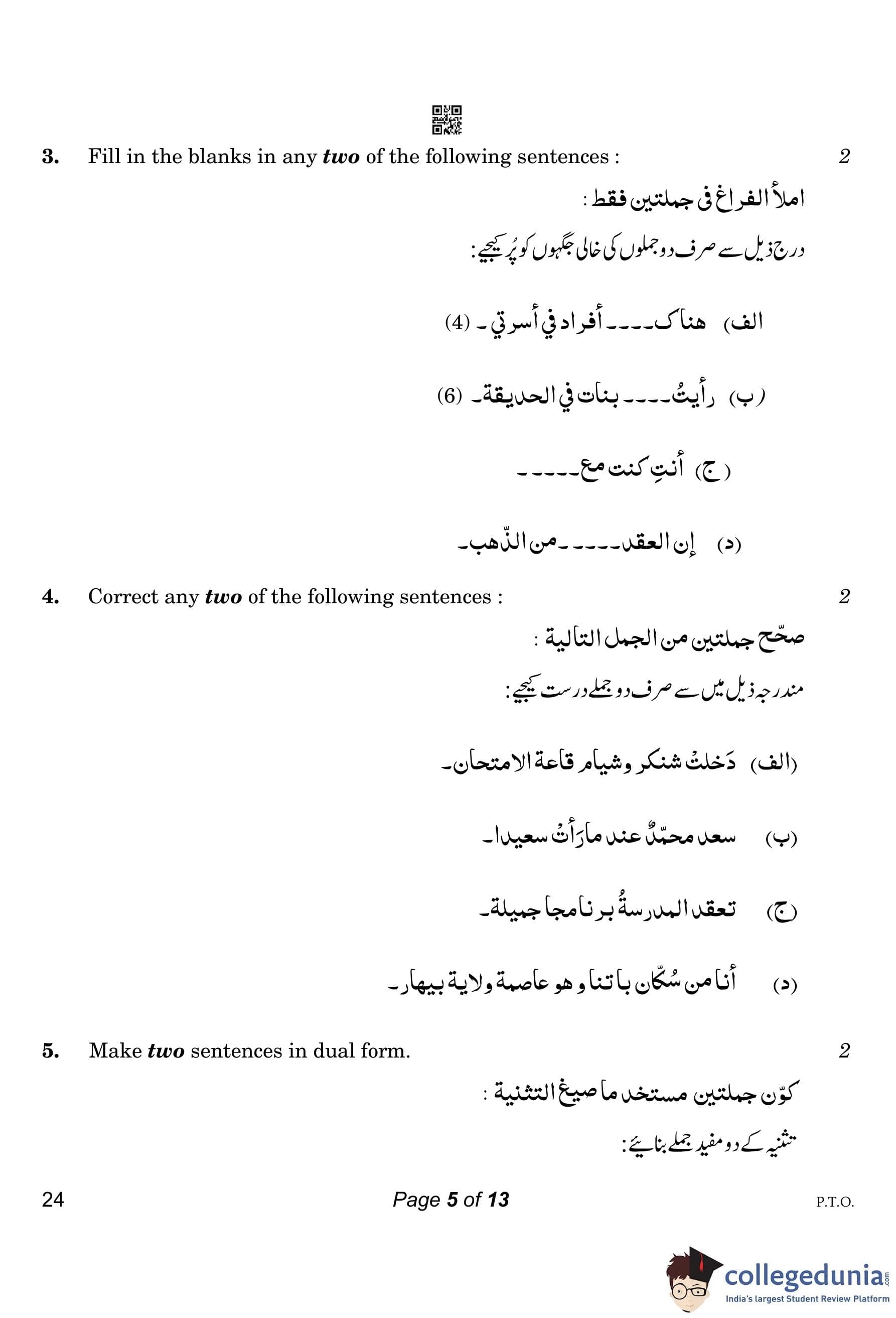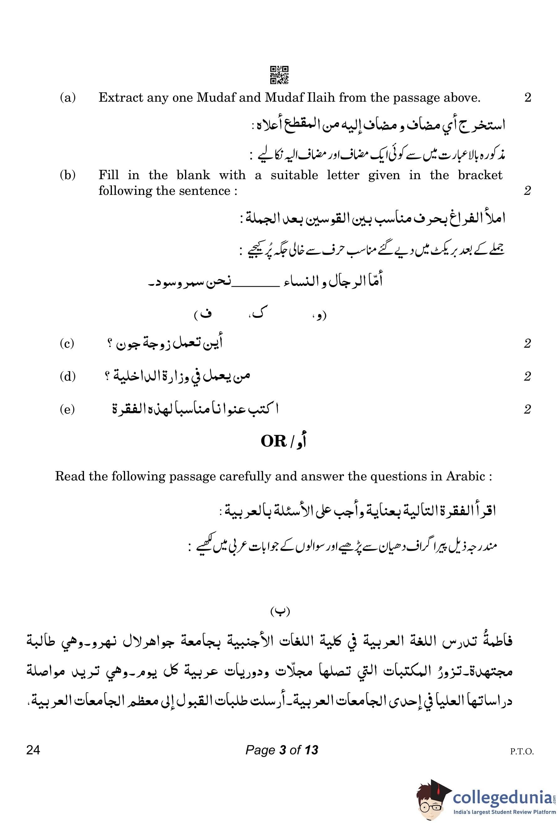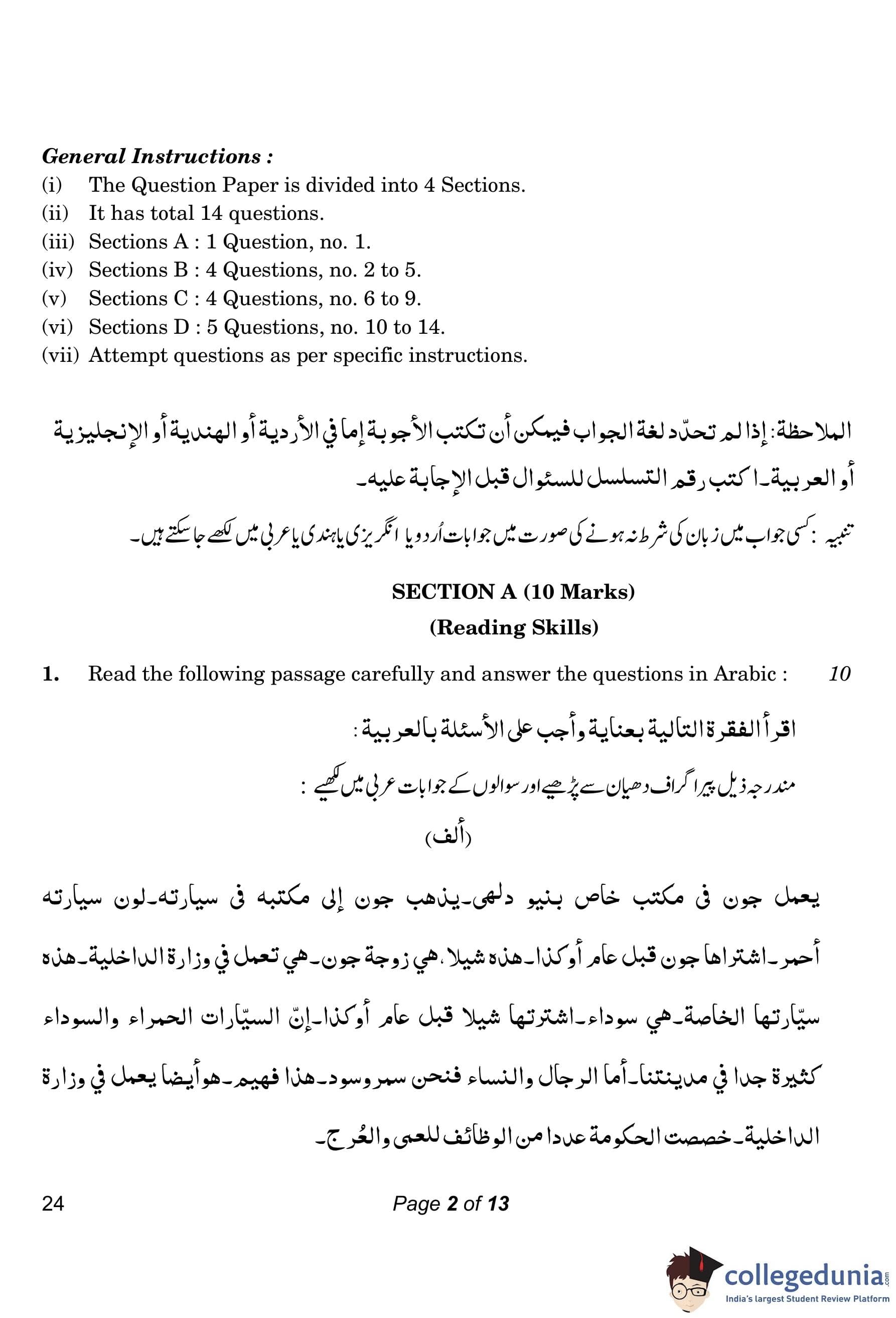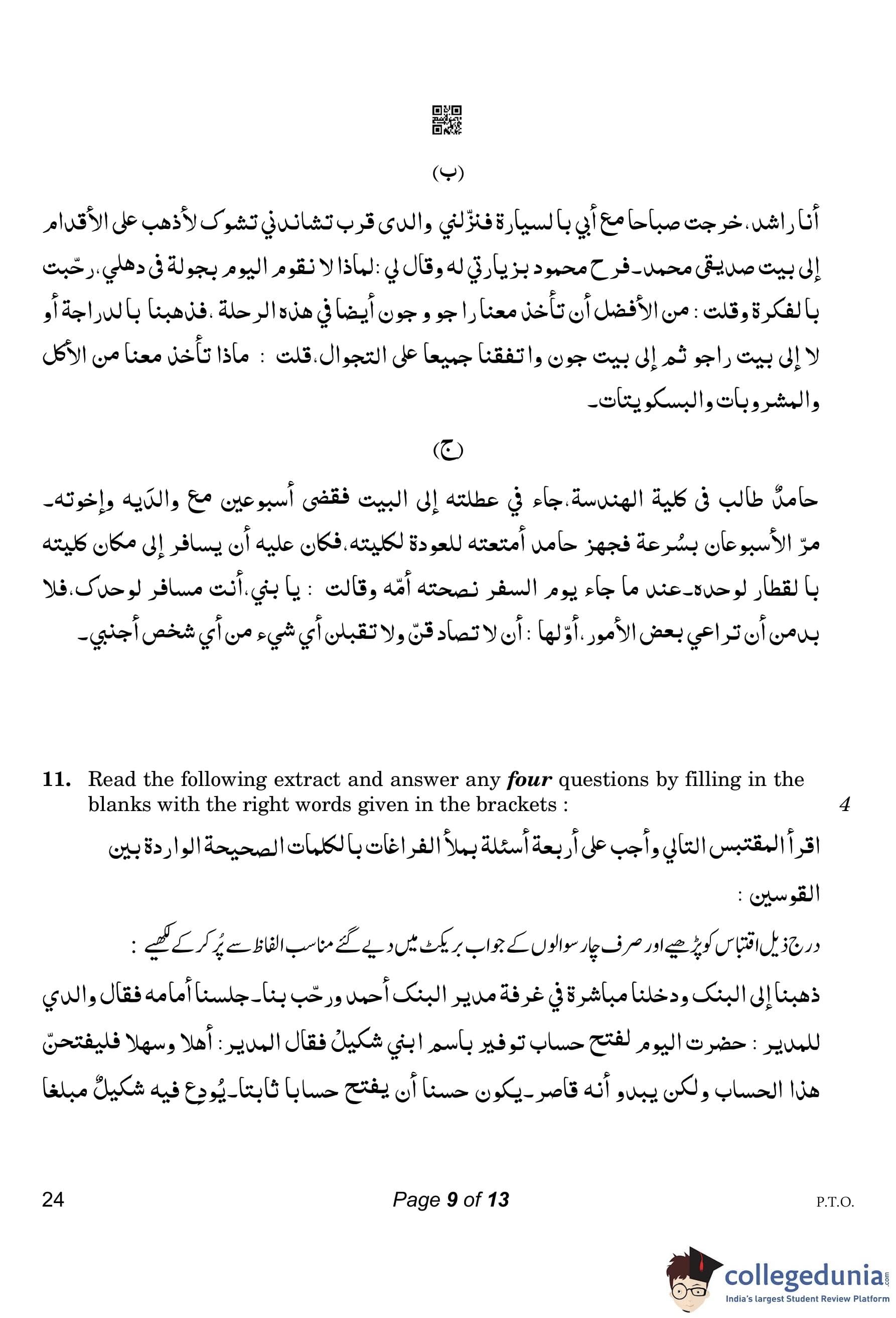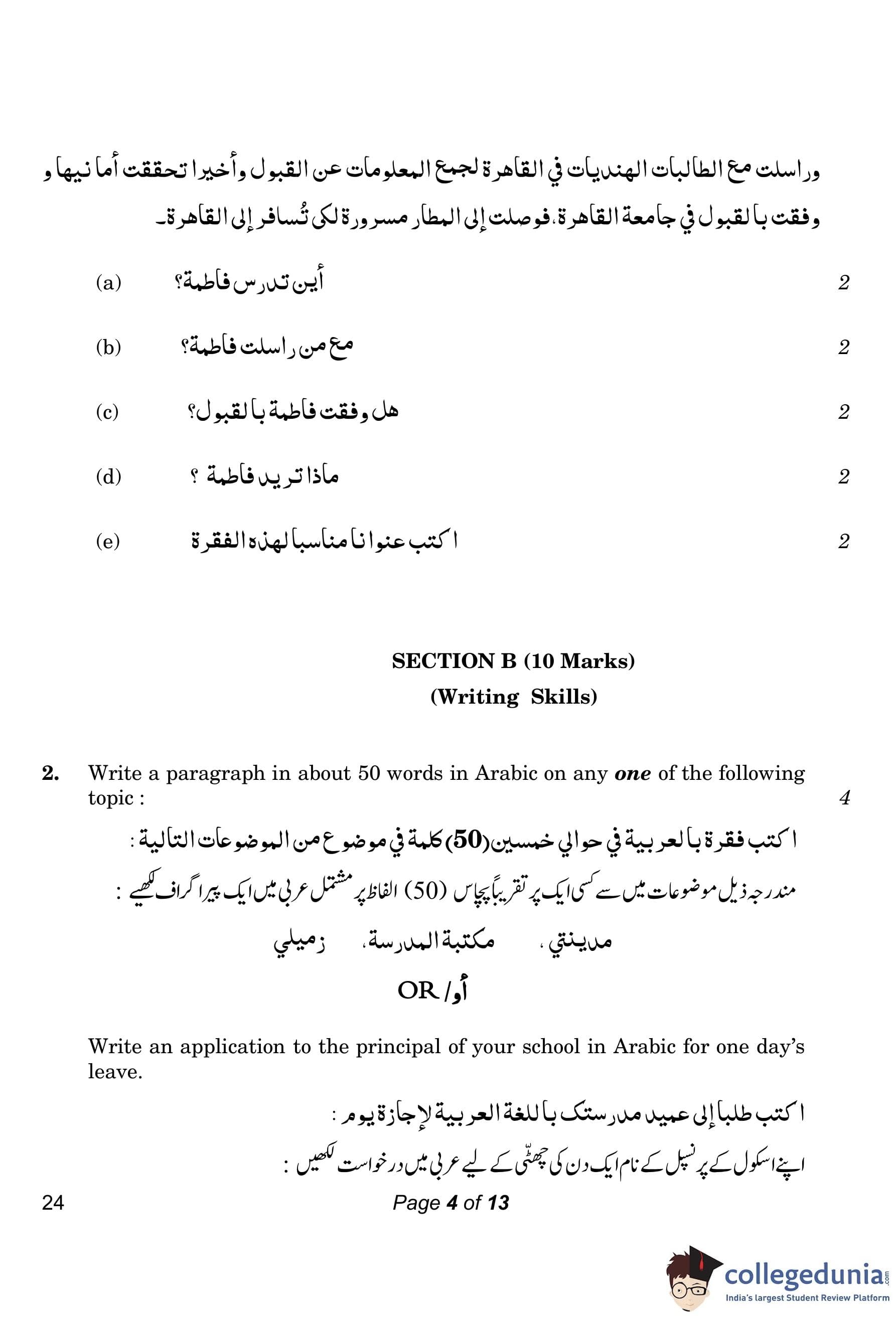 CBSE Class 10 Arabic Compartment Question Paper 2023 with Answer Key