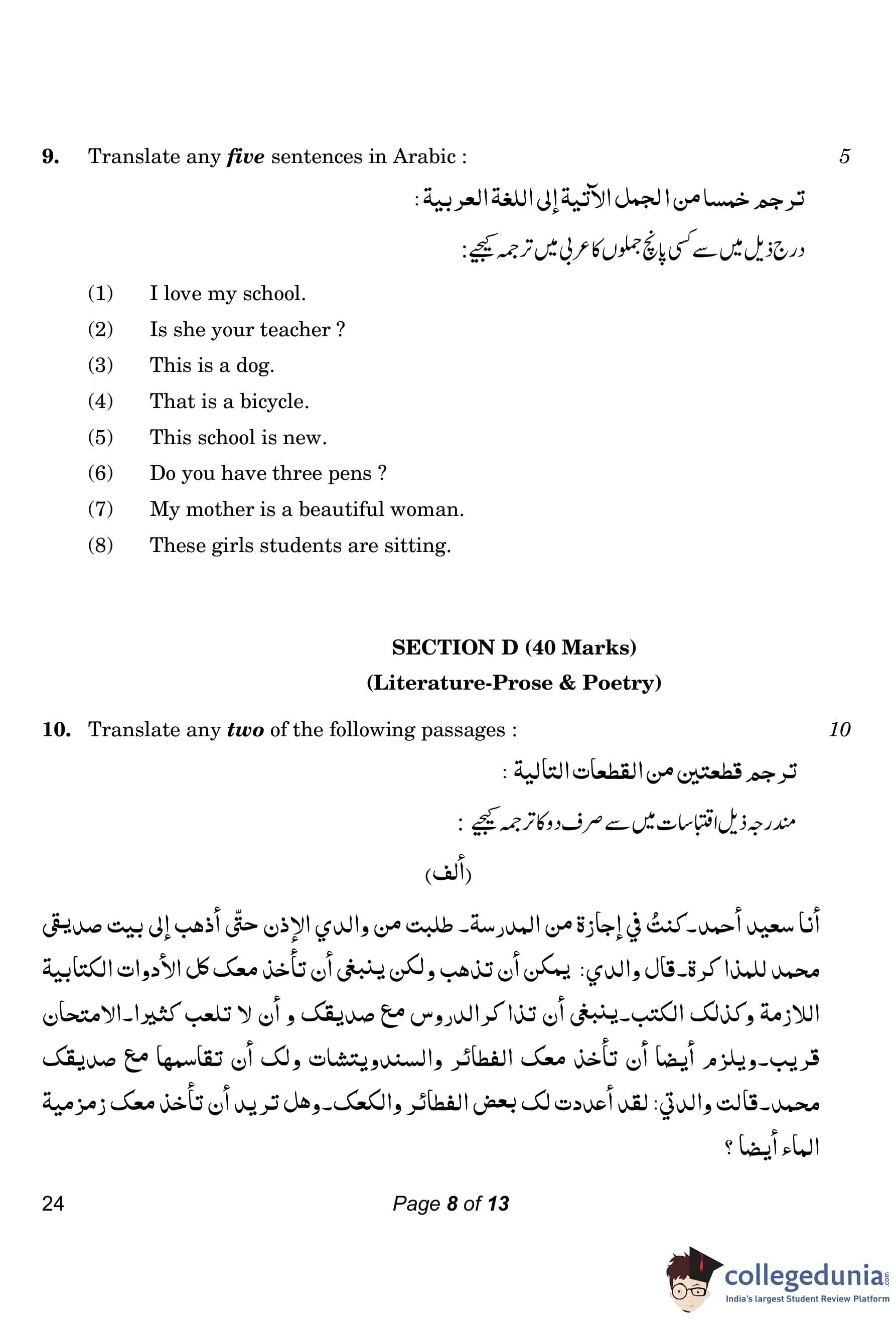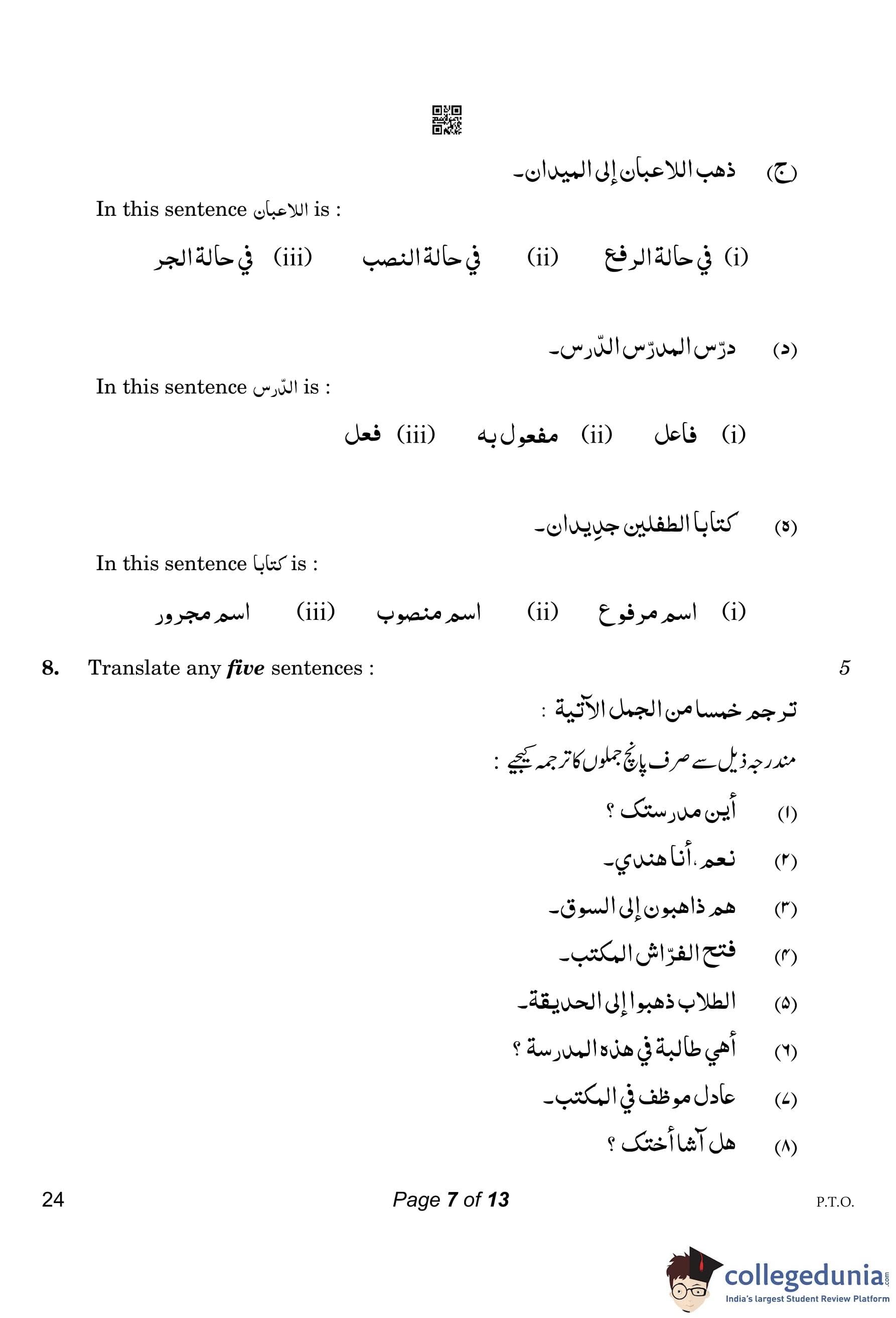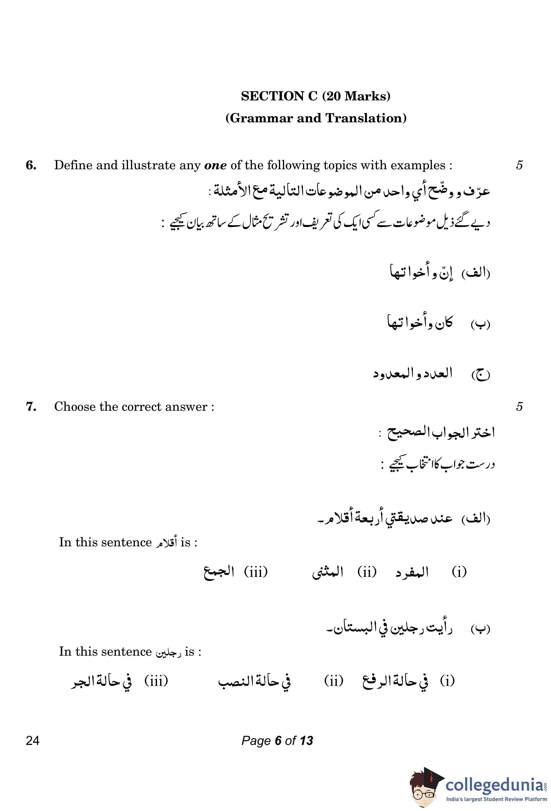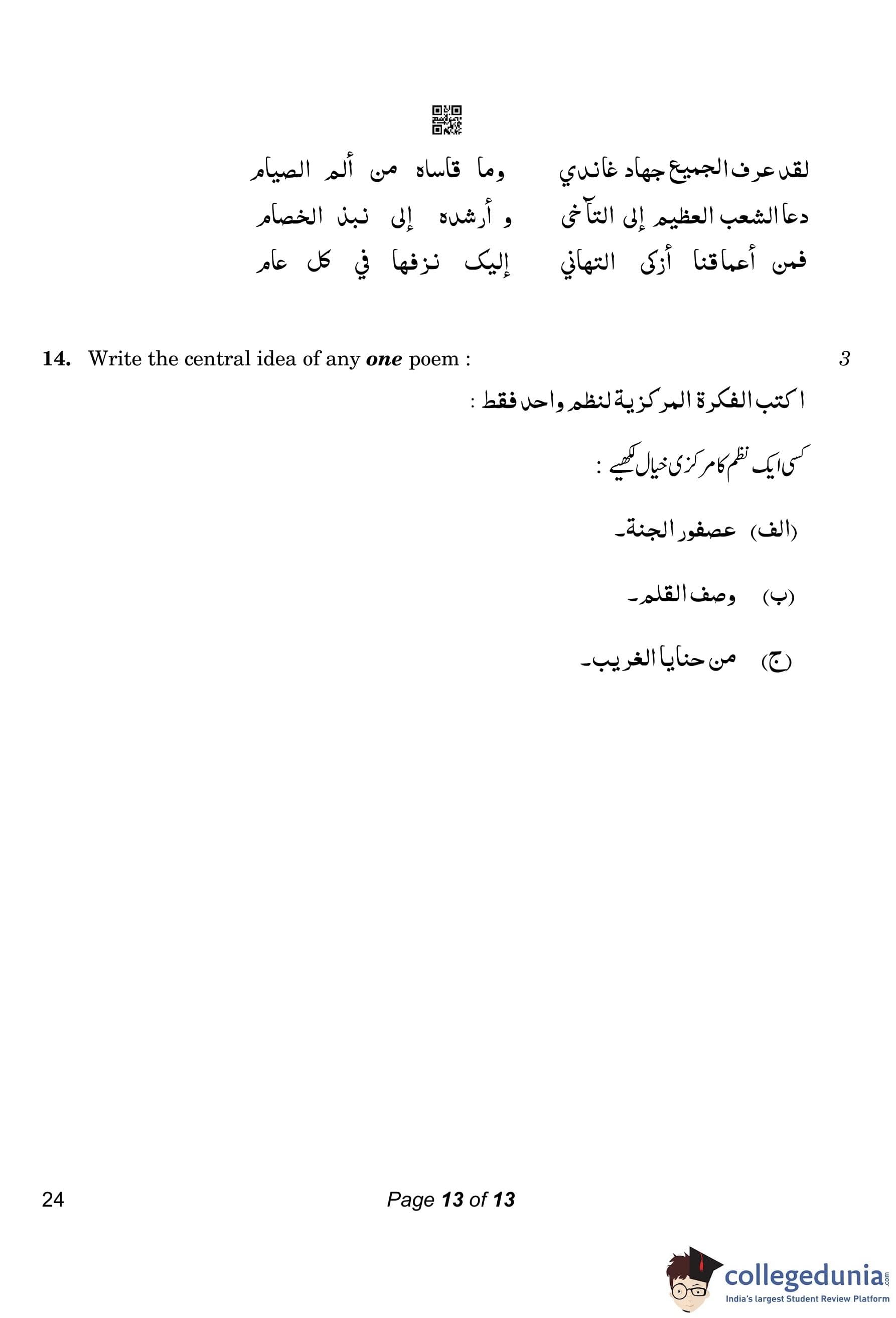 CBSE Class 10 Arabic Compartment Question Paper 2023 with Answer Key