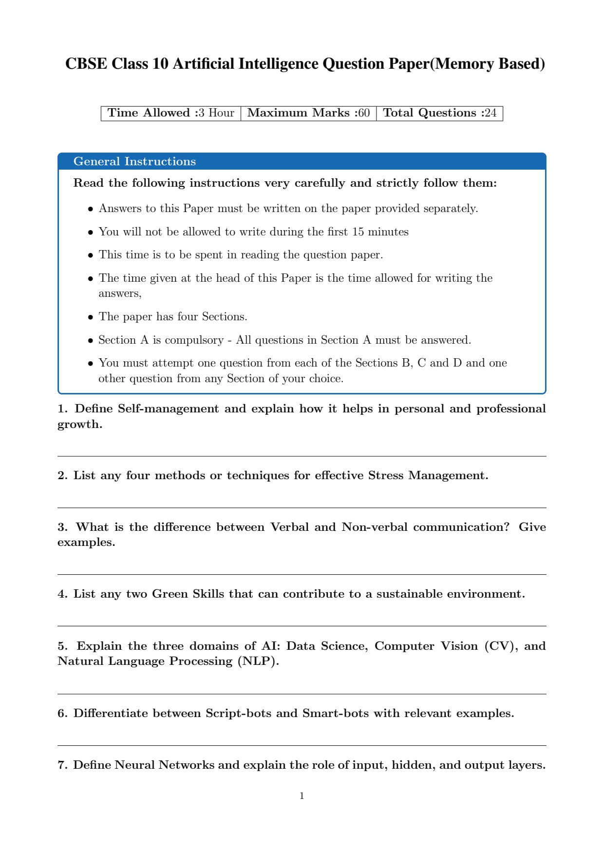 | CBSE Class 10 2026 Artificial Intelligence Question Paper with Solution PDF | Download PDF | Check Solutions |