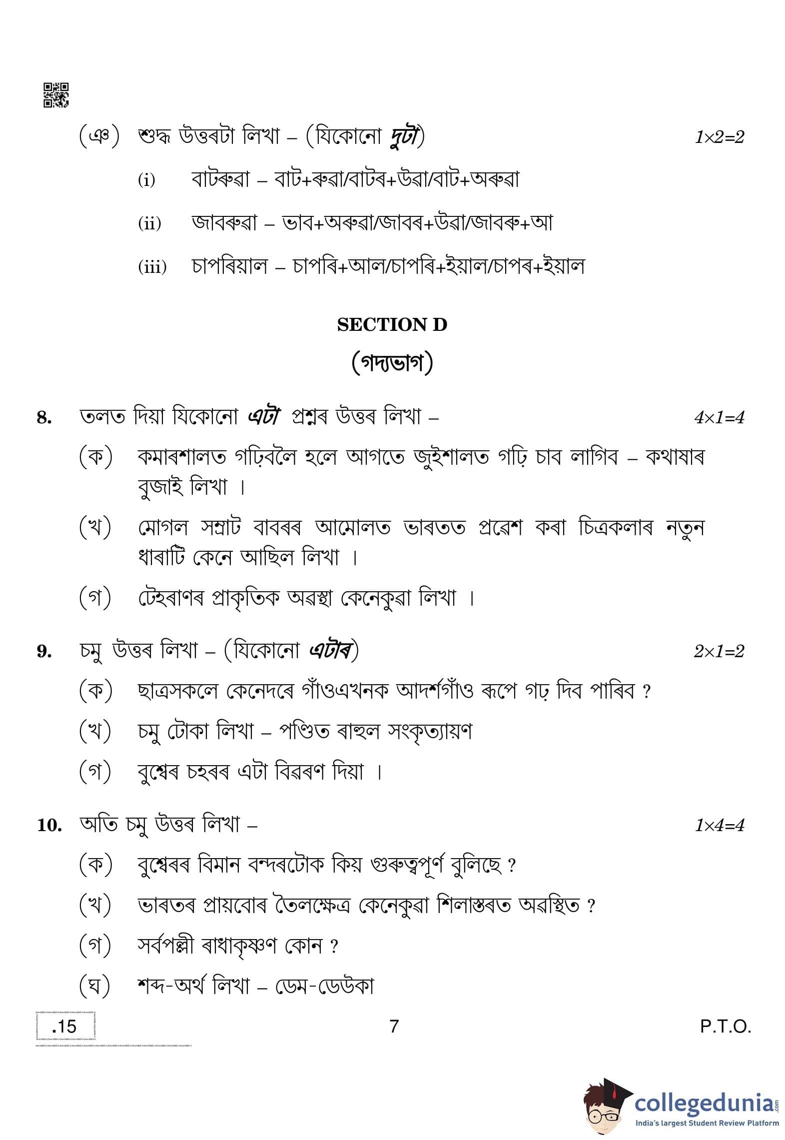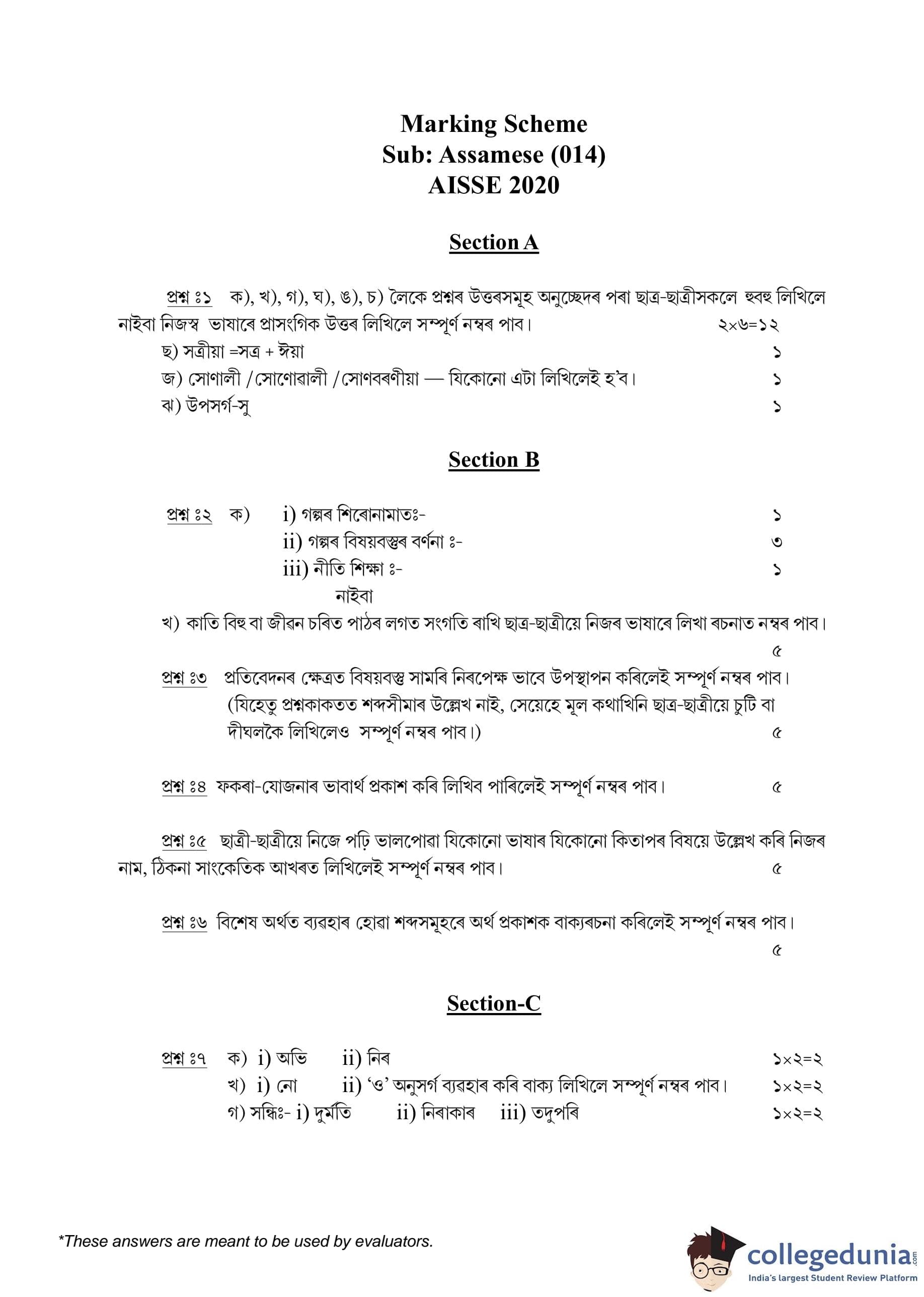 | CBSE Class 10 Assamese Question Paper 2020 PDF | CBSE Class 10 Assamese Answer Key 2020 PDF | Detailed Solutions |