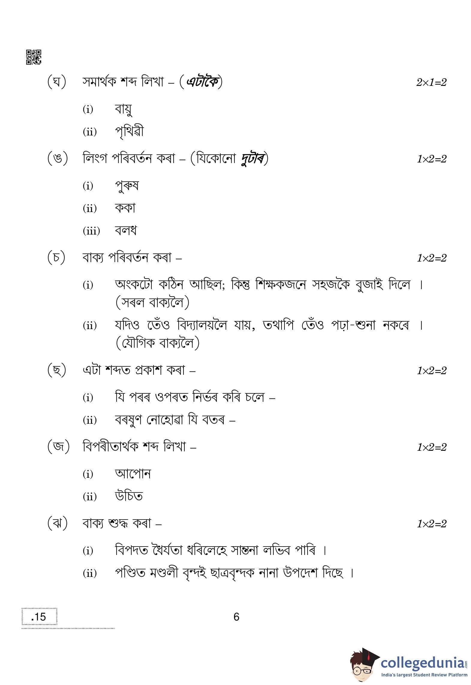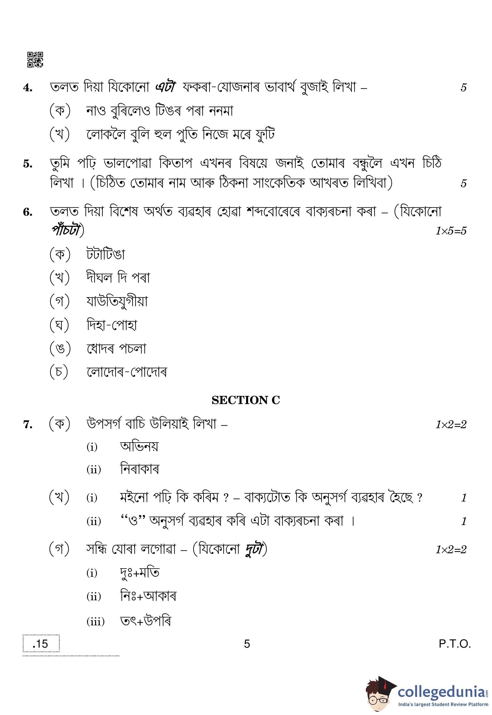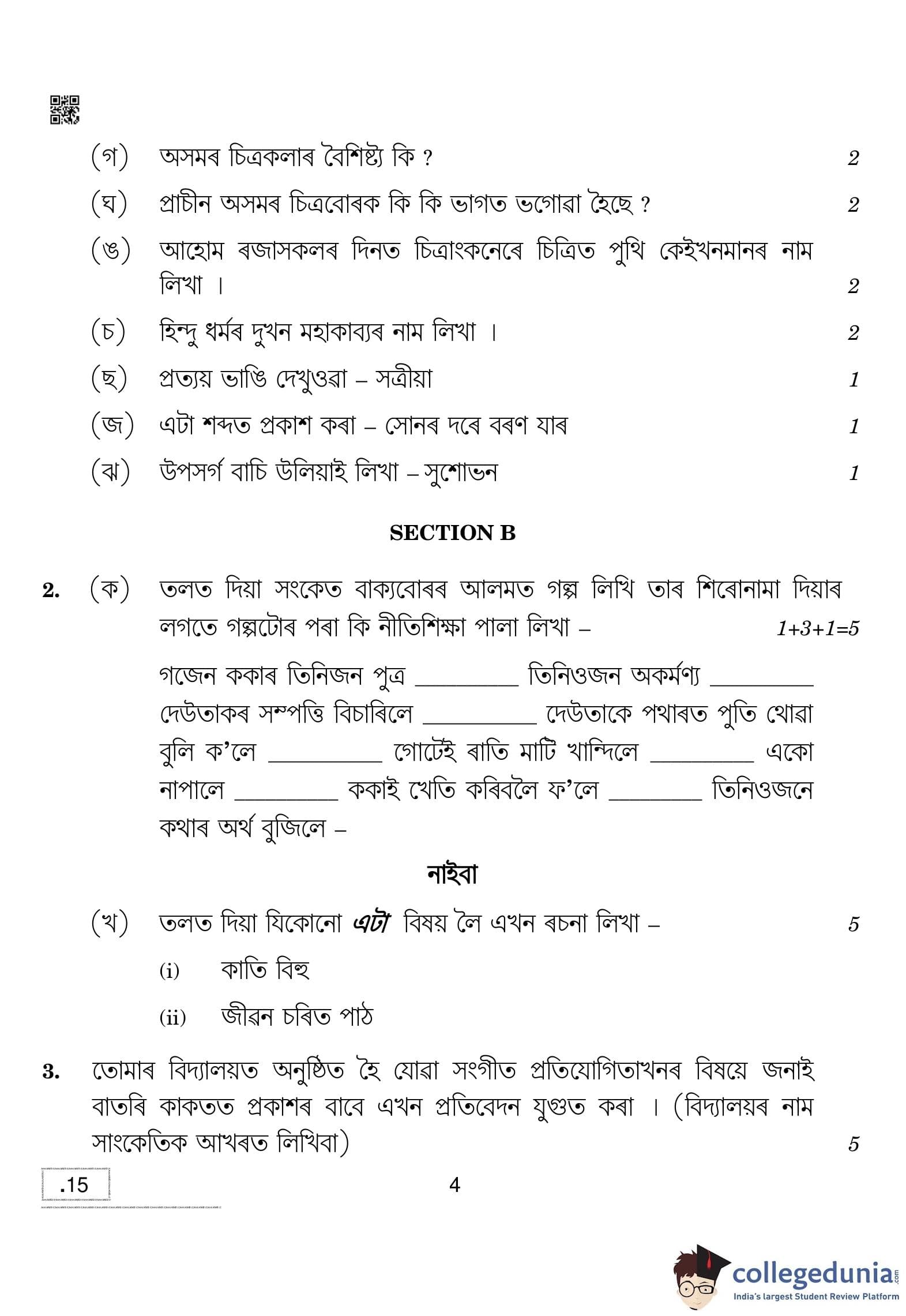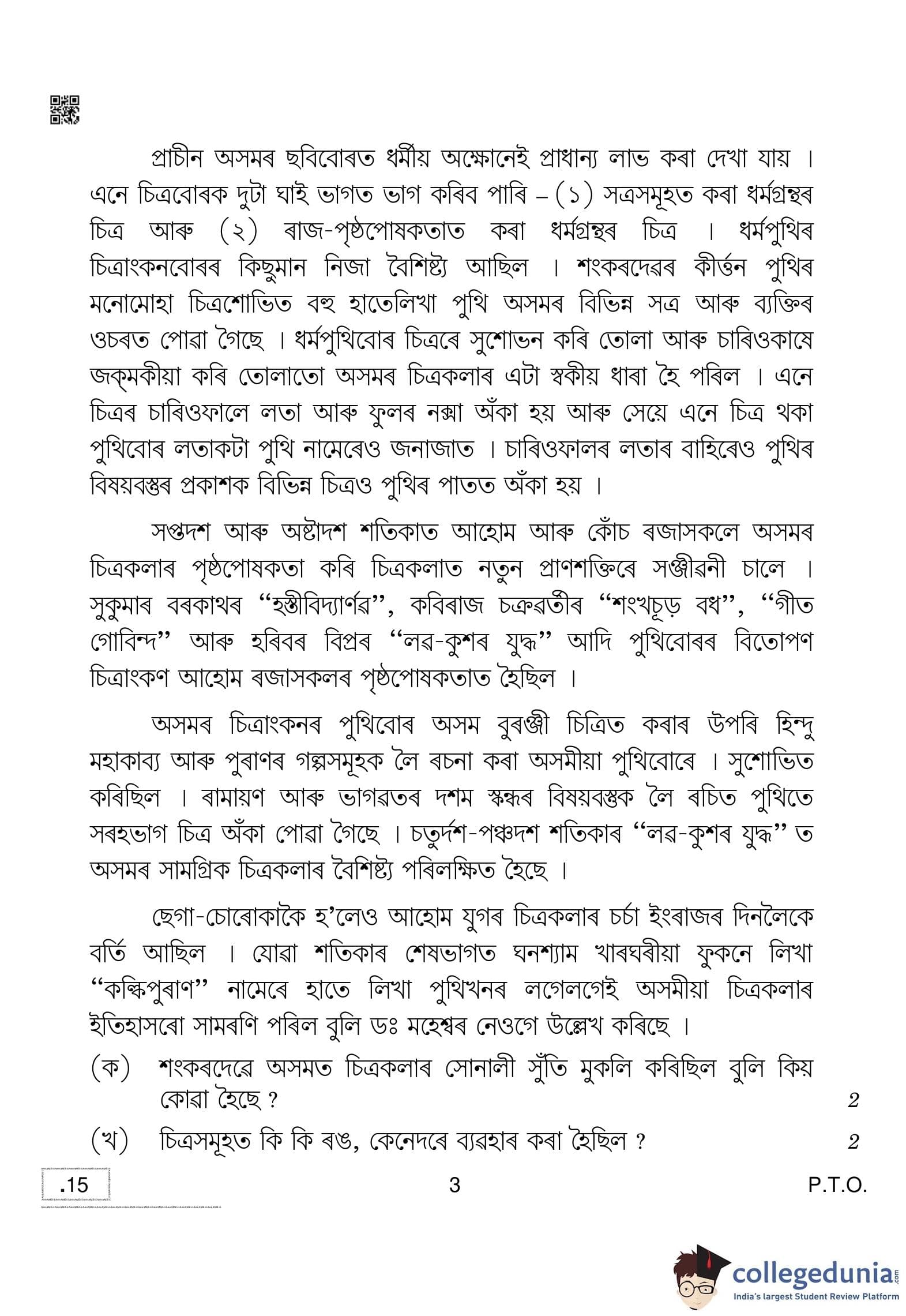 CBSE Class 10 Assamese Question Paper 2020 with Answer Key (February 24)