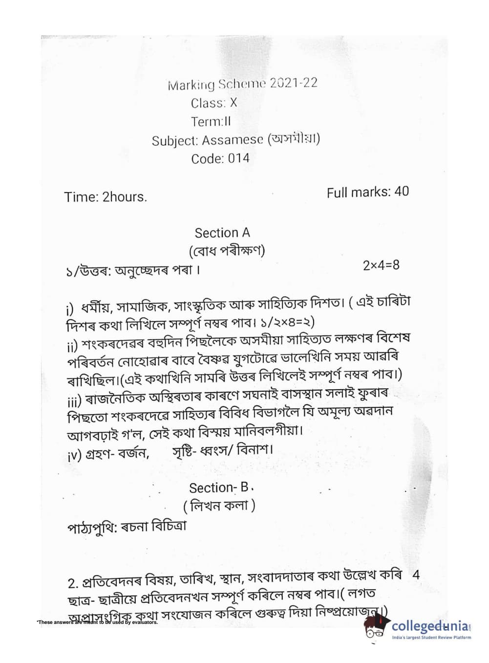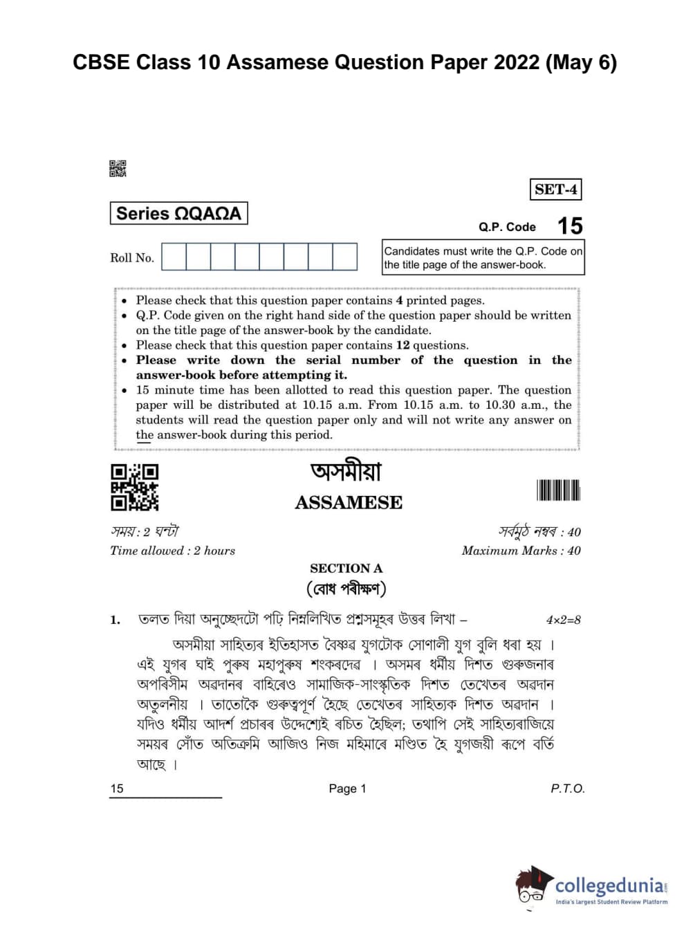 | CBSE Class 10 Assamese Question Paper 2022 PDF | CBSE Class 10 Assamese Answer Key 2022 PDF | Detailed Solutions |