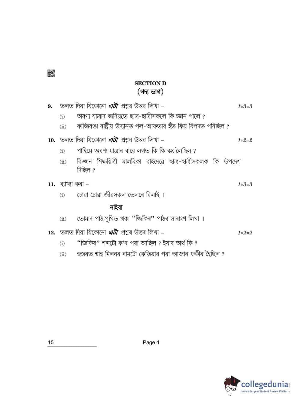 CBSE Class 10 Assamese Question Paper 2022 with Answer Key Set 4 is available for download. The exam was conducted by the Central Board of Secondary Education on May 6, 2022 in the Morning Session 10:30 AM to 12:30 PM. The medium of paper was Assamese. The question paper comprised a total of 12 questions divided among 4 sections.