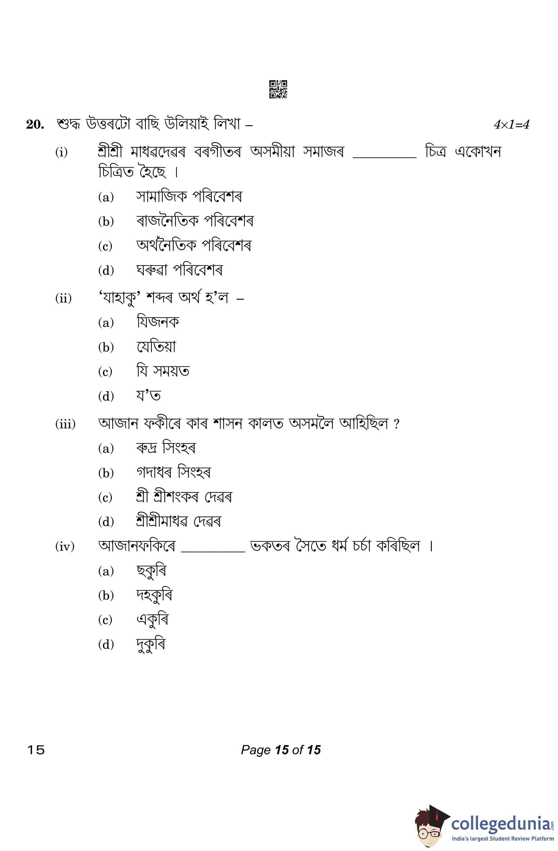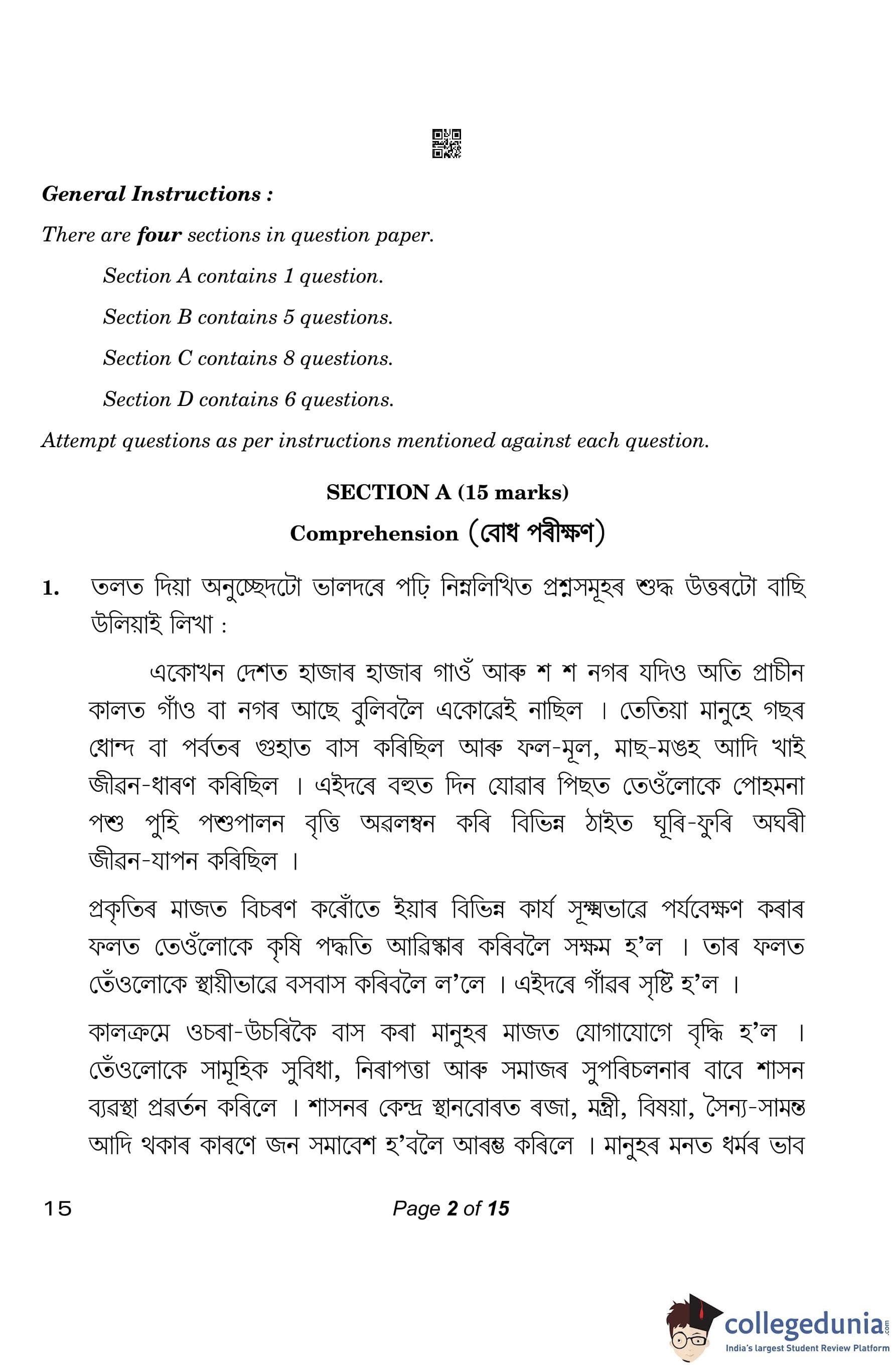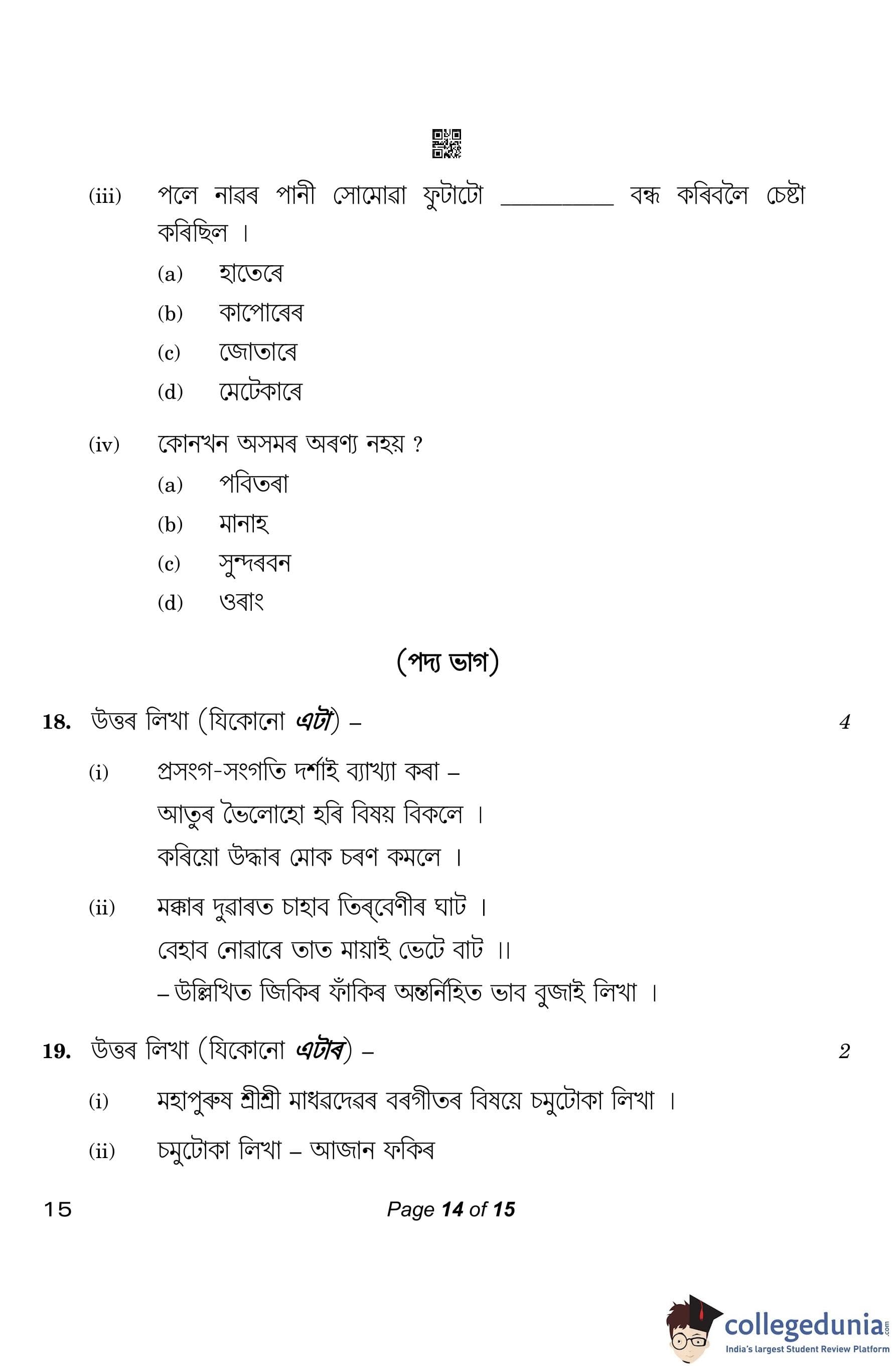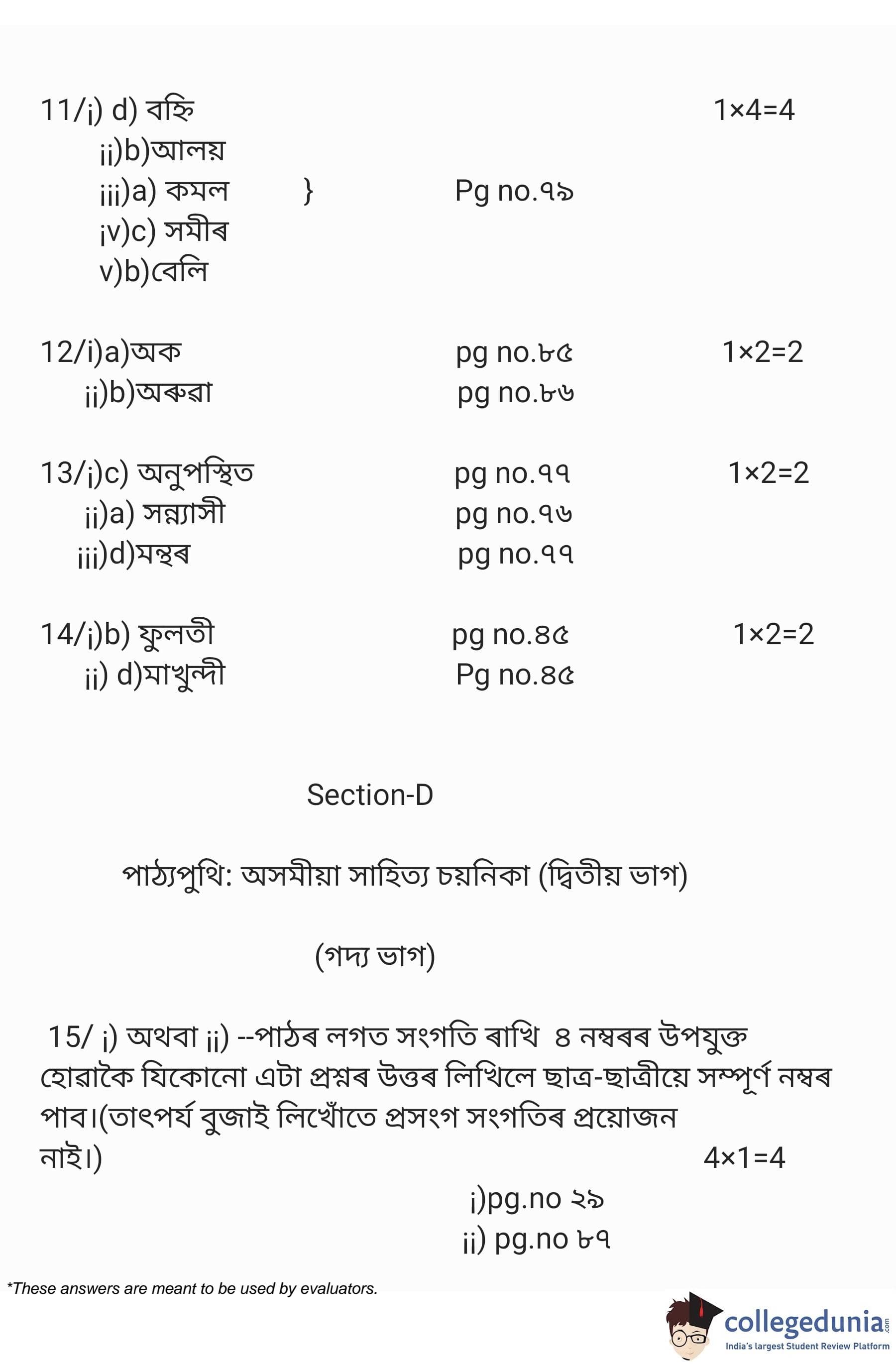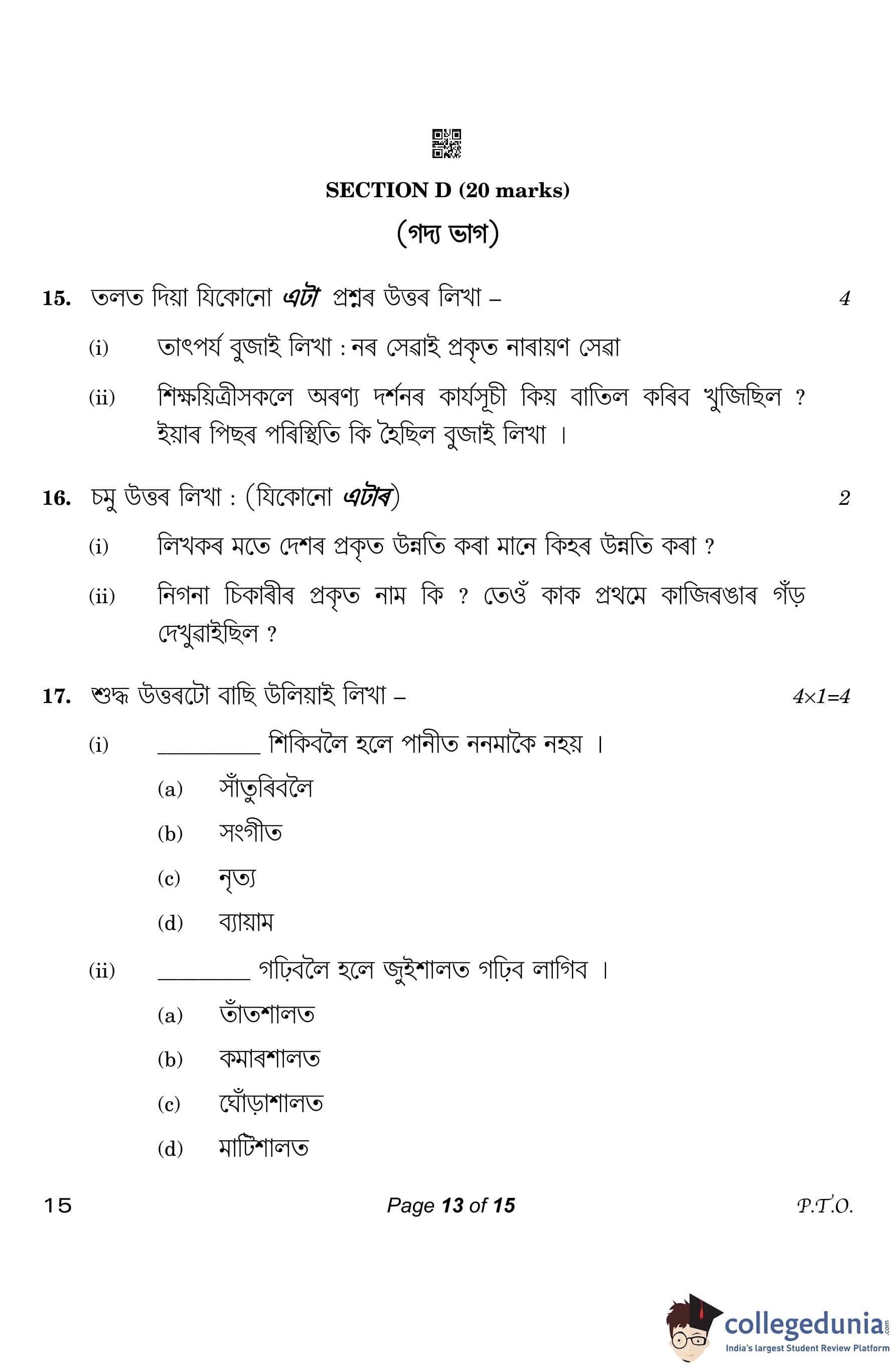 CBSE Class 10 Assamese Question Paper 2023 (Set 4- 15) with Answer Key pdf is available for download here. The exam was conducted by Central Board of Secondary Education on March 1, 2023. The question paper comprised a total of 20 questions divided among 4 sections.